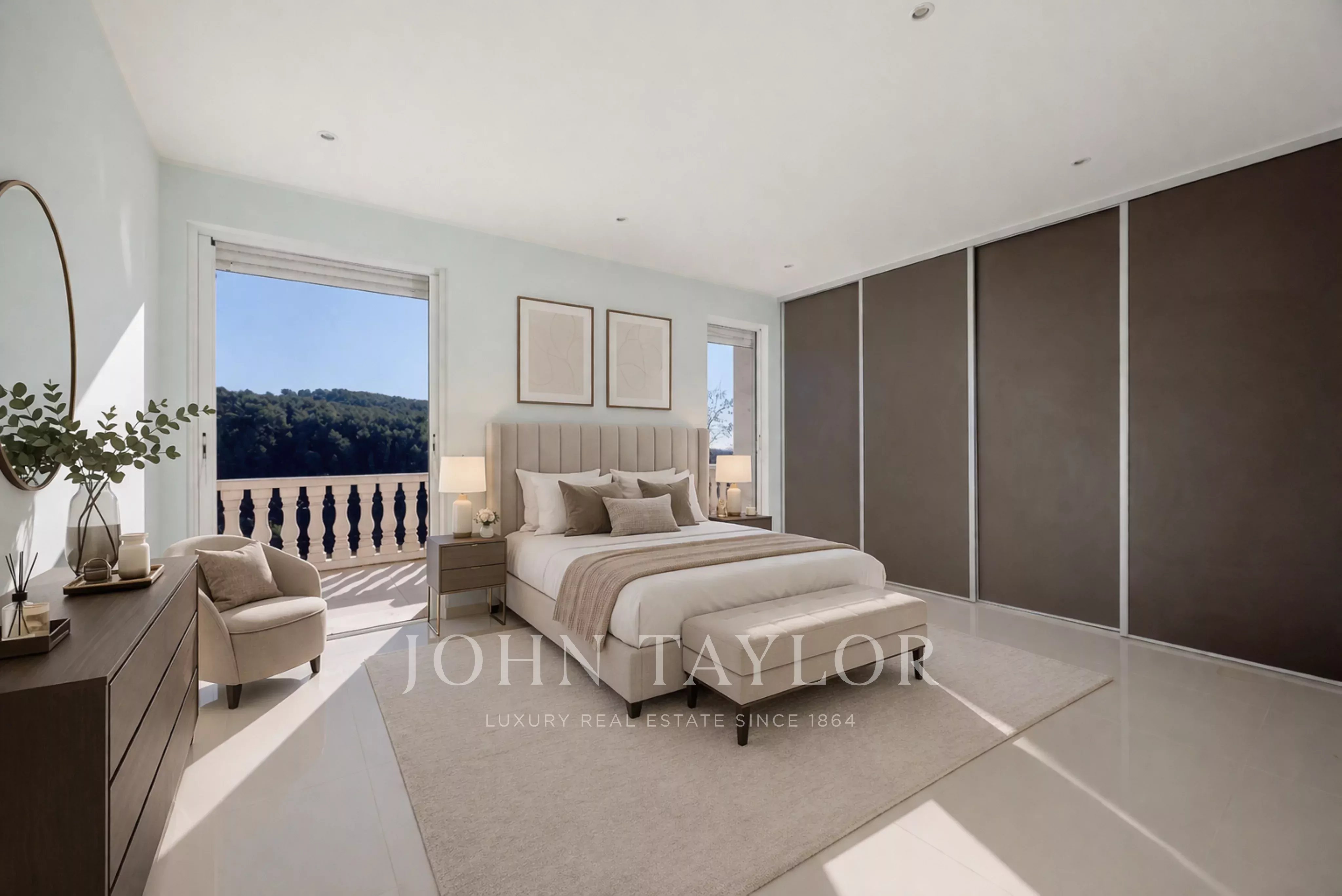 À l’étage, une seconde suite parentale avec terrasse, deux chambres avec salles de bains et accès extérieur complètent l’espace nuit.