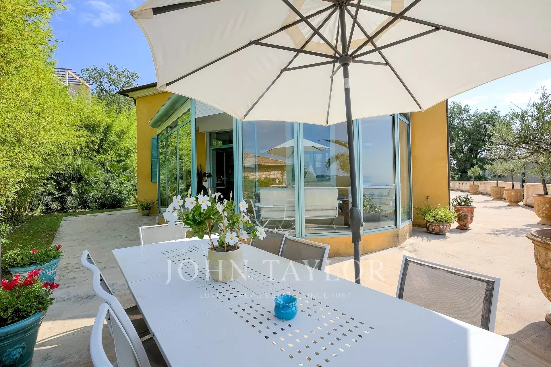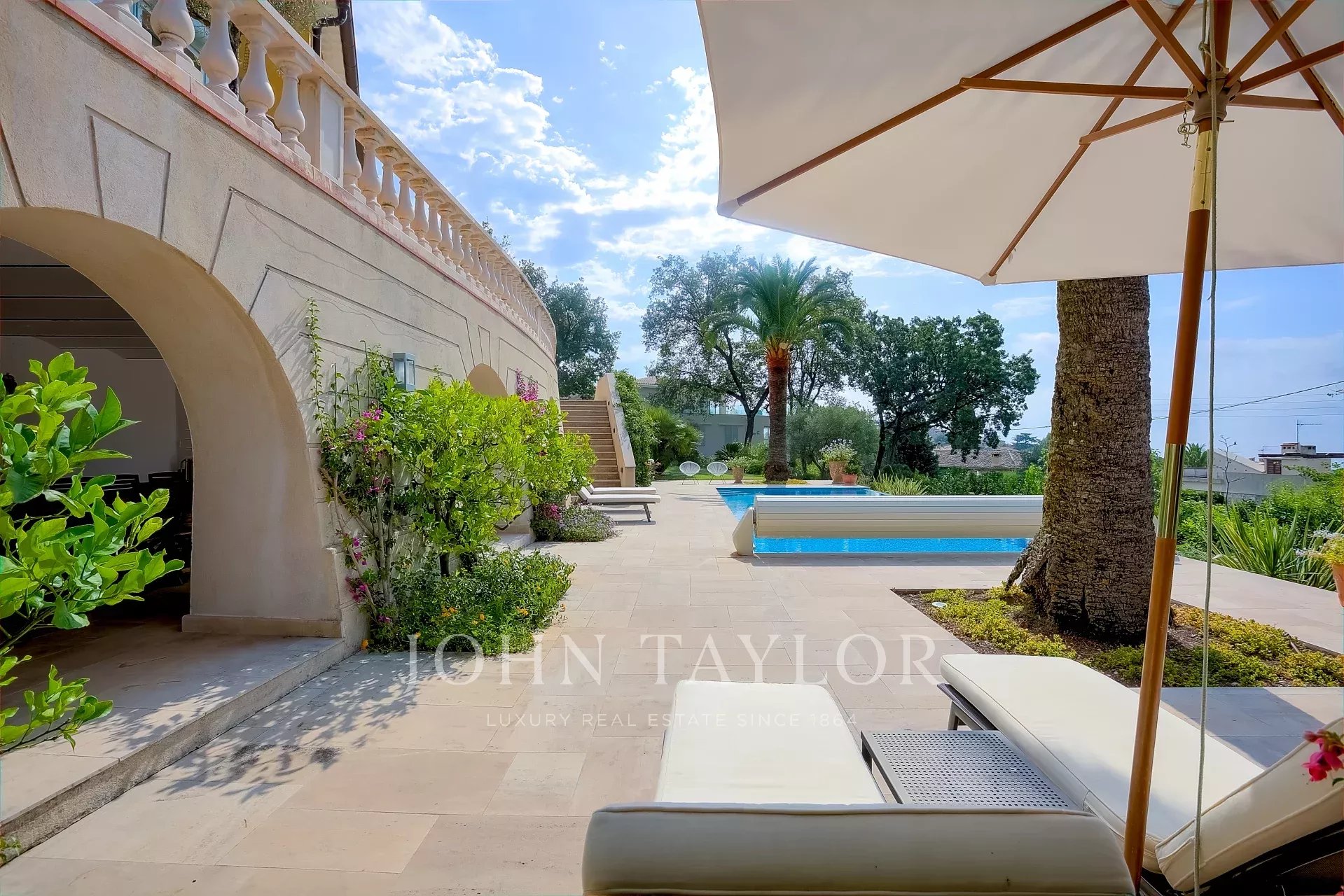 Située à quelques centaines de mètres du centre ville, à pied des commerces Vençois et pourtant au plus grand calme, cette belle propriété d'antan d'environ 320 m² offre de belles prestations et bénéficie d'une vue mer, s'étendant sur un grand parc paysager d'environ 2 850 m² avec terrain de pétanque, piscine à débordement couverte et chauffée.