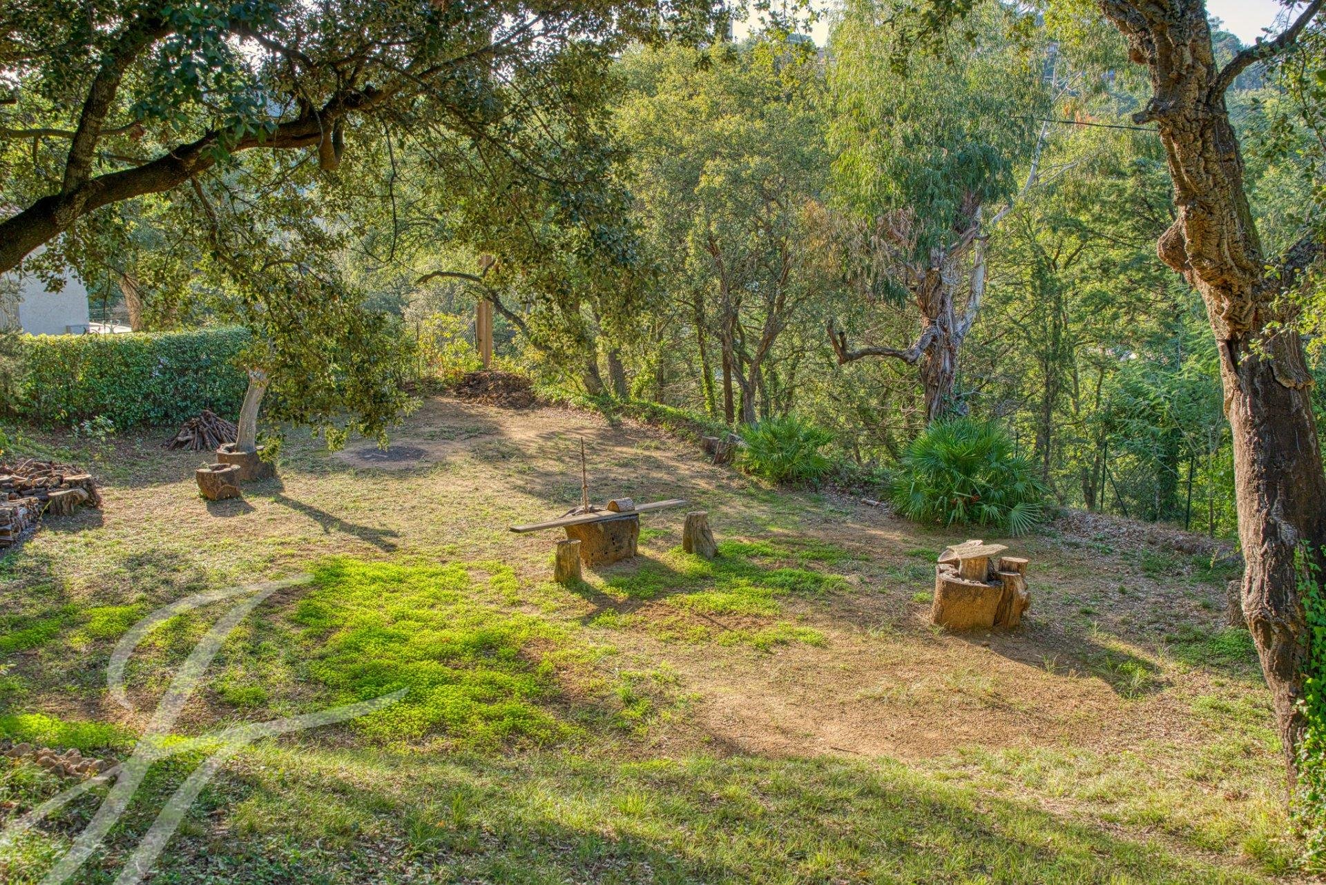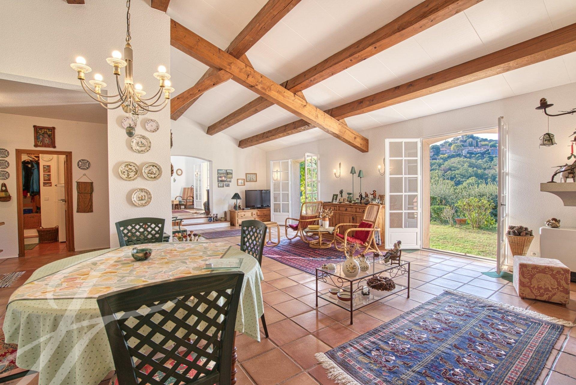 Charmante villa provençale composée d'une entrée, un vaste salon séjour avec cheminée et plafond cathédrale, une cuisine équipée, une arrière cuisine, de nombreux rangements, à l'étage, 2 chambres de plus de 20m² chacune avec salle de bains en suite, terrasse tropézienne, plus un studio indépendant de 60 m² environ, l'ensemble sur grand terrain piscinable de 2.500m² avec abris voitures, COS résiduel de 135m² environ.