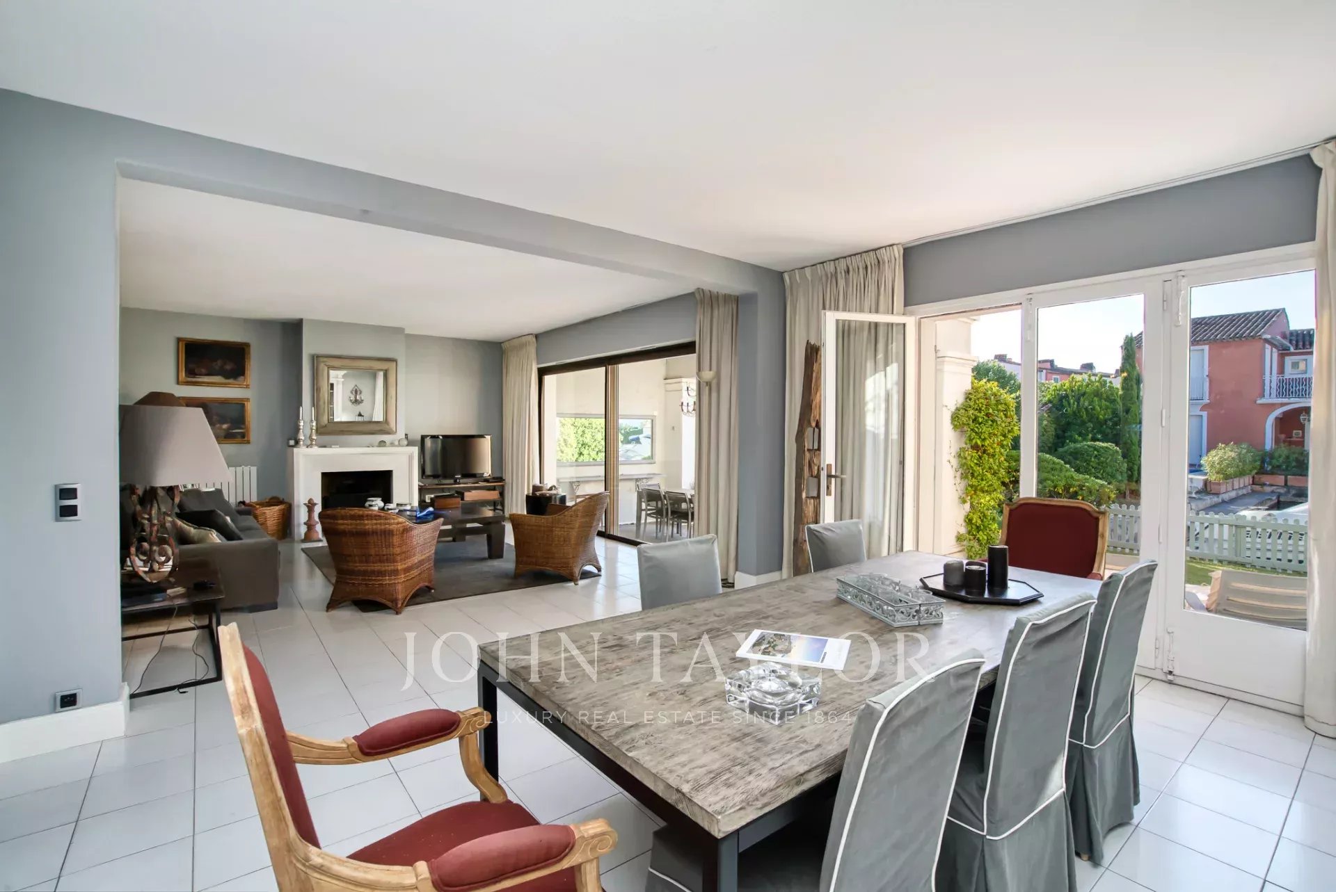 Dans une rue calme et discrète de Port-Grimaud, cette villa offre un cadre paisible avec un accès direct à un emplacement d’amarrage privatif — idéal pour les amateurs de bateau.