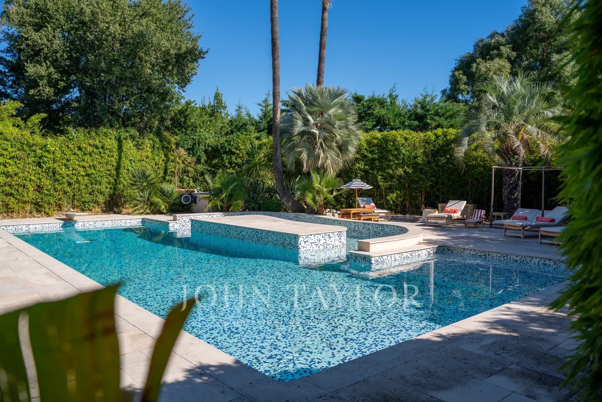 À l’extérieur, la propriété s’étend sur un magnifique terrain paysager d’environ 2 100 m², agrémenté de terrasses ombragées, d’une cuisine d’été et d’une grande piscine invitant à la détente.