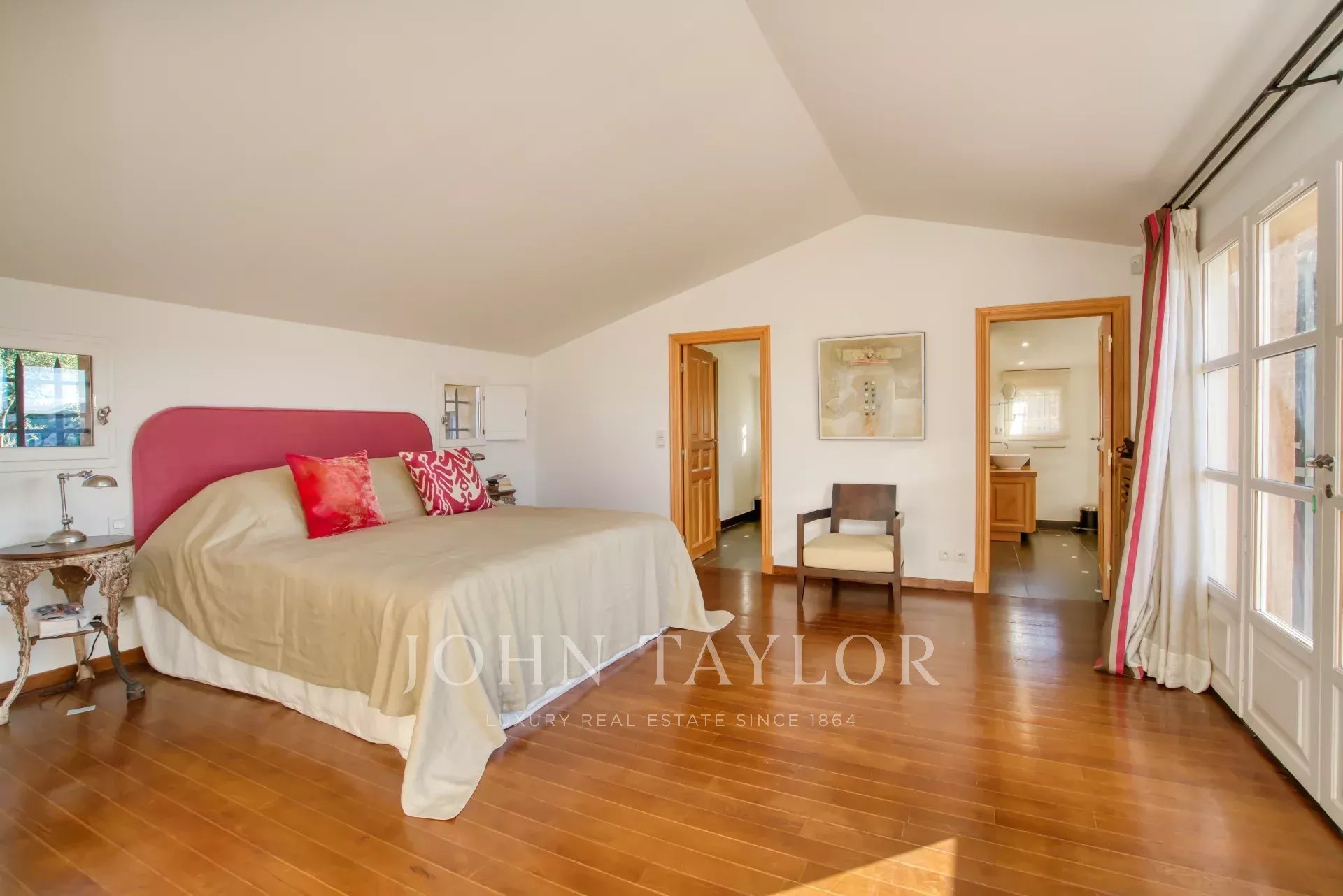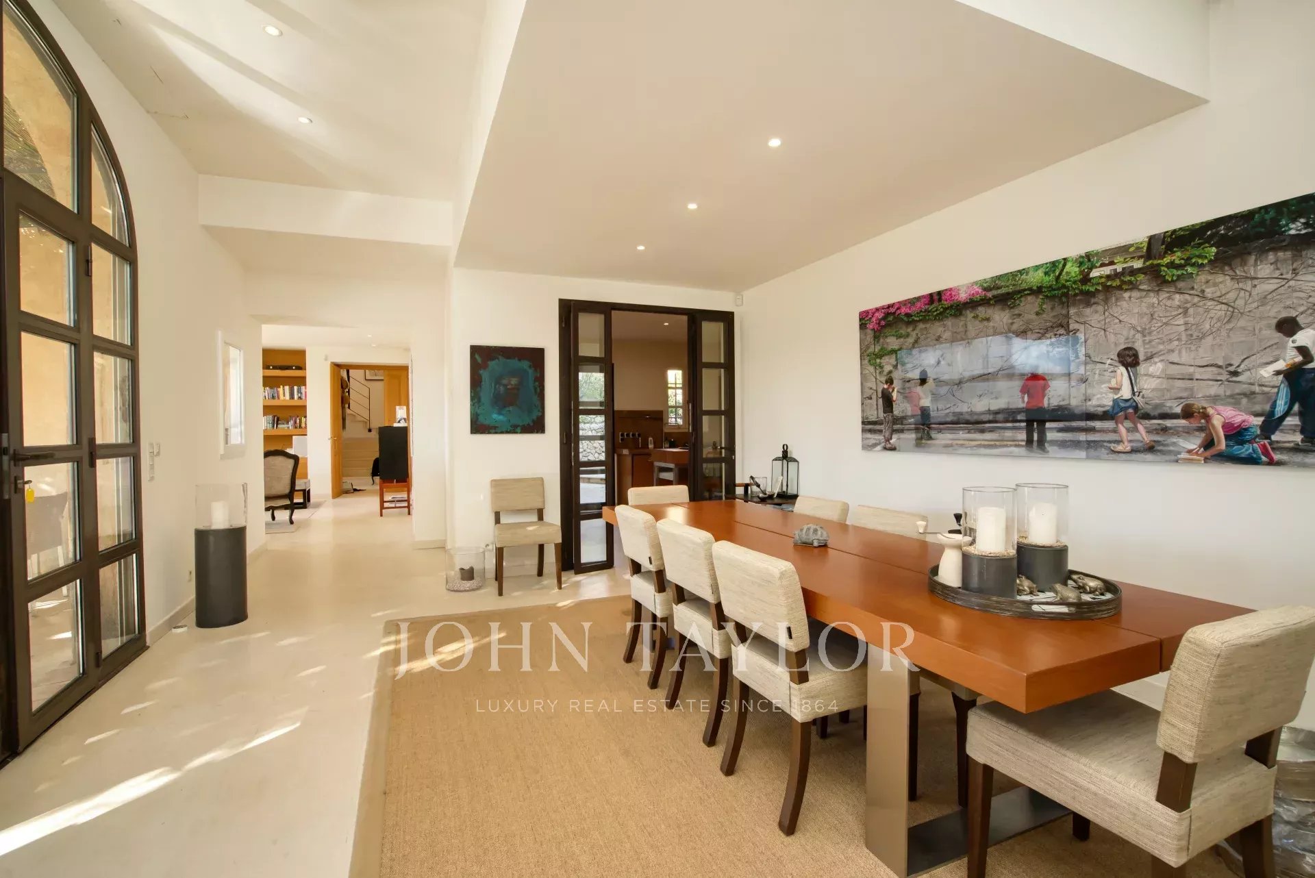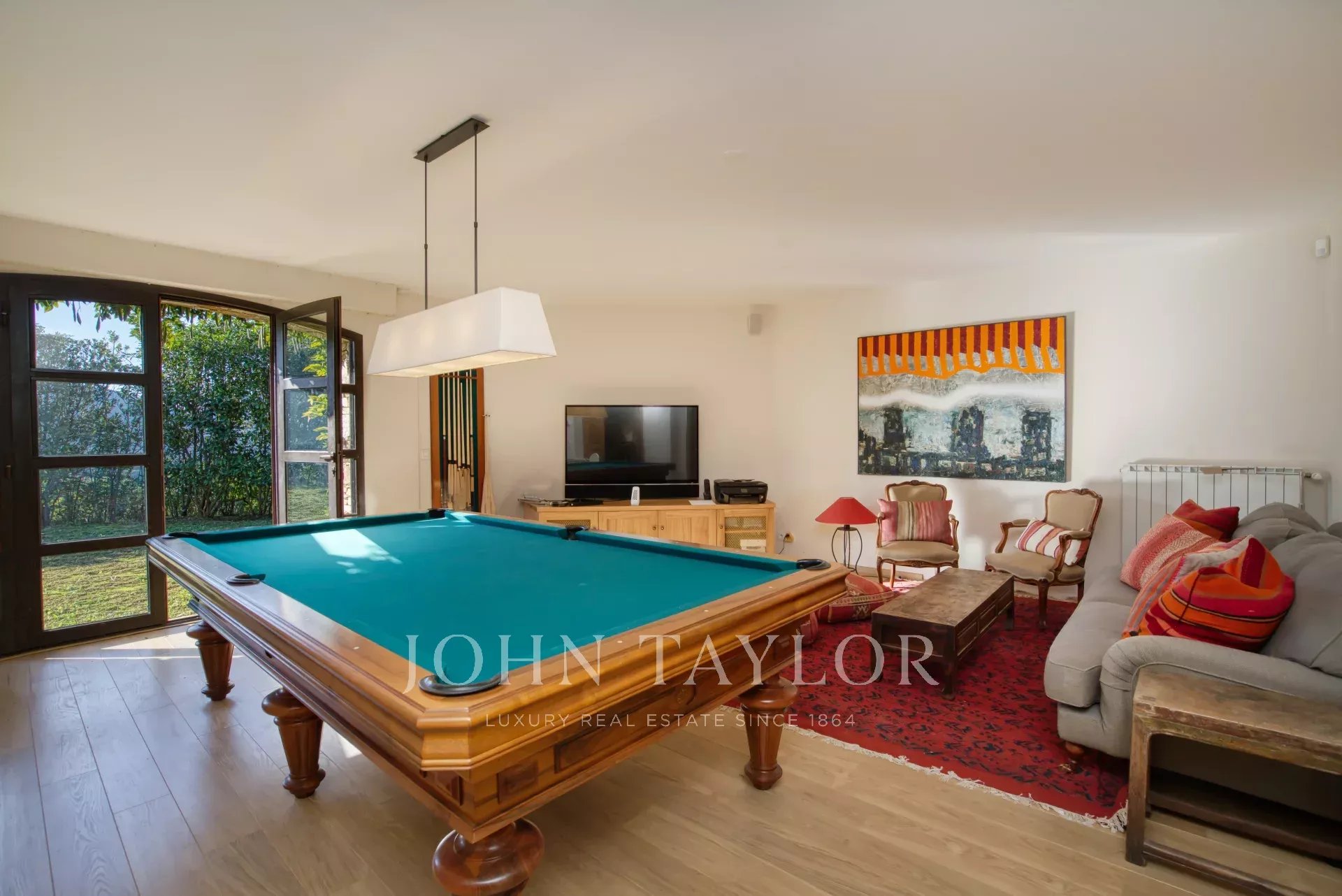 Elle se compose de deux salons avec cheminées, d’une salle à manger lumineuse prolongée par une terrasse couverte ainsi qu’une vaste terrasse ensoleillée. La cuisine moderne et entièrement équipée s’accompagne d’une arrière-cuisine fonctionnelle.