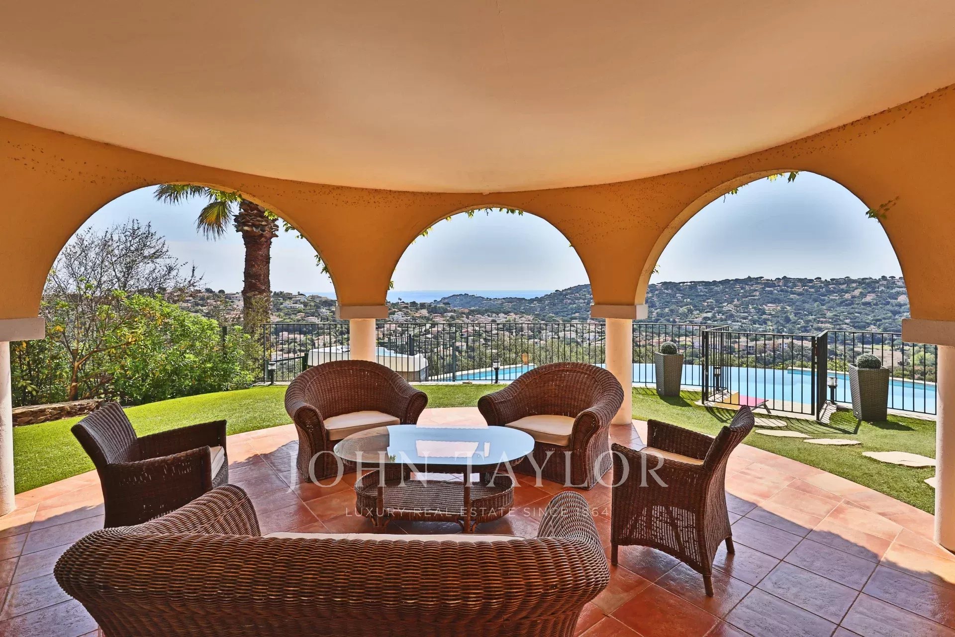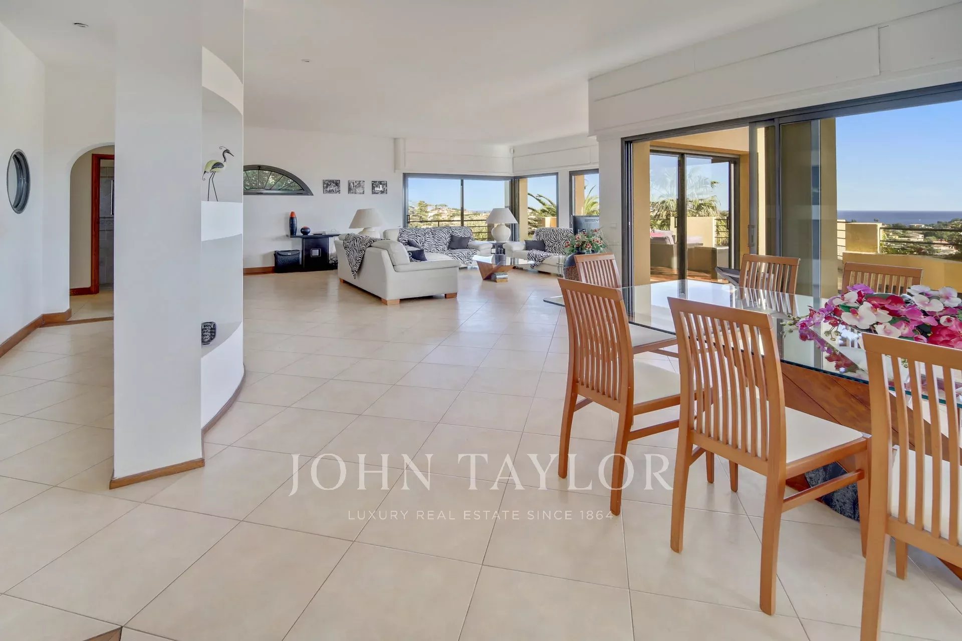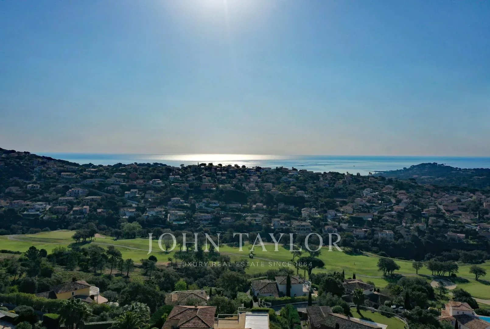 Située en position dominante sur le golf de Sainte-Maxime, avec très belle vue sur la mer, la villa d'environ 250m² offre un séjour et salle à manger ouvrant sur une grande terrasse exposée sud, une cuisine équipée récente et 4 chambres toutes pourvues de salles de bains ou salles de douches, un appartement indépendant avec 2 chambres et 1 salle de bains.