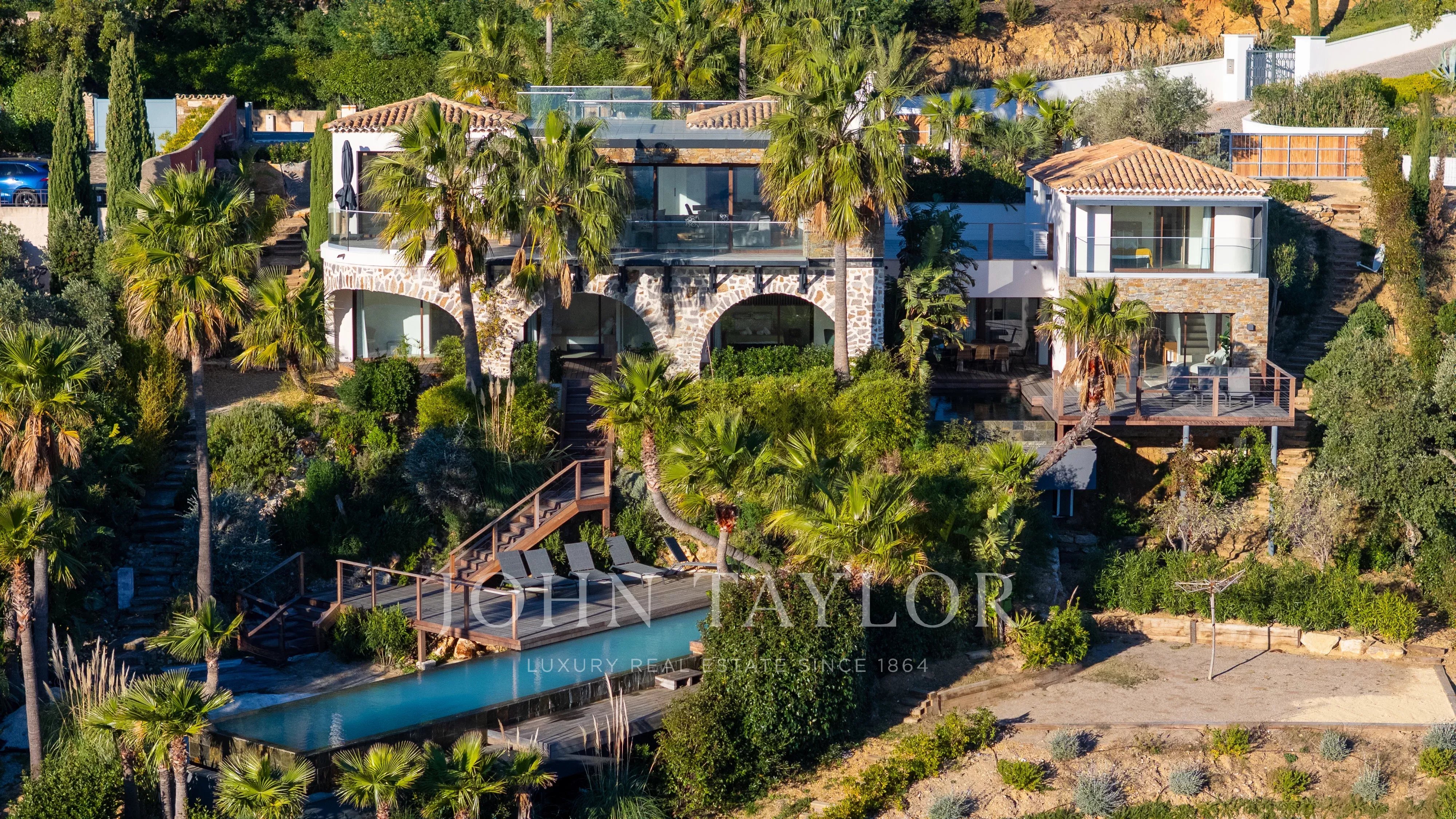 Au cœur d’un domaine privé parmi les plus confidentiels, cette propriété d’exception entièrement rénovée se distingue par sa position dominante et sa vue mer panoramique spectaculaire, embrassant l’horizon méditerranéen.