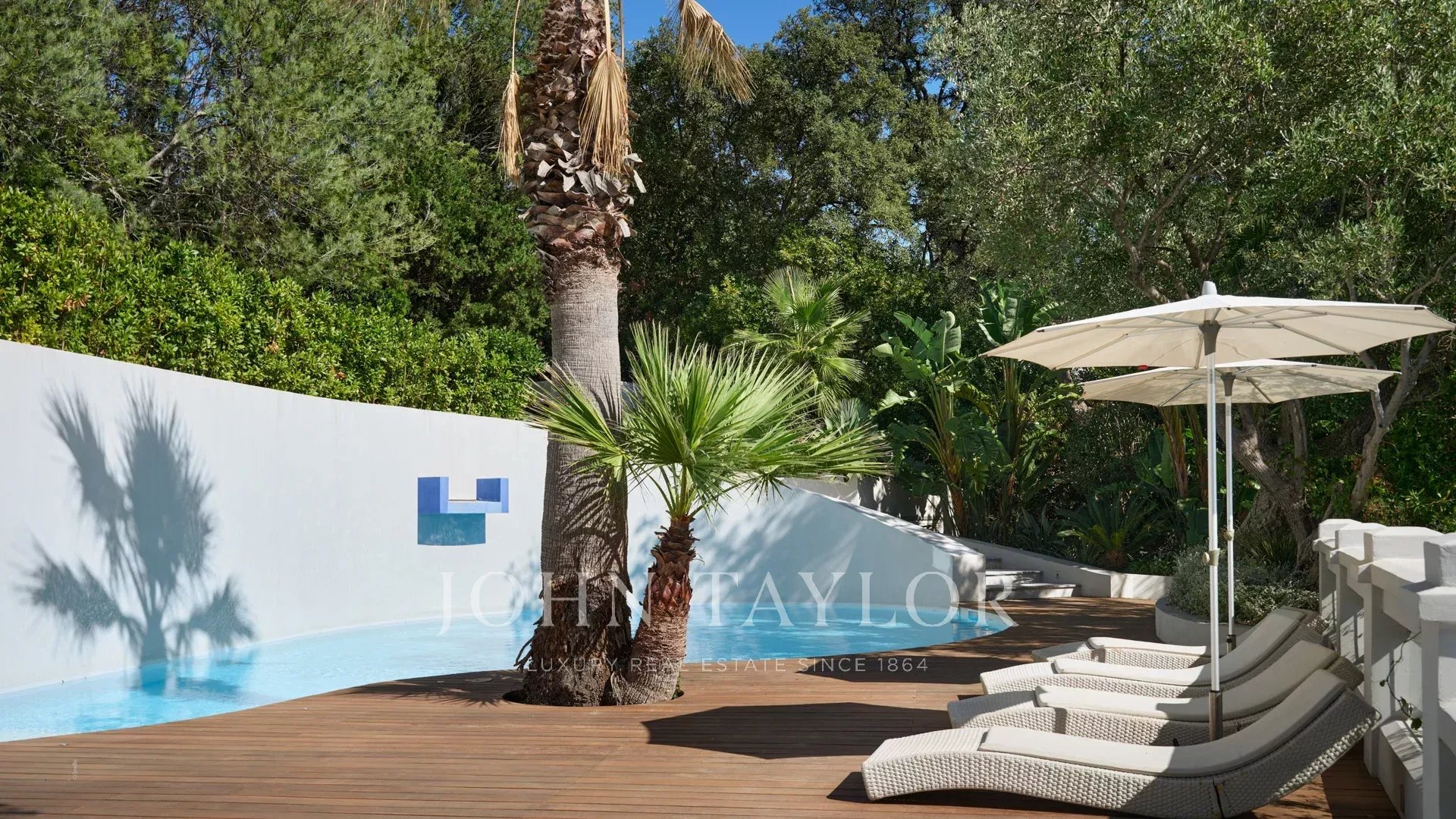 La maison d'invités, d'environ 100 m², bénéficie d'une luminosité exceptionnelle. Elle dispose d'un séjour s'ouvrant sur une grande terrasse et un patio, d'une cuisine et de deux chambres.