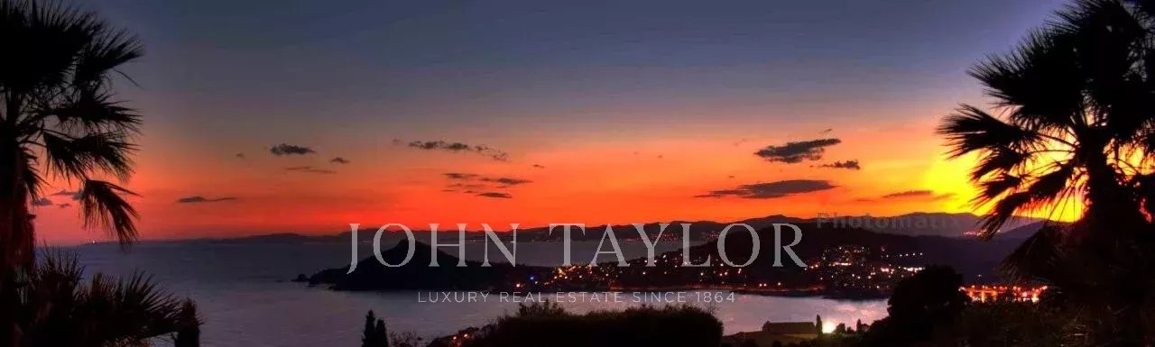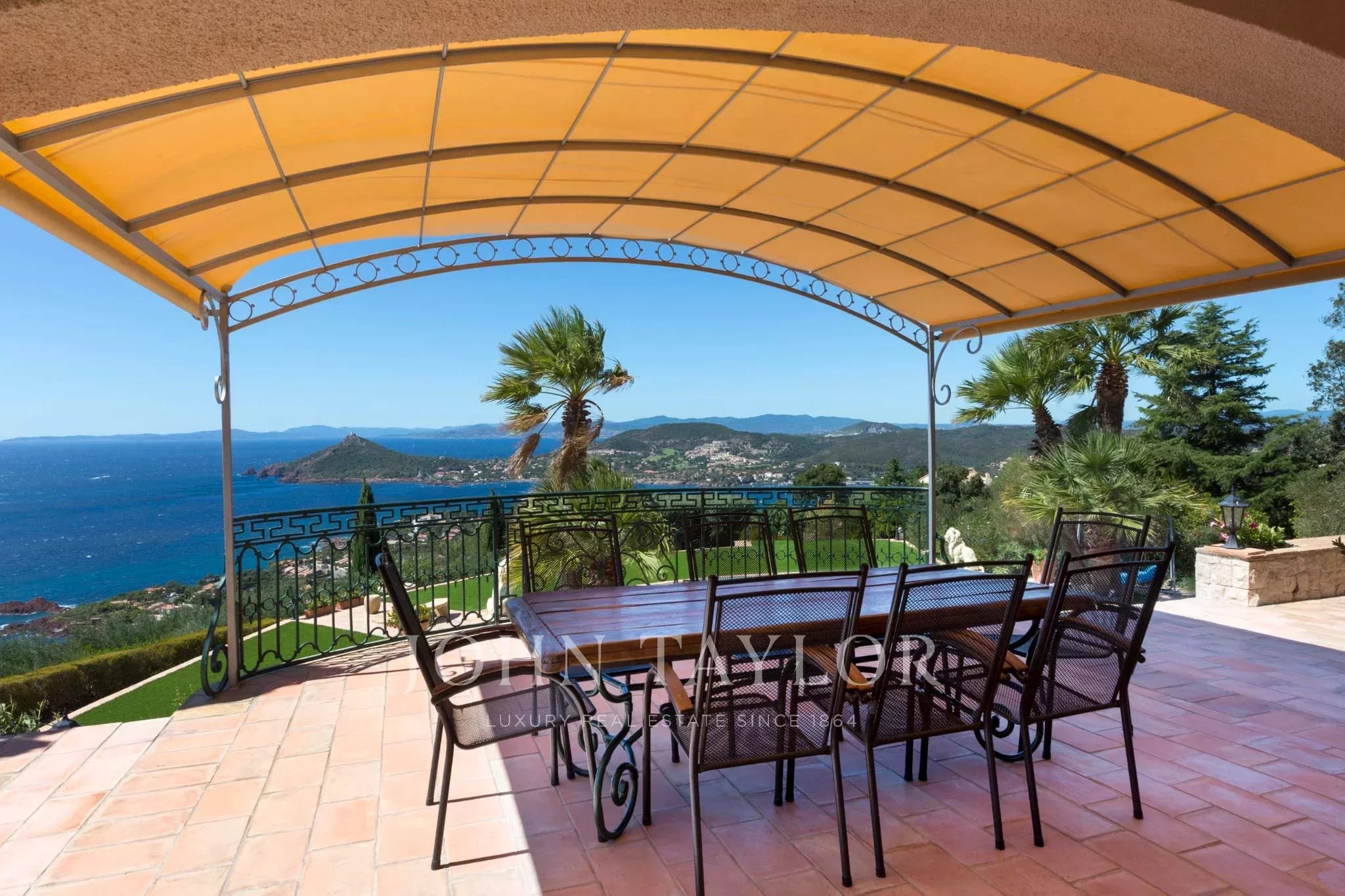 Dominant les hauteurs d’Agay au sein d’un domaine privé, cette élégante bastide de caractère bénéficie d’une exposition plein Sud et d’une luminosité remarquable tout au long de la journée. La propriété jouit d’une vue mer spectaculaire, littéralement à couper le souffle, s’étendant sur la rade d’Agay, le massif de l’Esterel et jusqu’au golfe de Saint-Tropez, incontestablement l’un des panoramas les plus saisissants de toute la Côte d’Azur.
