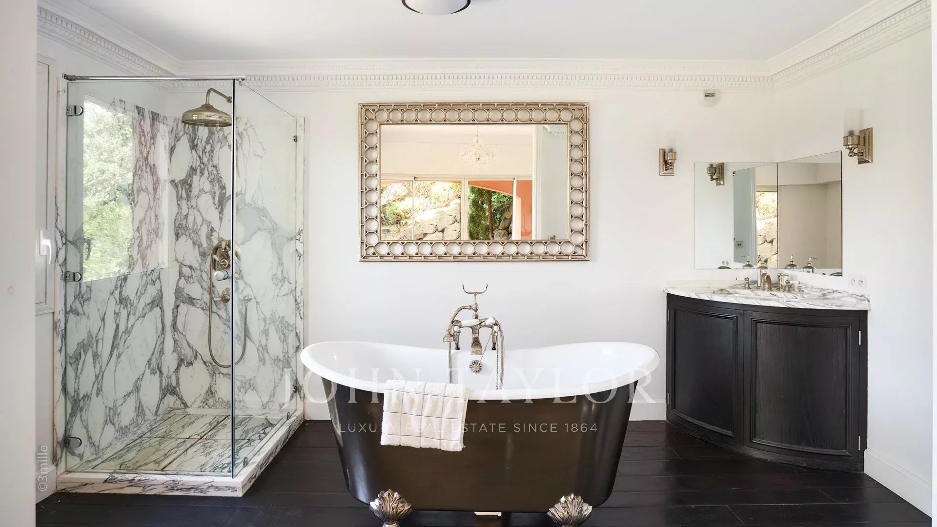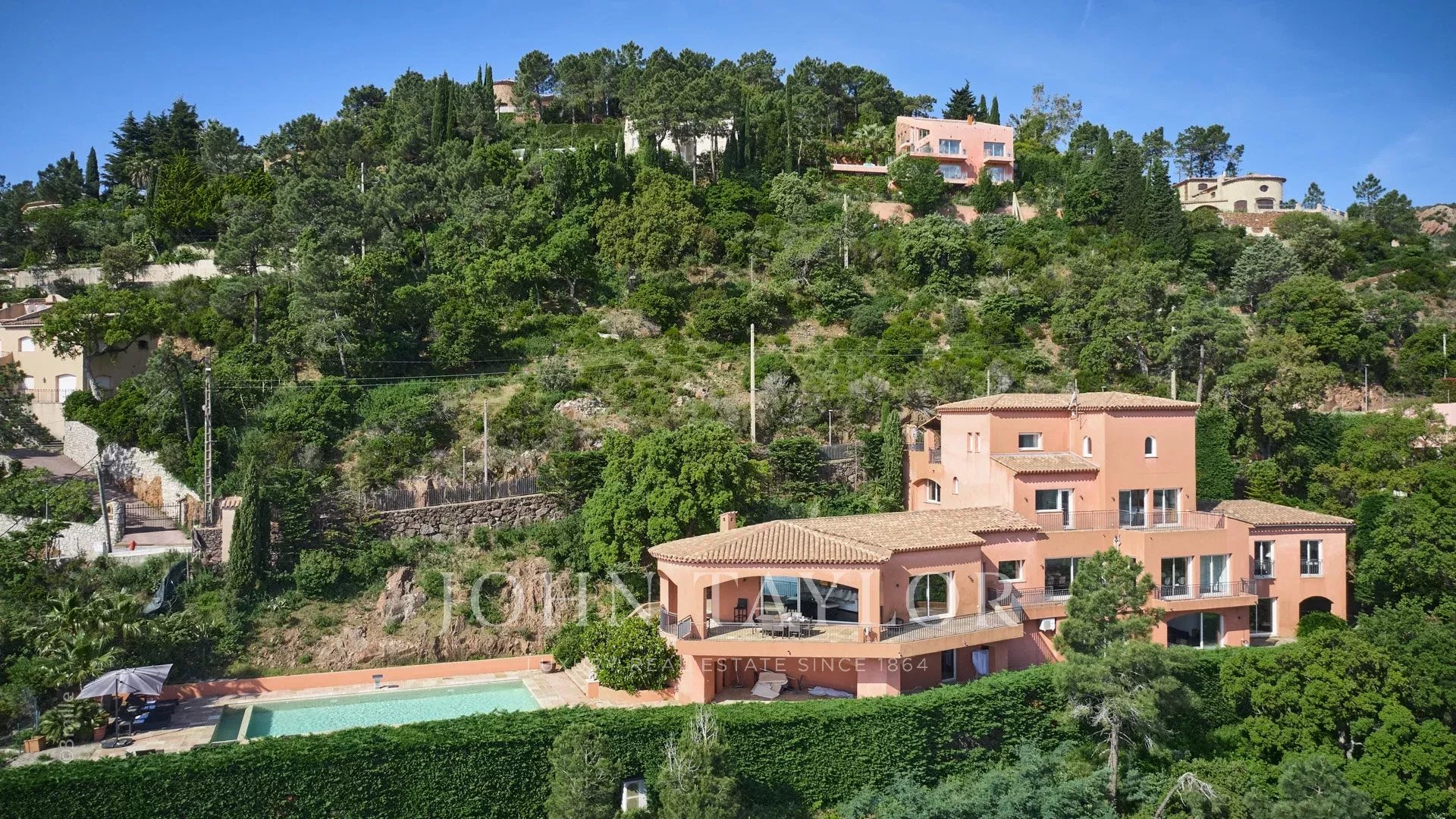Cette propriété, située au sommet d'un domaine privé, dans un calme absolu, est dotée d'une surface habitable d'environ 660 m² sur un terrain de 4680 m².