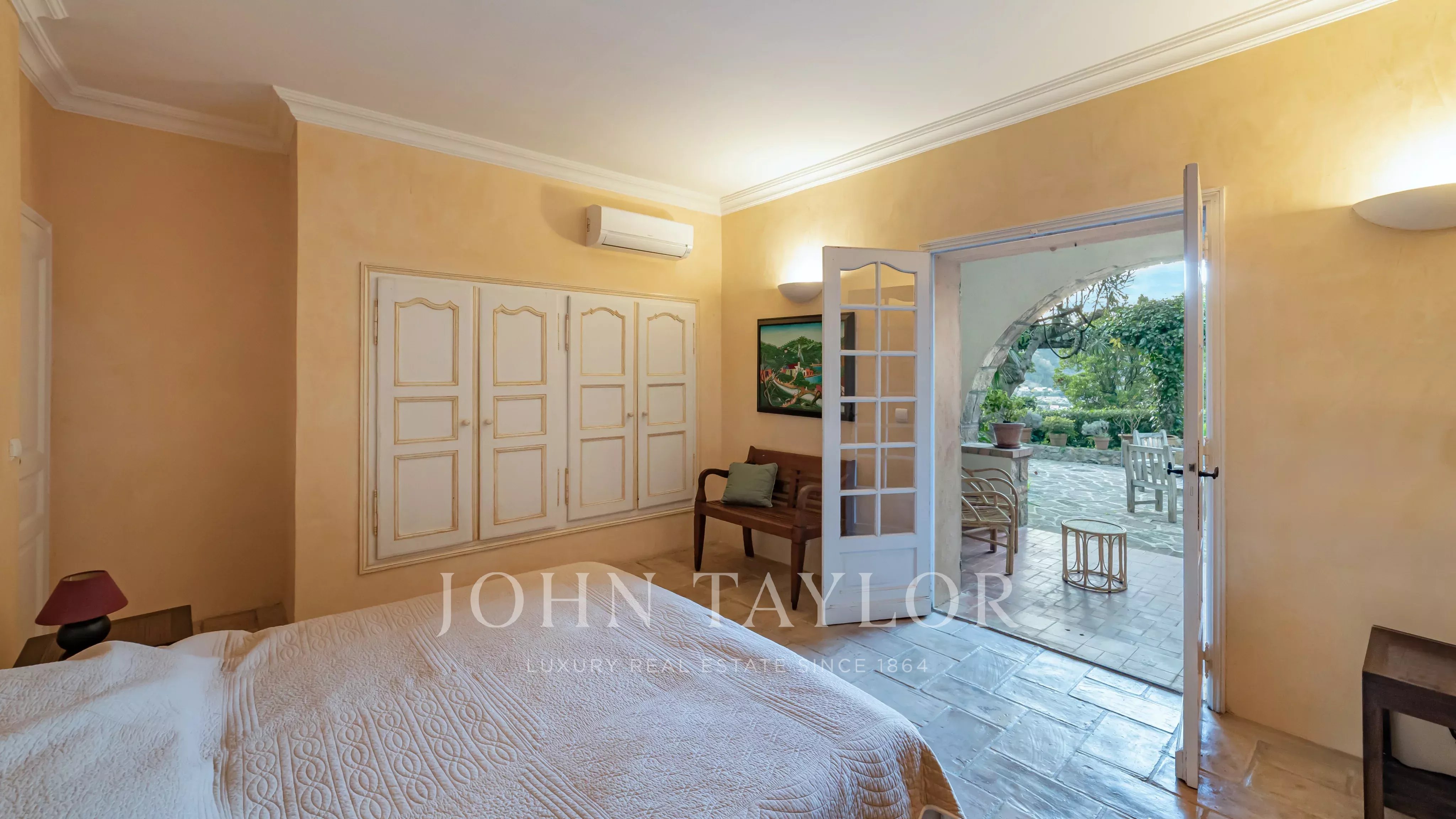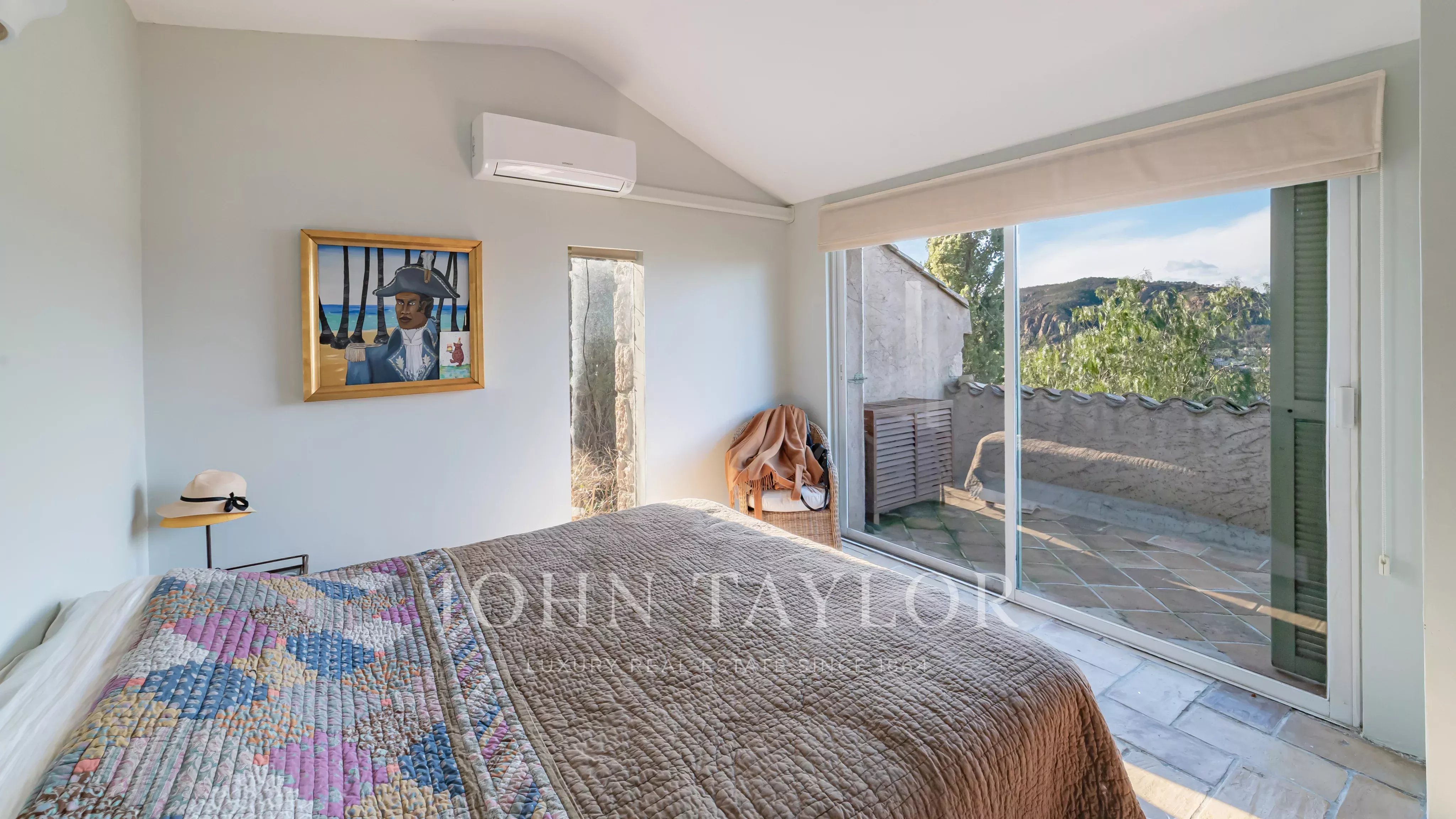 Propriété provençale en pierre, vue mer, environnement verdoyant