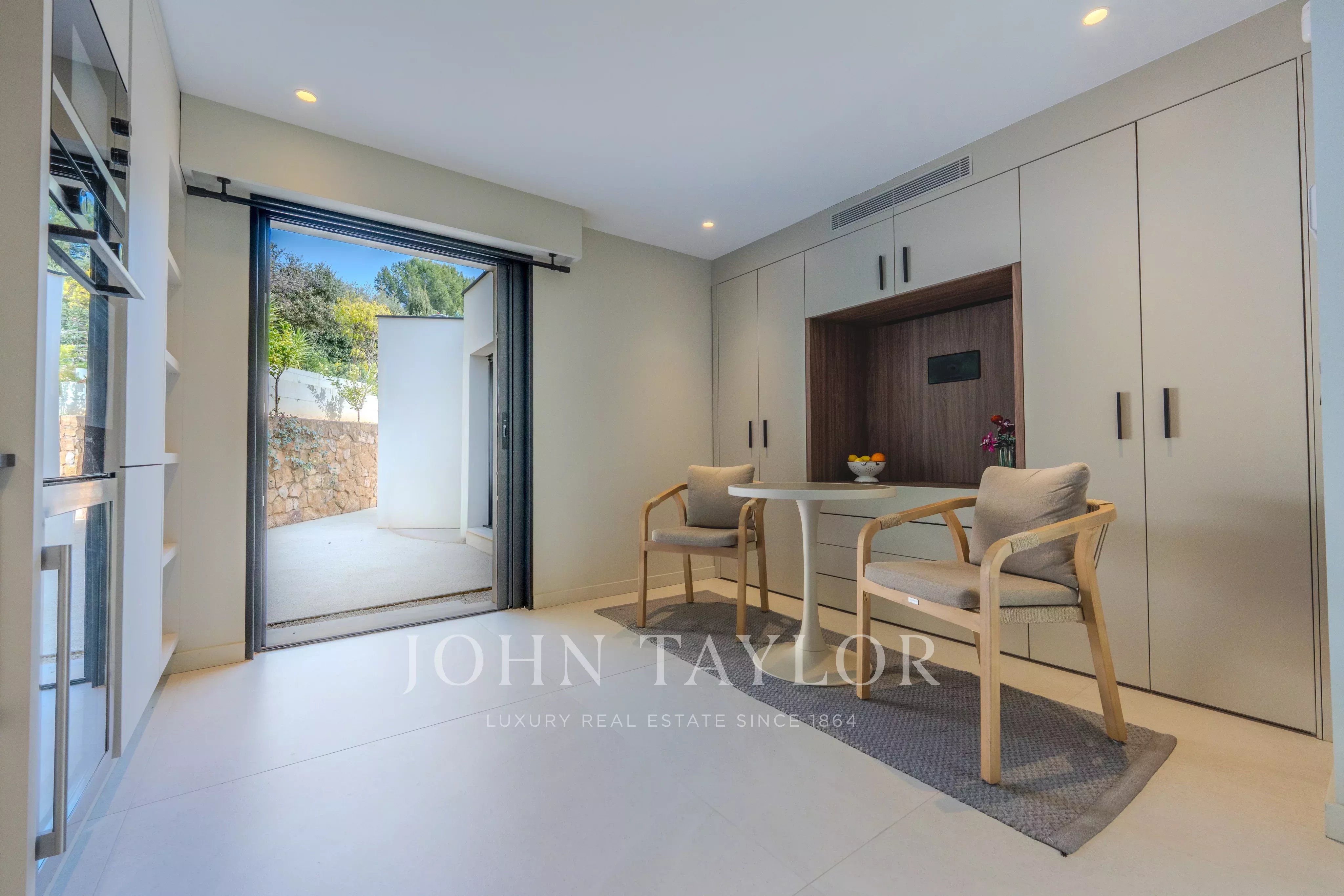 Un grand garage ainsi qu’une salle de sport viennent parfaire les prestations de cette villa, véritable havre de paix conjuguant luxe, sécurité et environnement naturel d’exception.