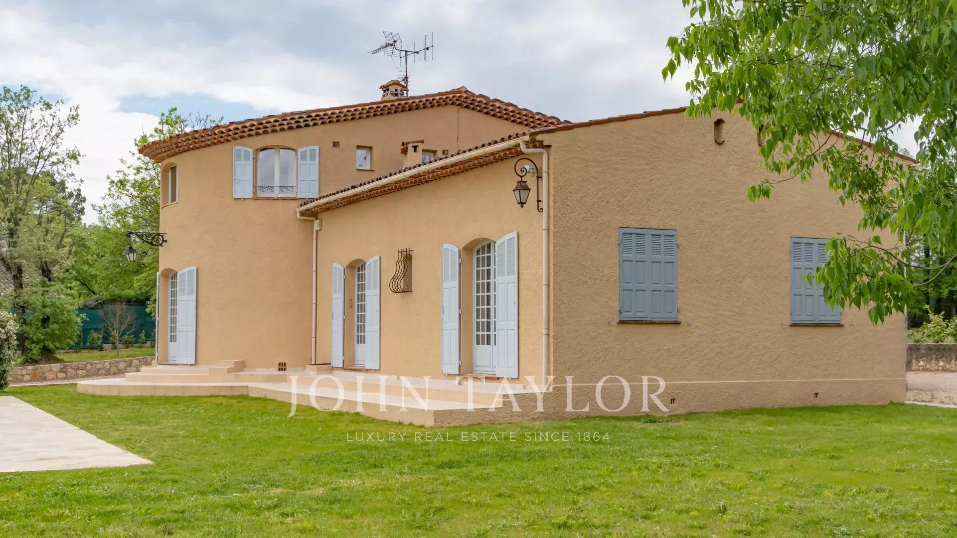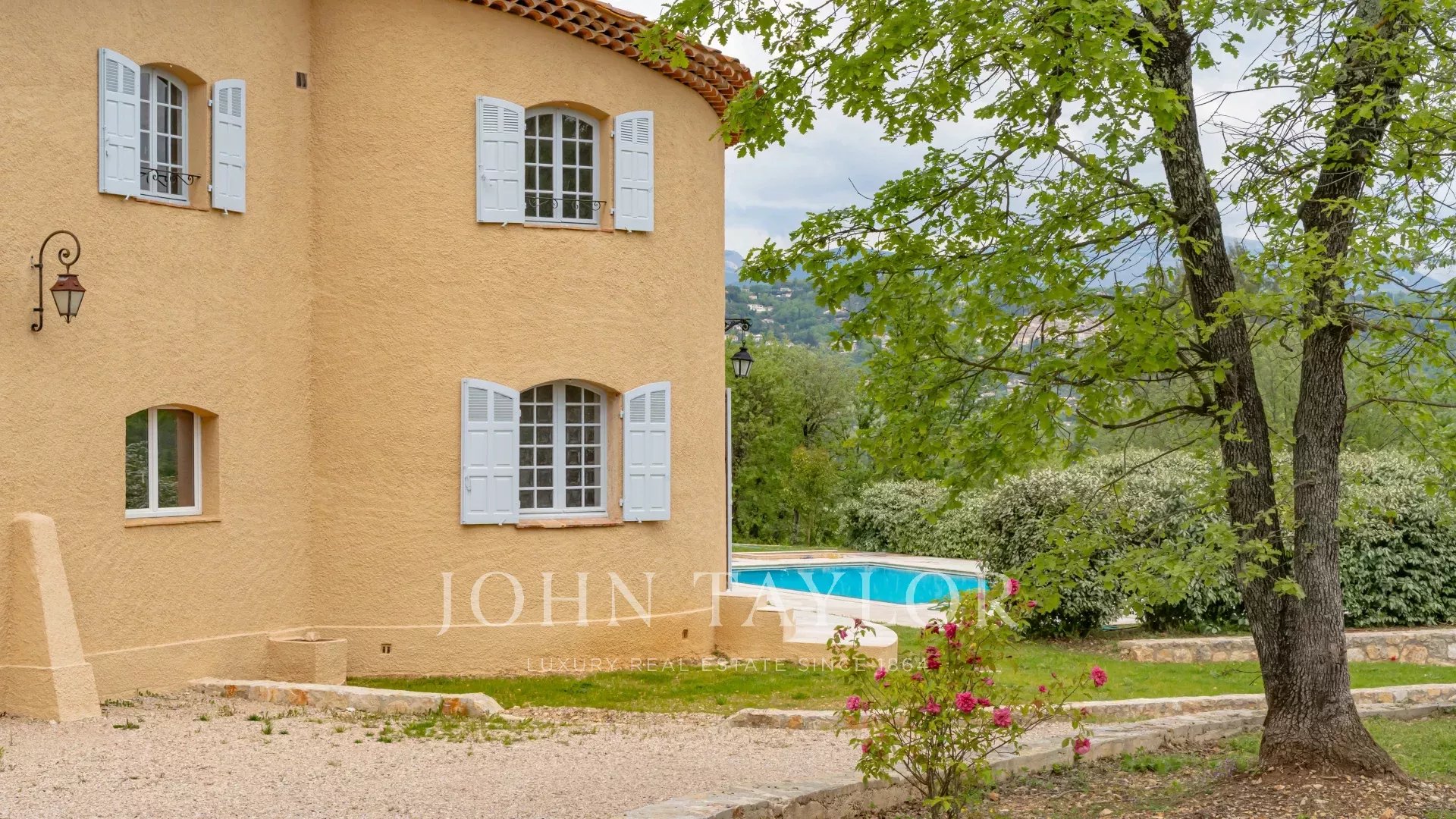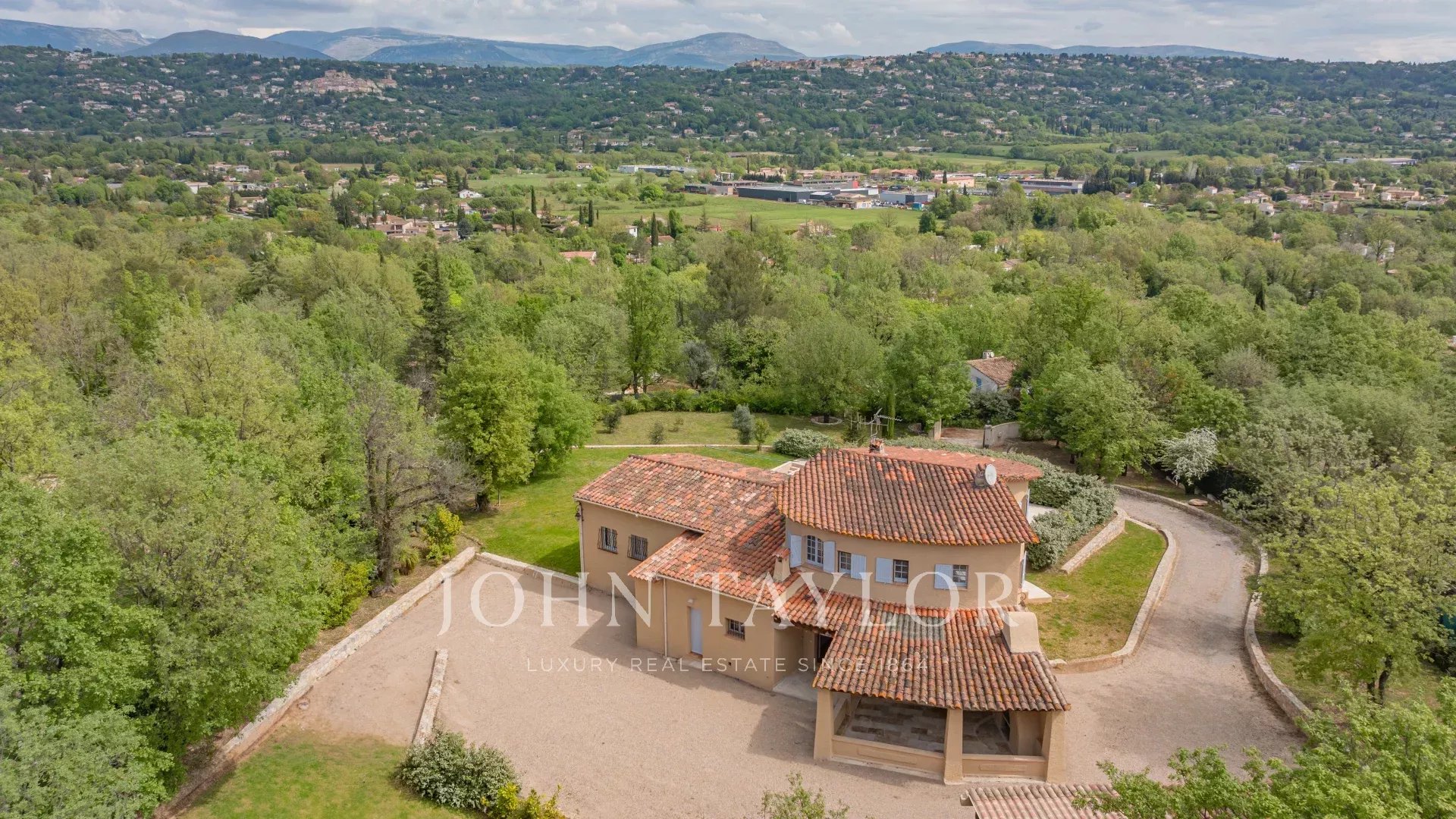 Dans un quartier recherché et au calme absolu, une villa de 220 m2 sur un terrain arboré de 4400 m2 avec vue panoramique sur les collines alentours et à proximité immédiate des commerces.