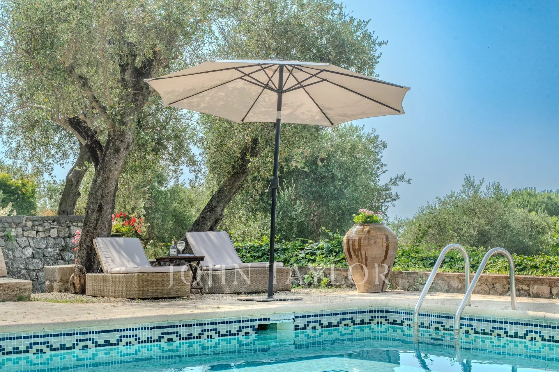 Une vaste terrasse en pierre naturelle vient compléter cet environnement méditerranéen – parfait pour les soirées d’été en famille ou entre amis.