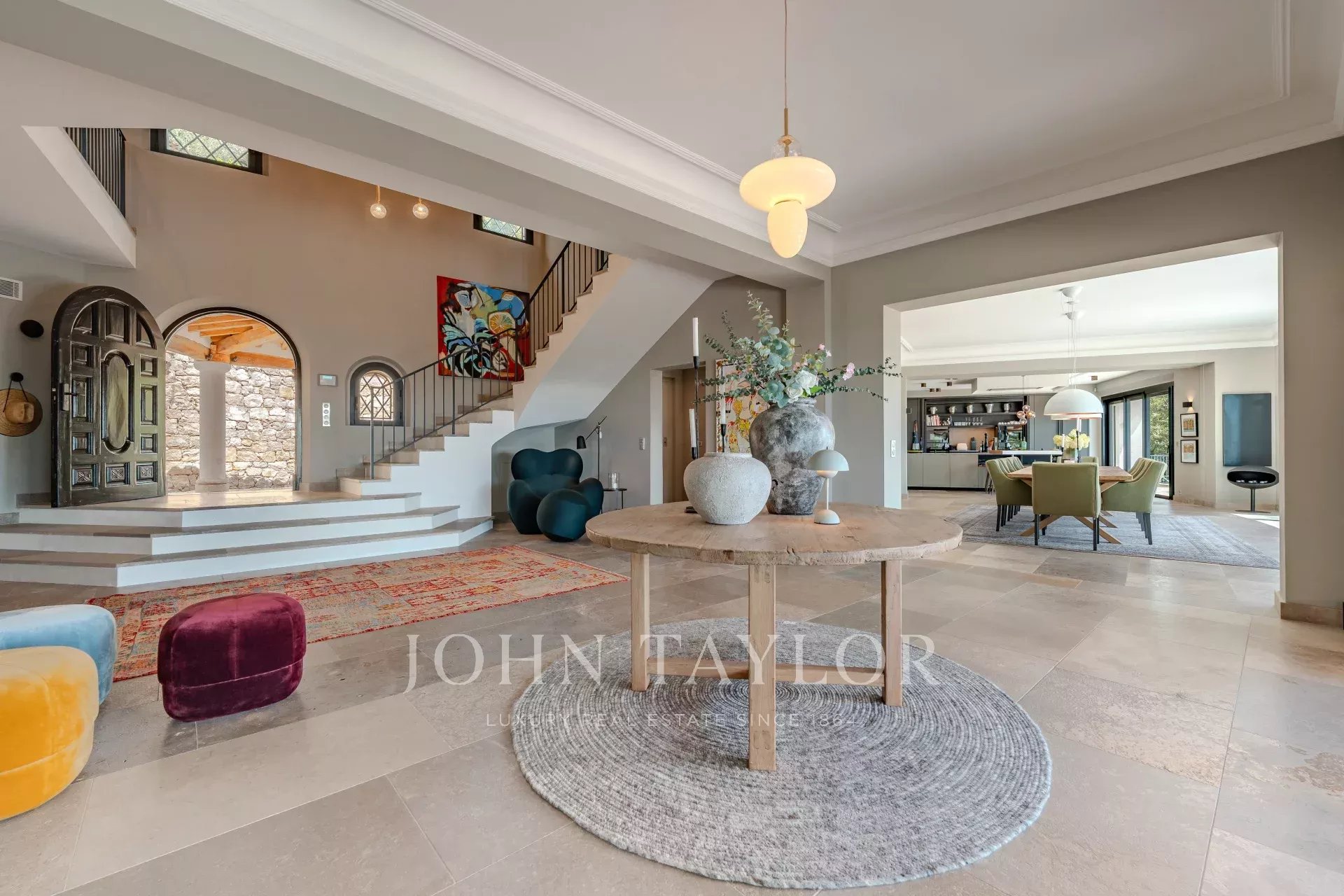 Nichée dans les collines pittoresques de l'arrière-pays cannois, cette magnifique villa récemment rénovée incarne le confort, le luxe, la modernité et une qualité inégalée, associés à une vue panoramique à couper le souffle jusqu'à la baie de Mandelieu !
