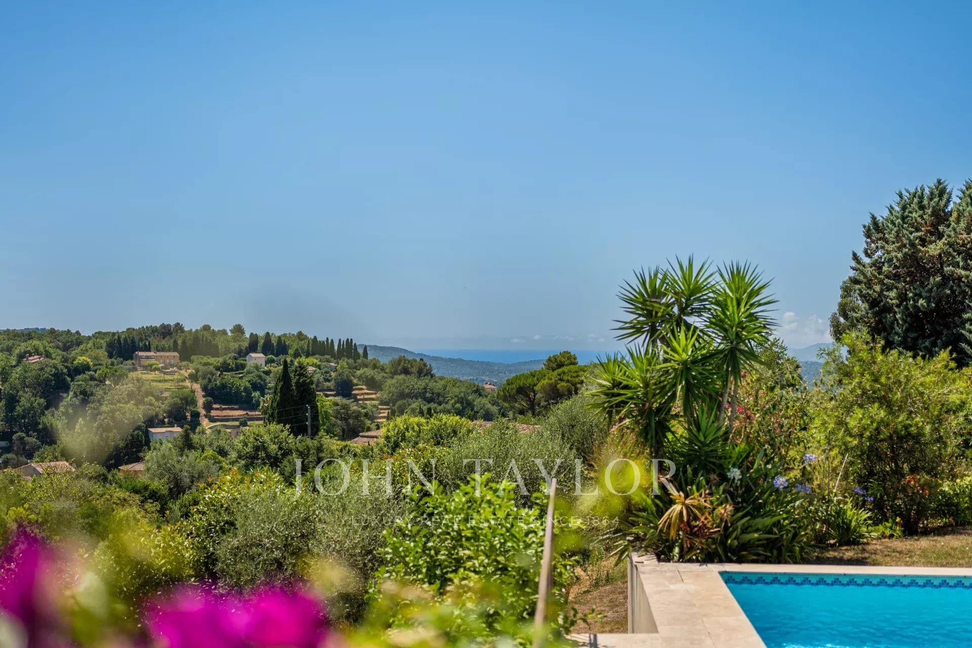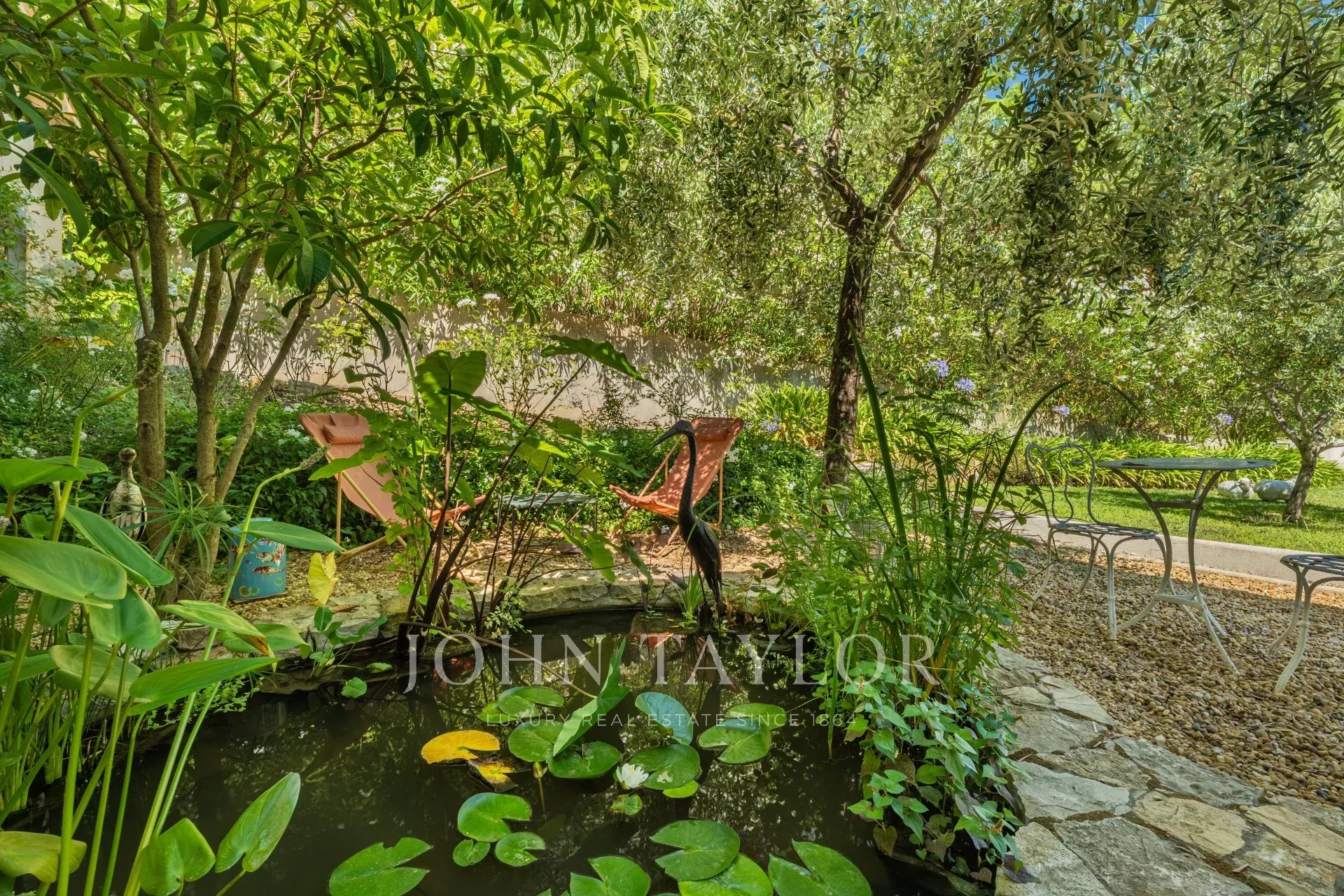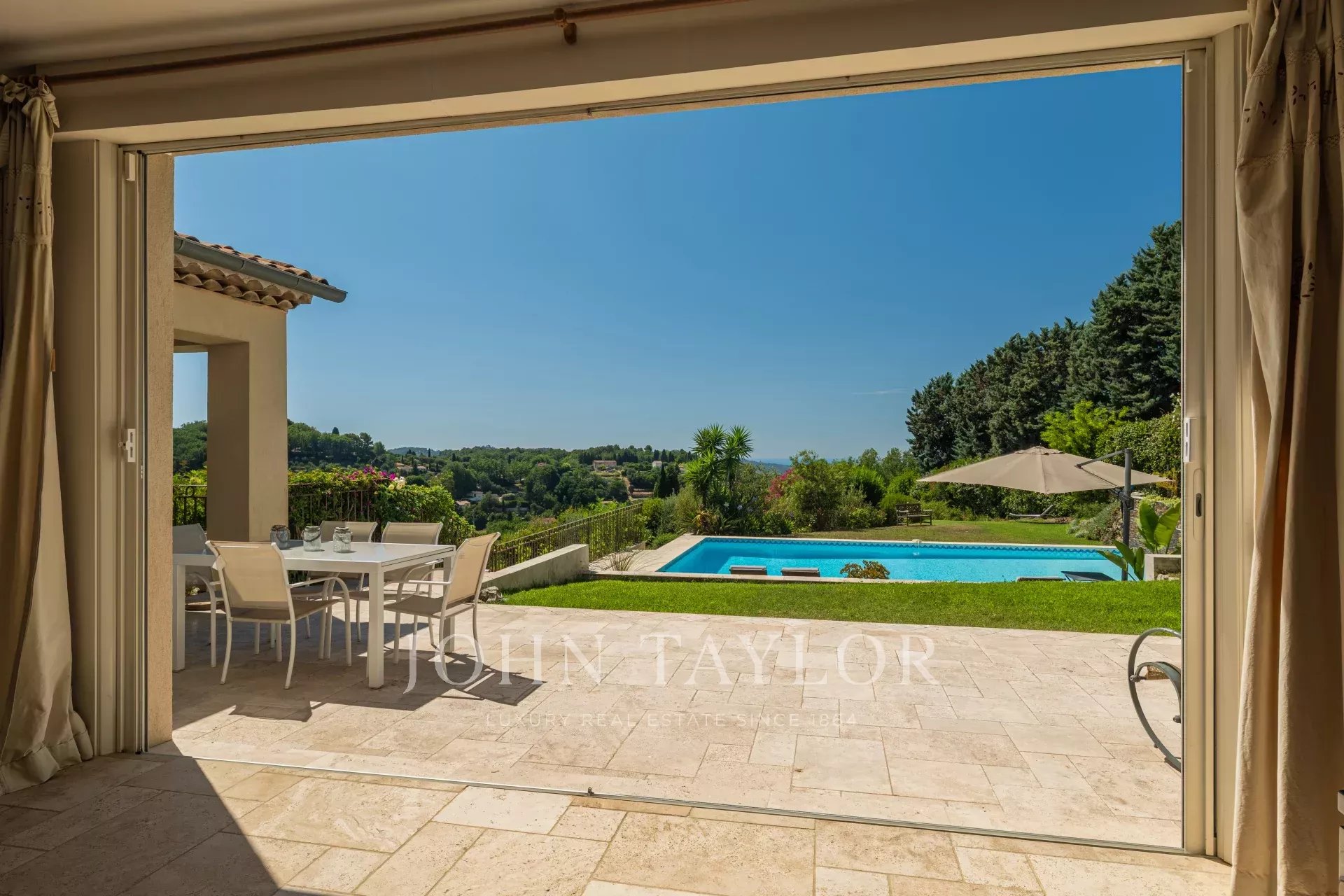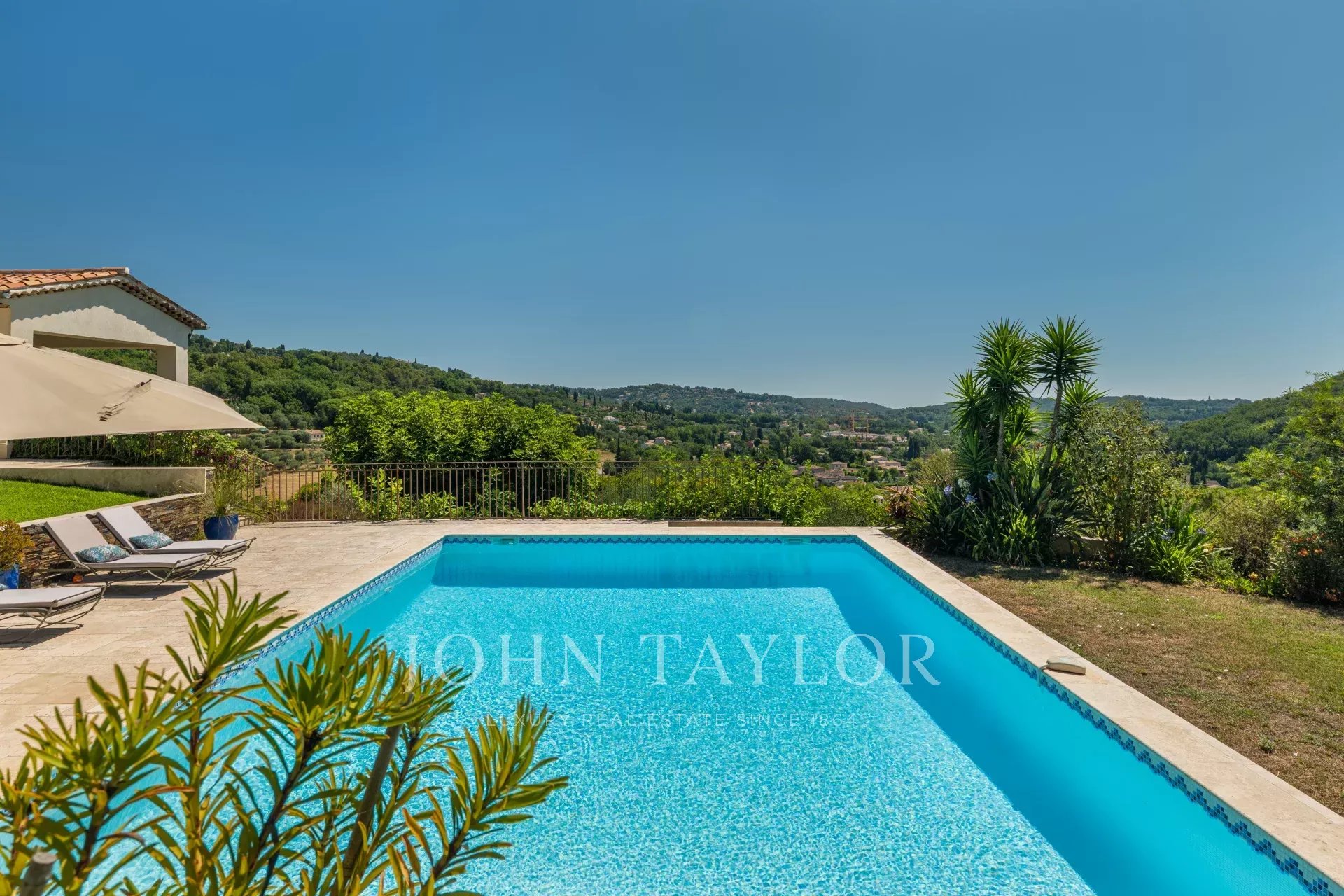 À l'extérieur, la propriété dispose d'une grande piscine avec fontaine, de jardins magnifiquement entretenus et d'une aire de jeux pour les enfants, le tout baigné de soleil grâce à une orientation plein sud. La villa est remarquablement paisible et constitue un véritable sanctuaire.
