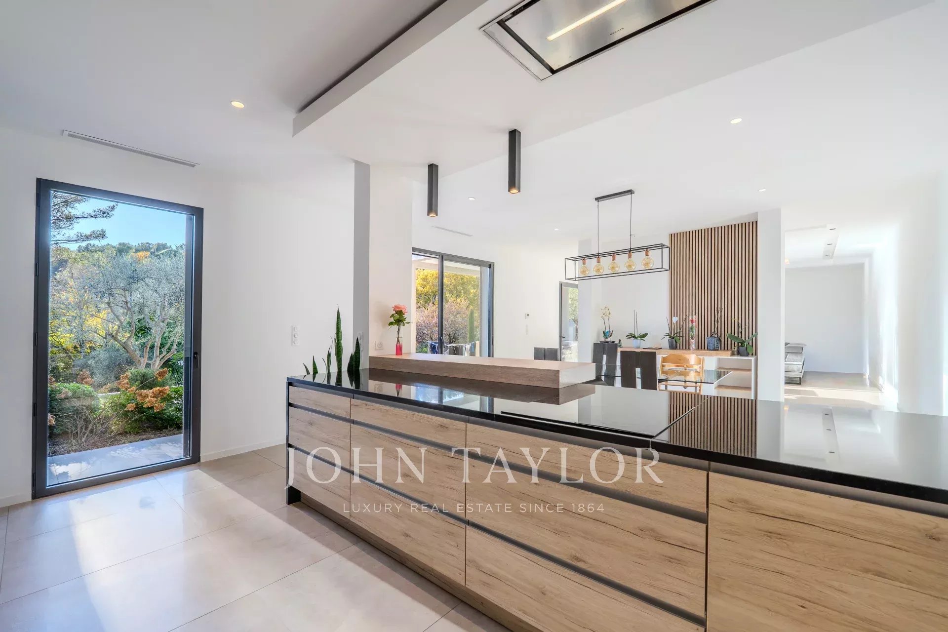 Conçue avec des matériaux de qualité et des finitions haut de gamme, la propriété offre de généreux volumes baignés de lumière.