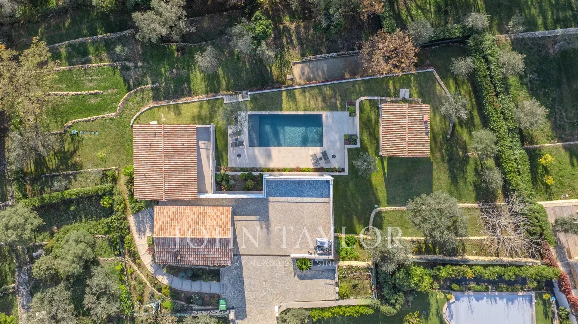 Édifiée sur un terrain en restanques de 1874 m2 soigneusement paysagé, la propriété se prolonge vers un espace de détente d’exception : une somptueuse piscine au sel de 12x5, un spacieux pool house, un garage et de nombreuses places de stationnement complètent ce bien.