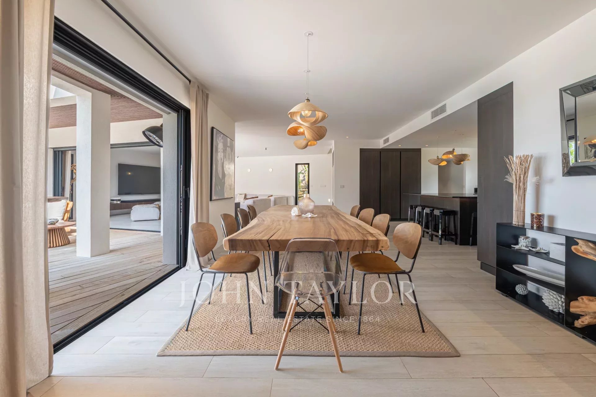 Le rez-de-chaussée, comprend le séjour avec de grandes baies vitrées, une vaste cuisine moderne avec équipements hauts de gamme, ainsi qu’une première chambre, idéale pour une suite parentale.