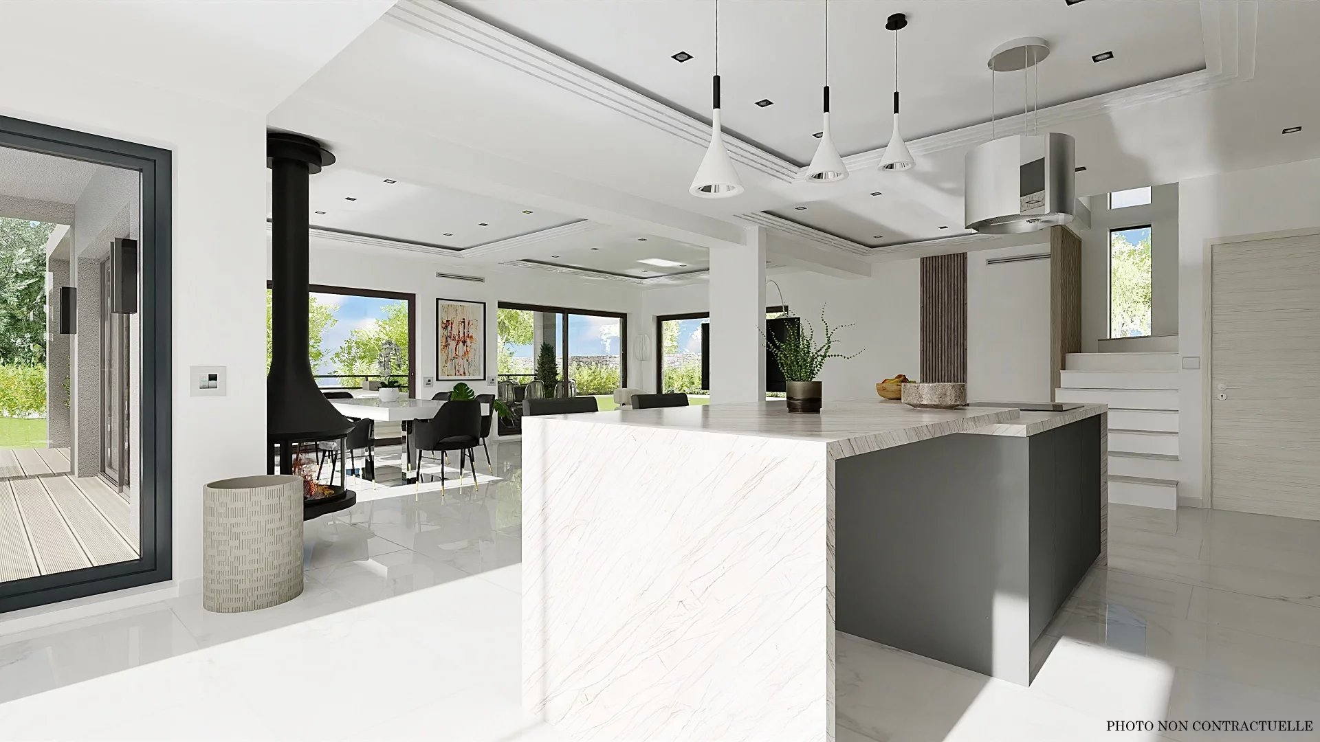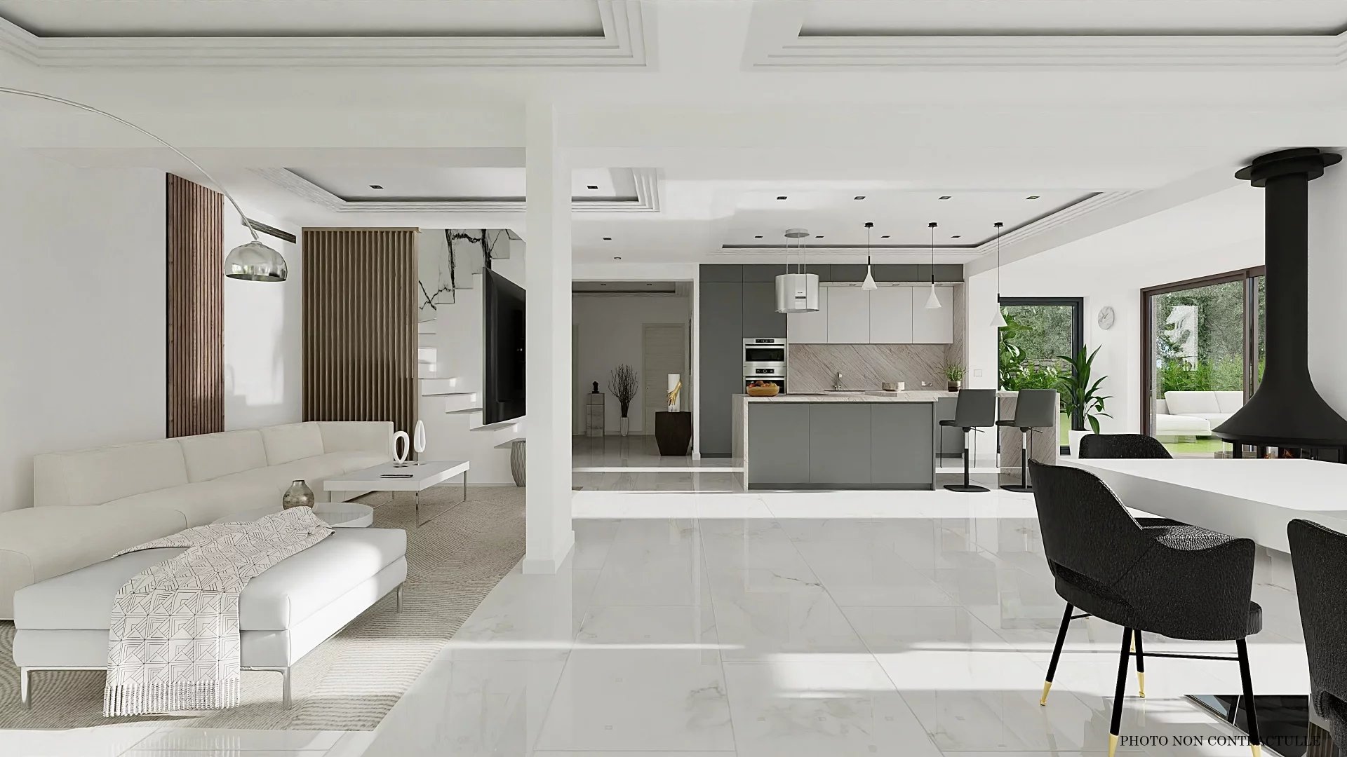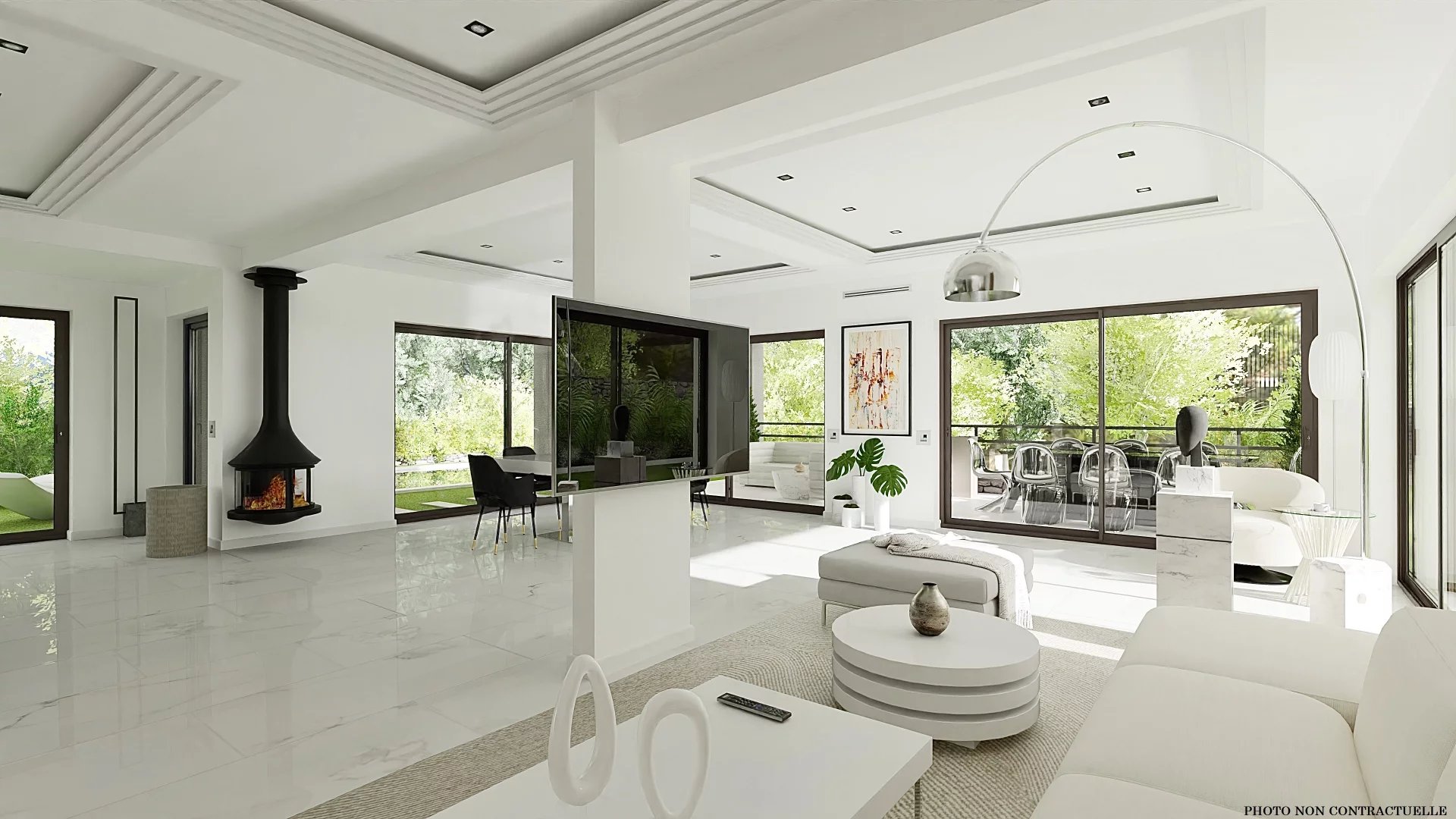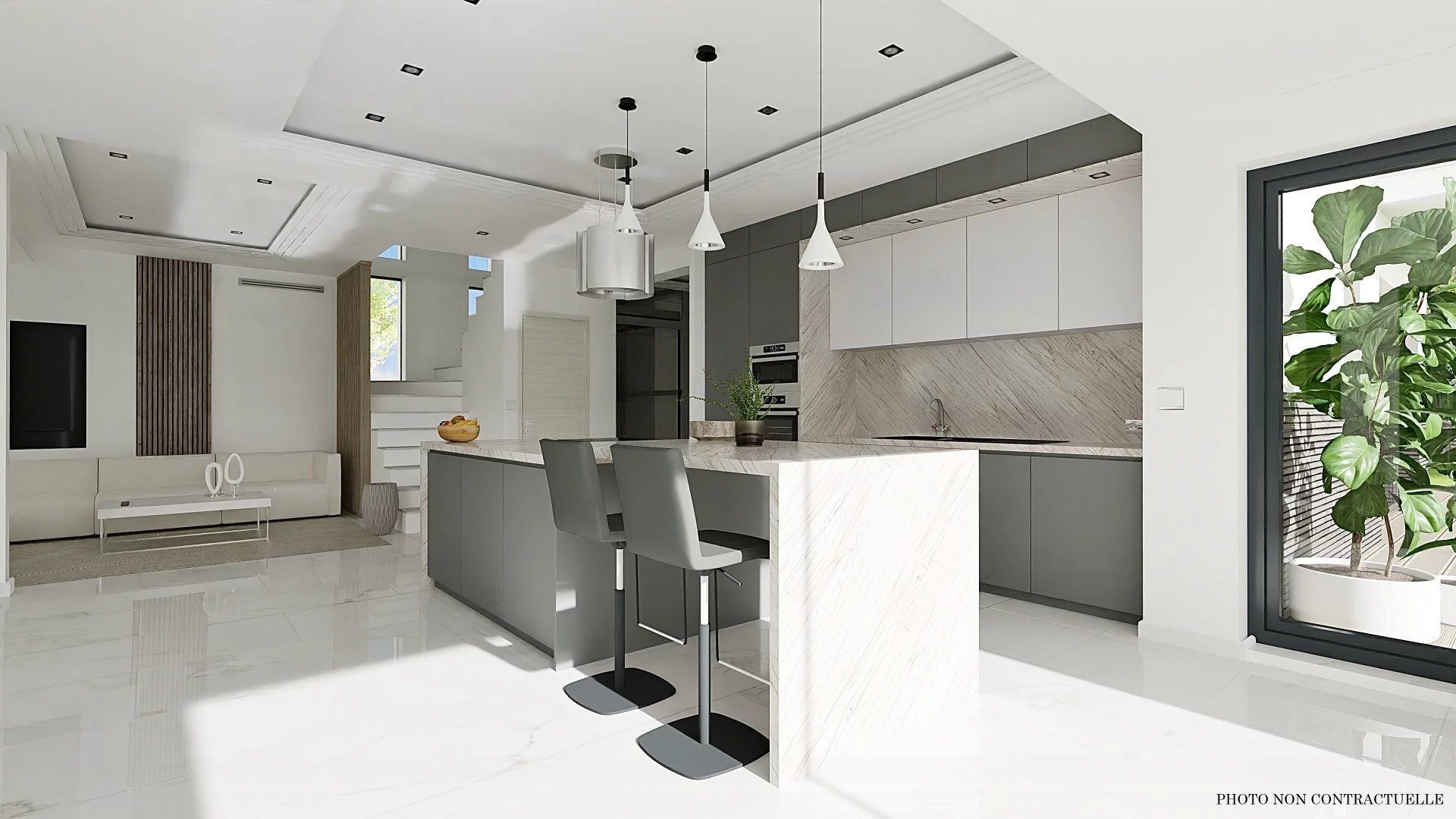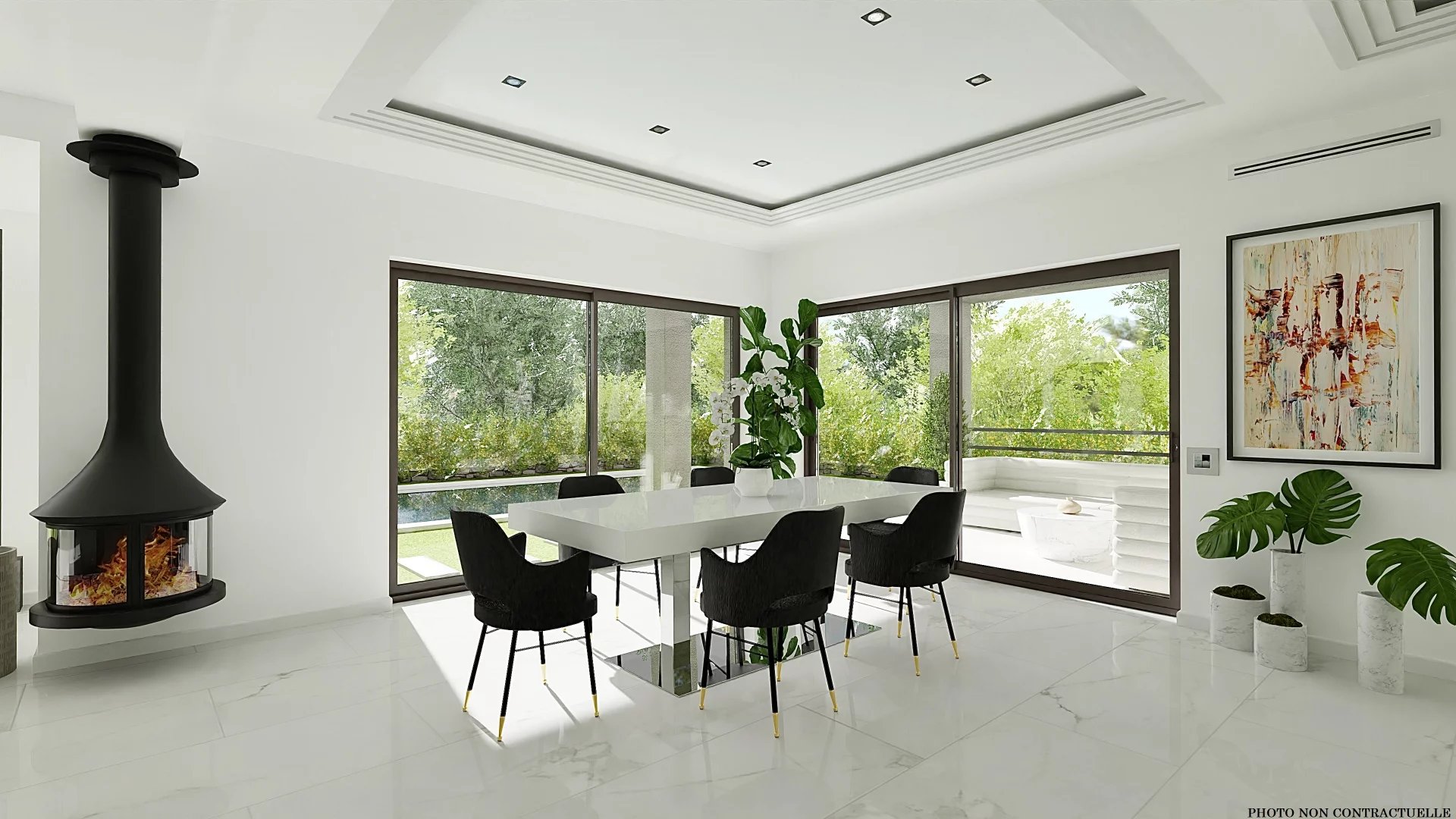 Superbe villa contemporaine en cours de construction, matériaux et équipements haut de gamme. Frais de notaire réduits.