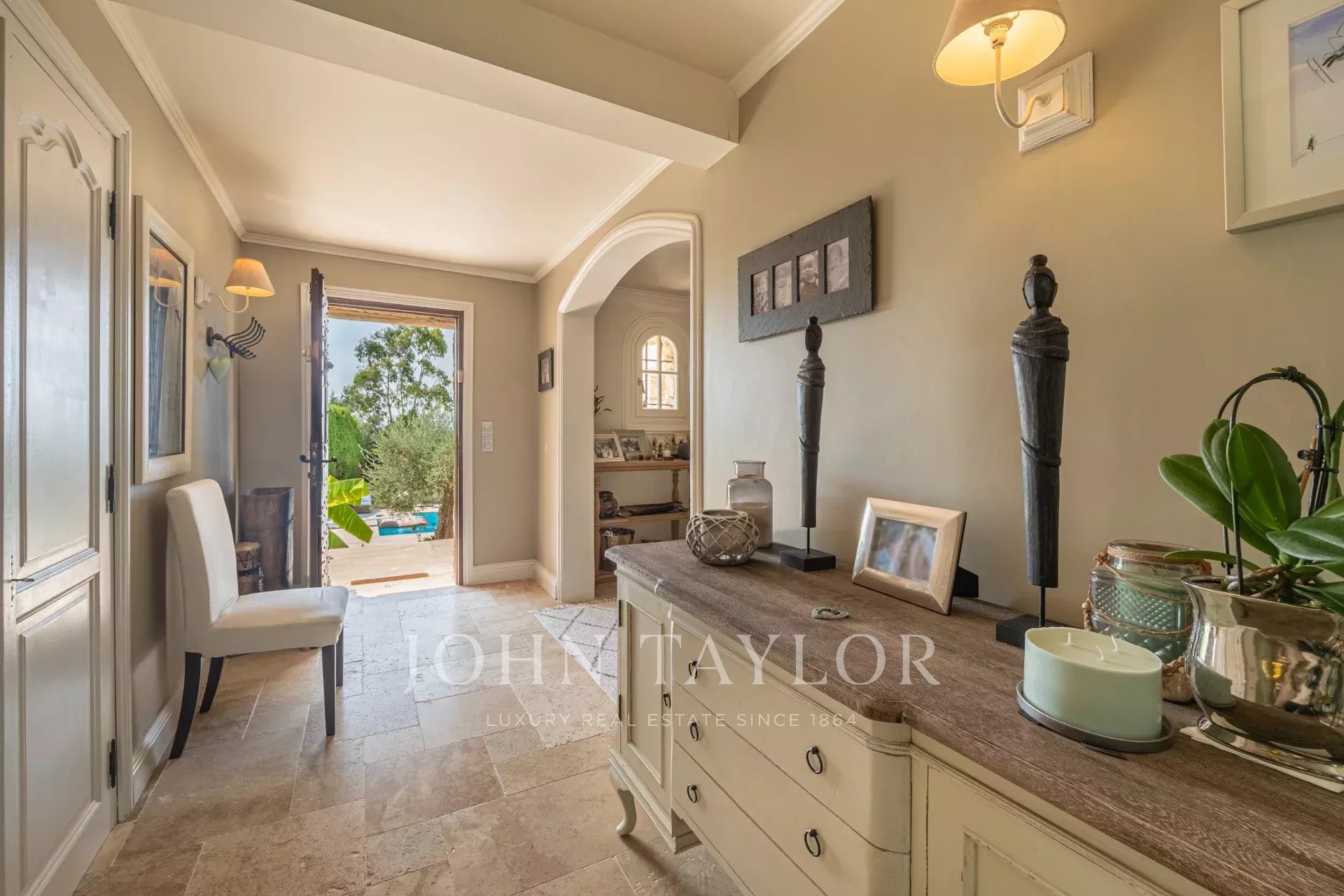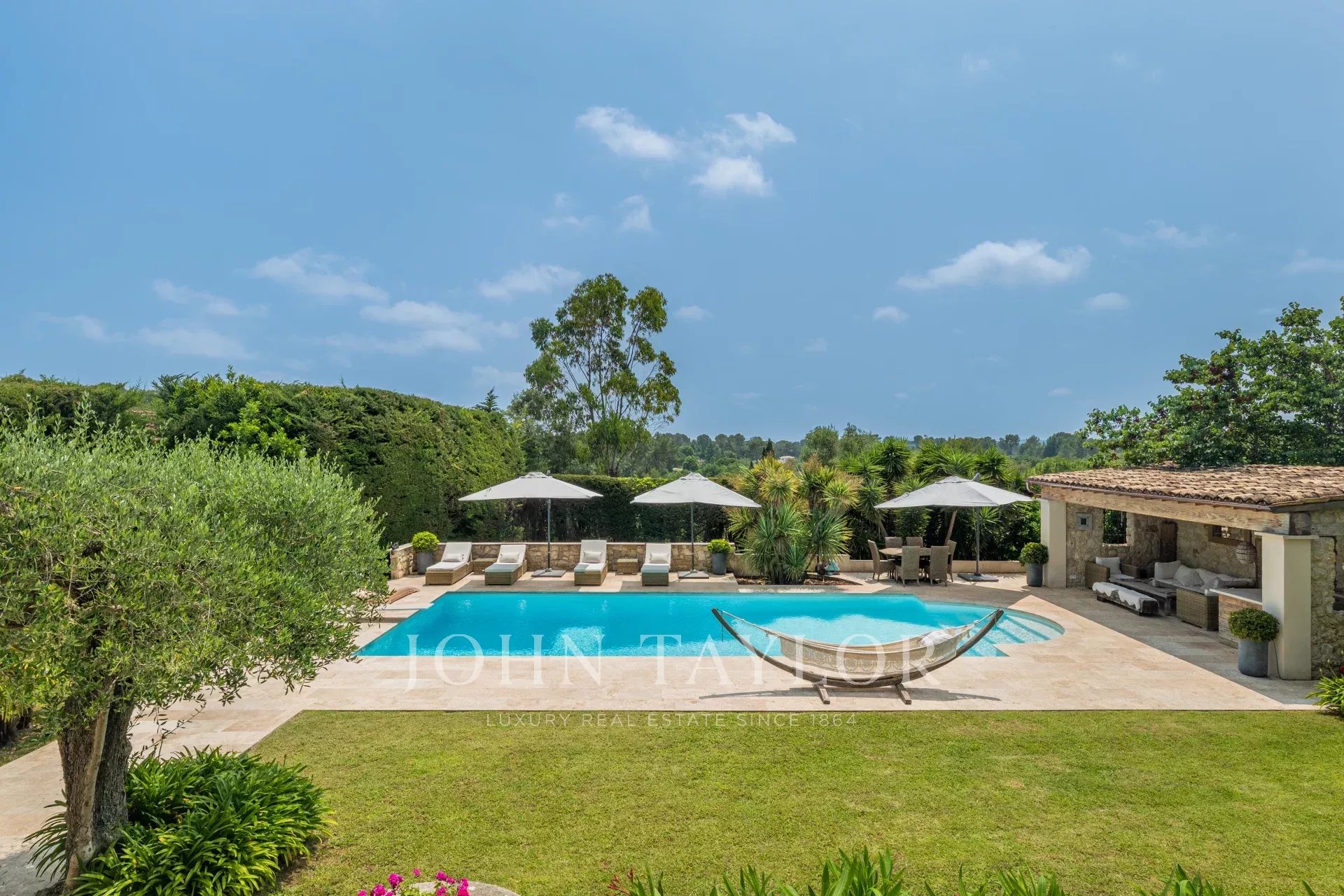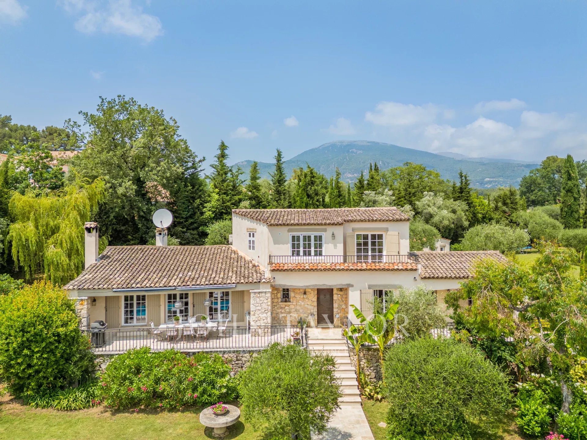 Nichée dans un cadre paisible et en position dominante à Roquefort-les-Pins, cette propriété pleine de charme incarne l’art de vivre provençal. À seulement 8 minutes du village enchanteur de Valbonne et 15 minutes de Mougins, elle offre un véritable havre de paix, à l’abri des regards, avec cinq terrasses extérieures invitant à la détente à toute heure du jour.