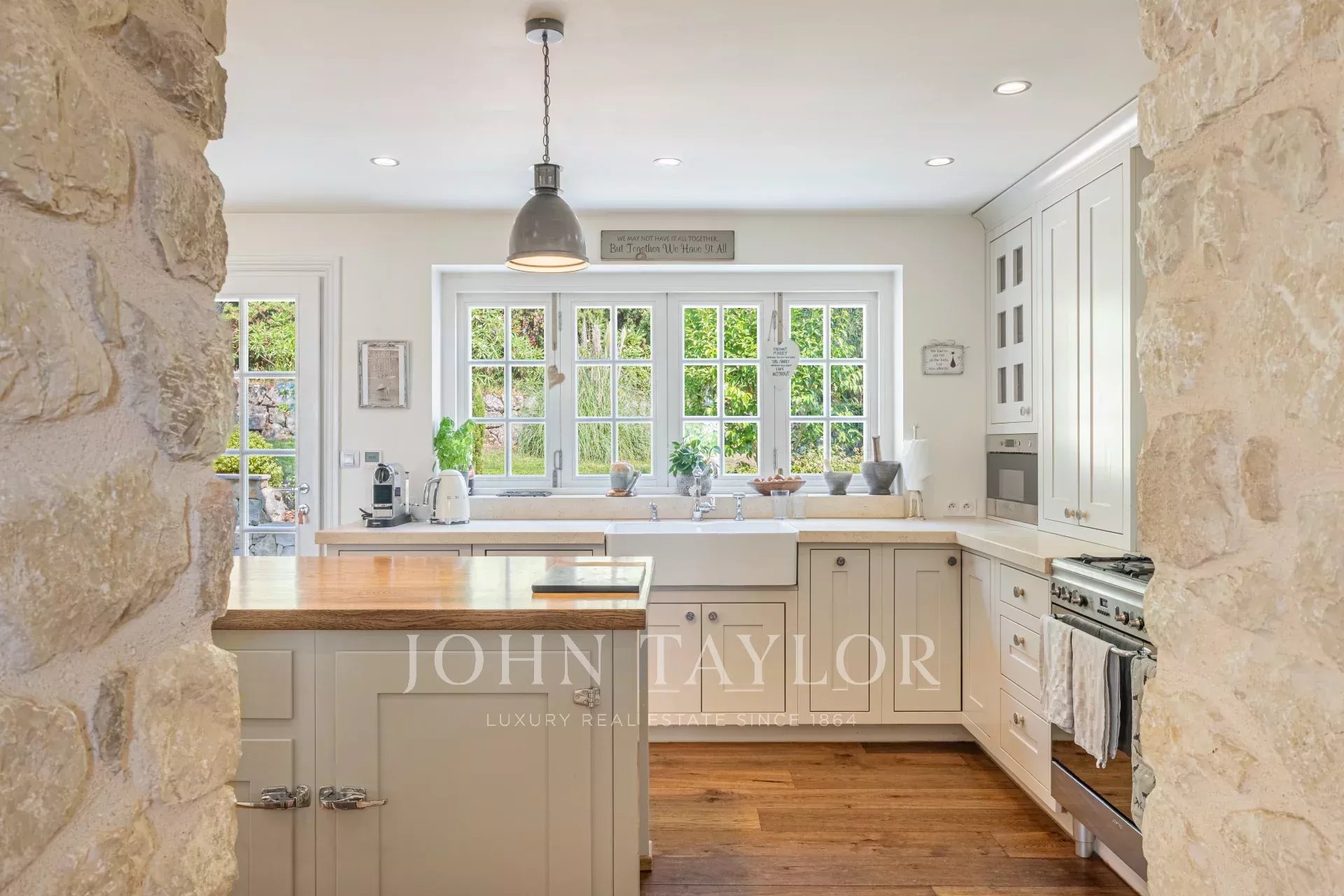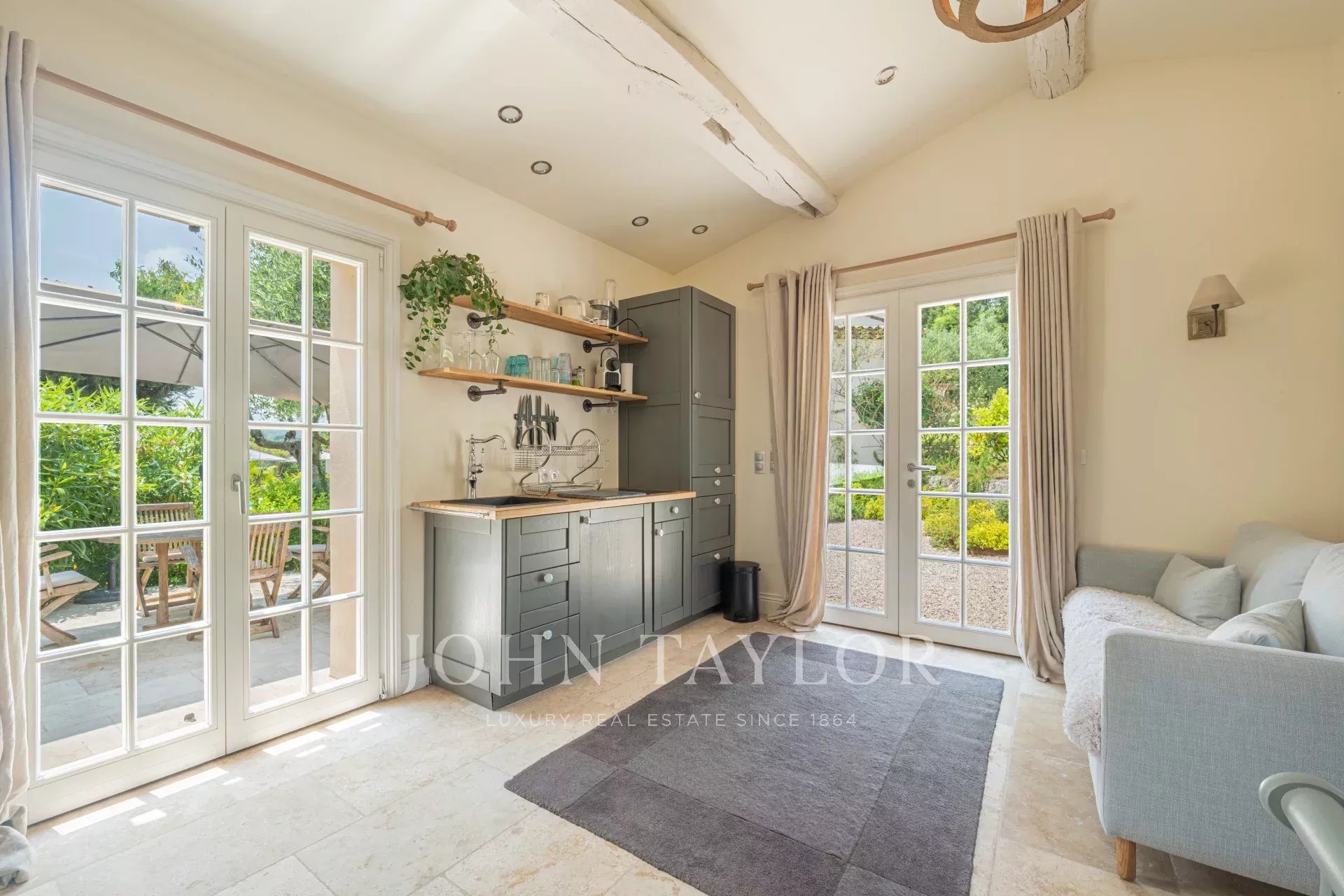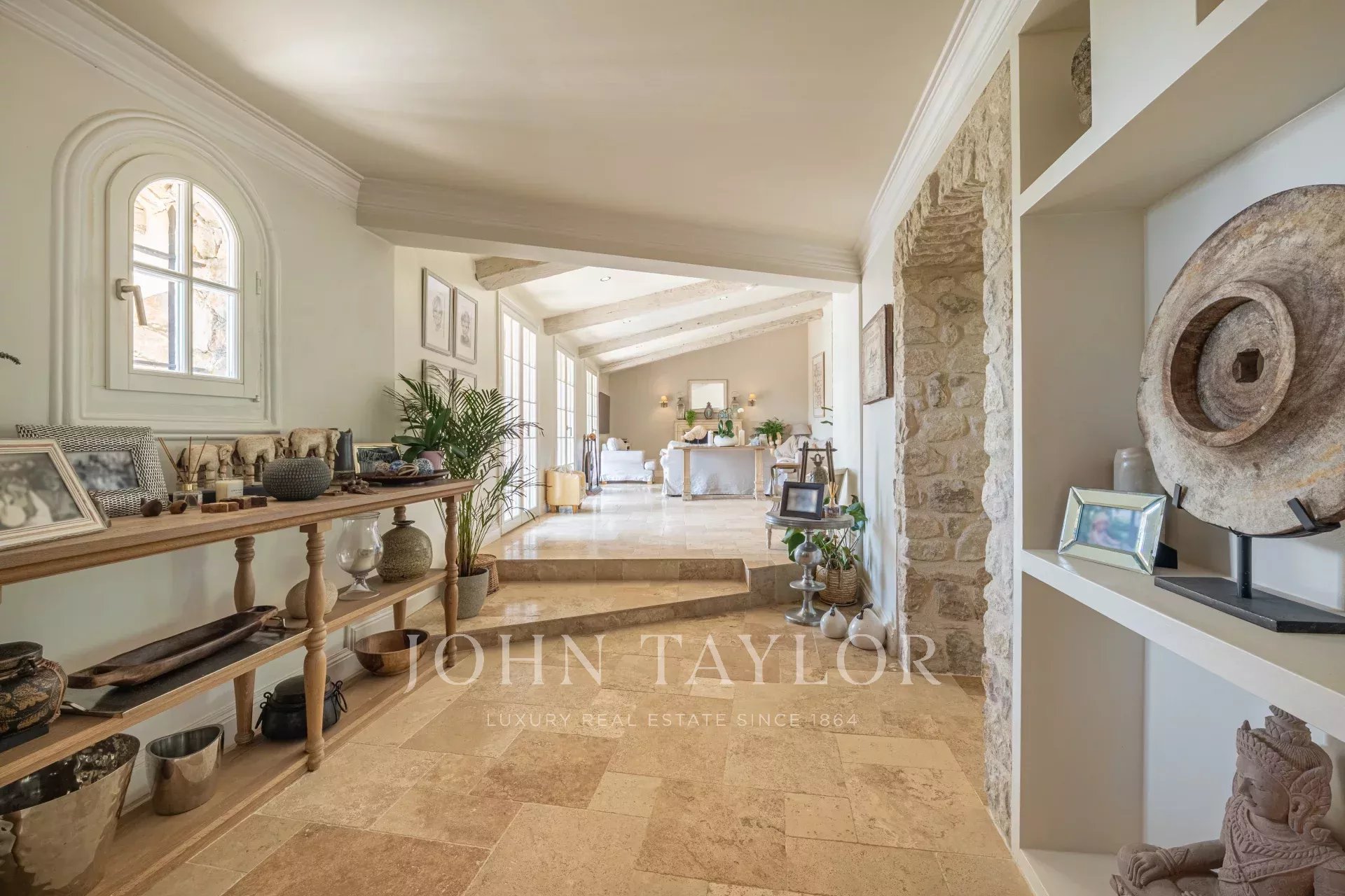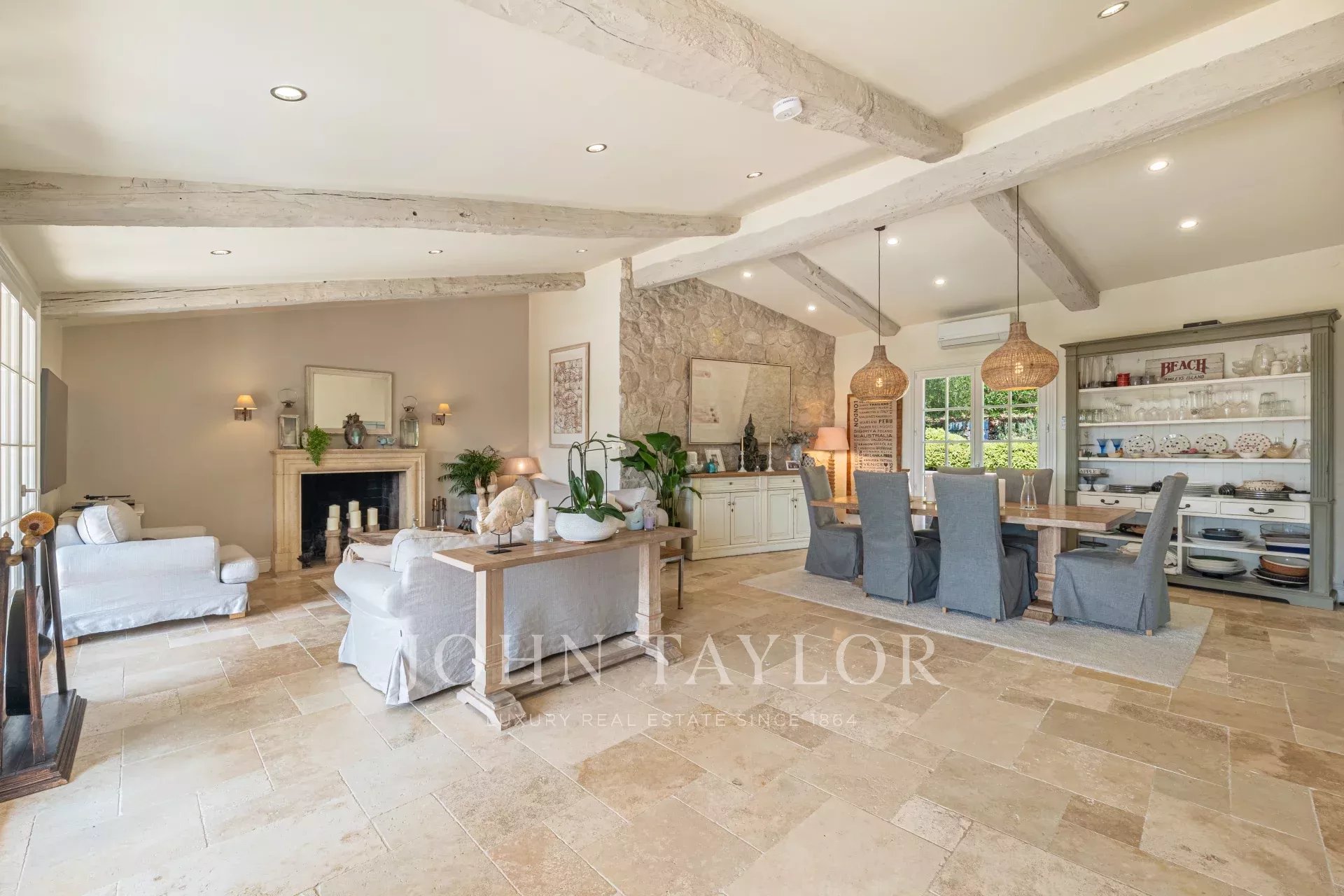 Récemment rénovée avec soin, la maison mêle authenticité et confort moderne, mettant en valeur des matériaux nobles tels que la pierre naturelle, les poutres apparentes, et un jardin paysager de 3 000 m² aux essences méditerranéennes matures.