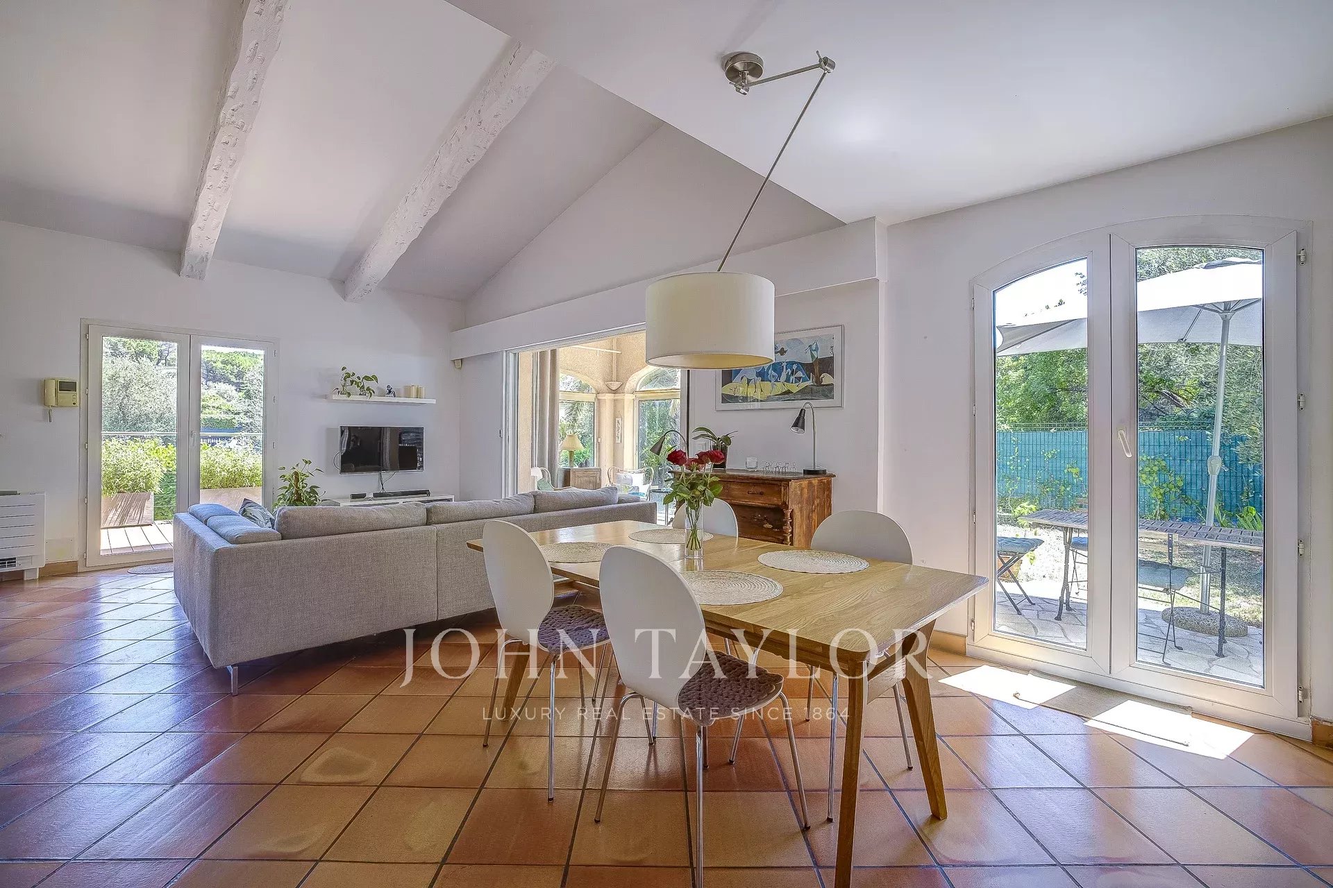 Idéalement située dans un quartier résidentiel recherché entre Mougins et Valbonne, cette belle villa familiale séduit par ses volumes généreux, sa luminosité et ses prestations de qualité.