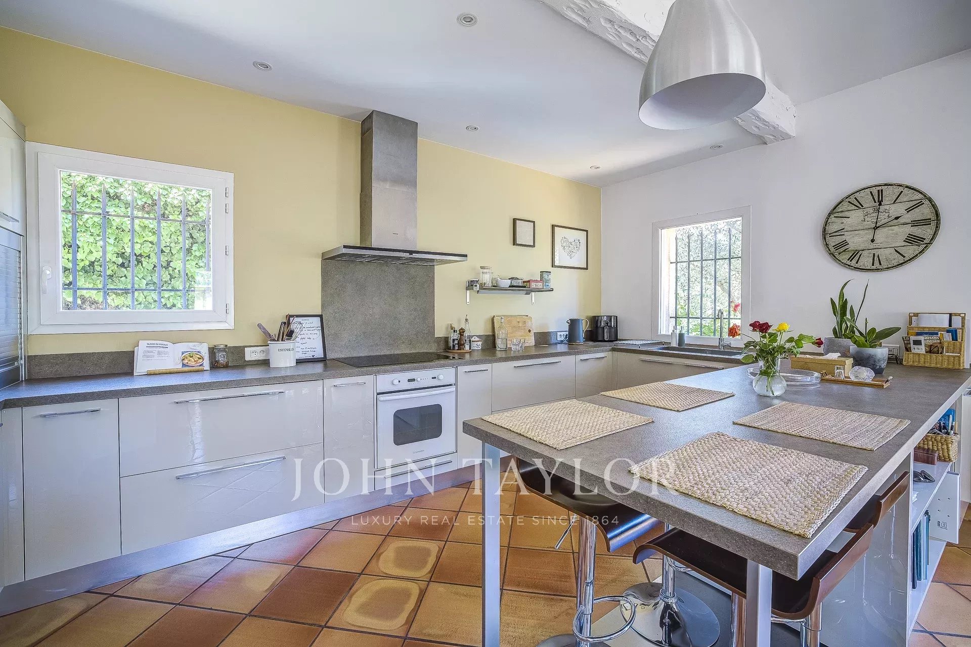 La villa dispose de quatre chambres, de deux salles de bains, ainsi que de nombreux espaces annexes très appréciables au quotidien, tels qu’une buanderie, une cave et un garage.