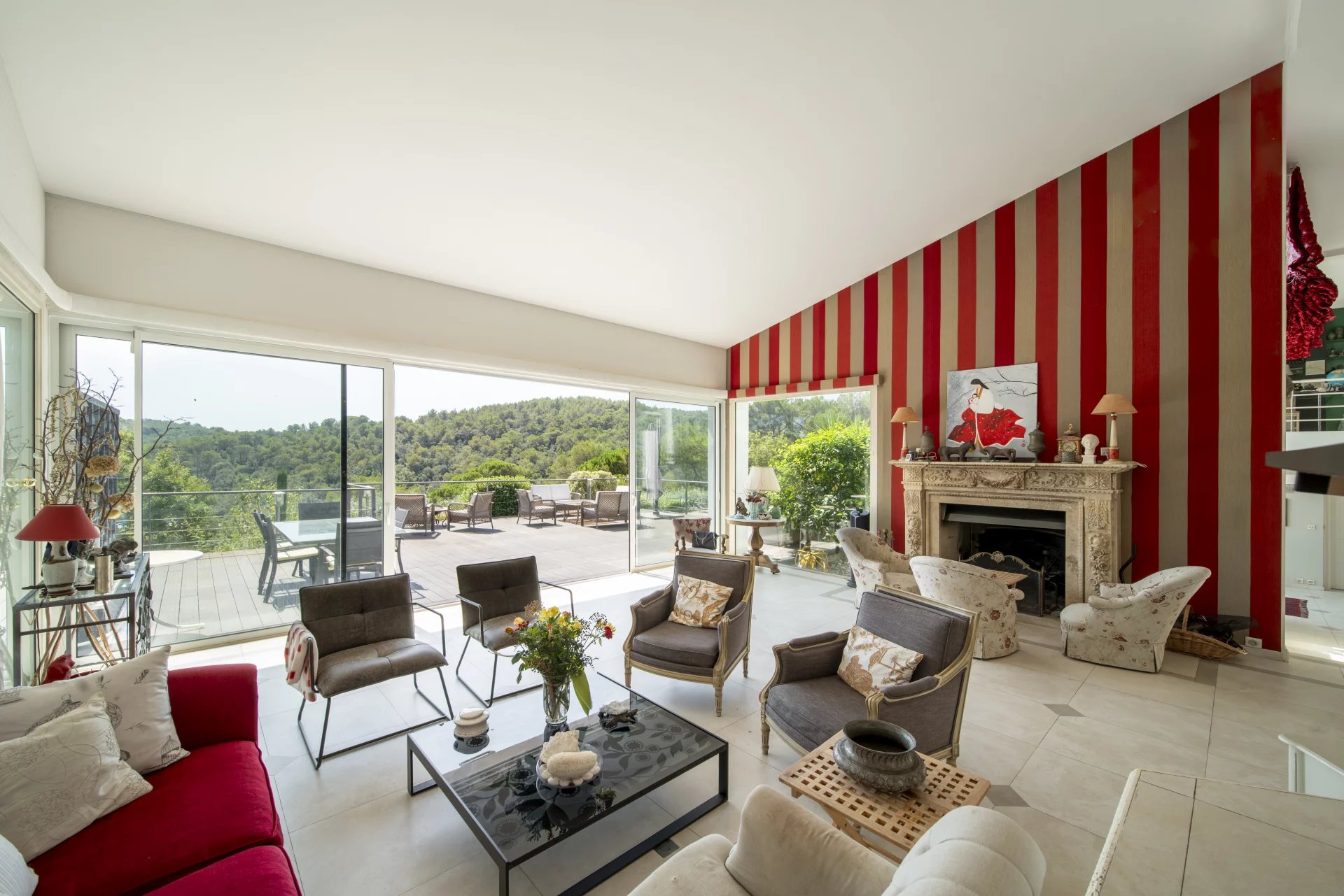 A pieds du village de Valbonne, dans un domaine privé recherché, ce chef d'œuvre architectural exceptionnel de 518 m², baigné de lumière naturelle, offre des vues dégagées à couper le souffle sur la forêt environnante, et un calme absolu. La propriété comprend cinq chambres spacieuses dans la maison principale, ainsi qu'un appartement indépendant de deux pièces principales, parfait pour les invités ou la famille.