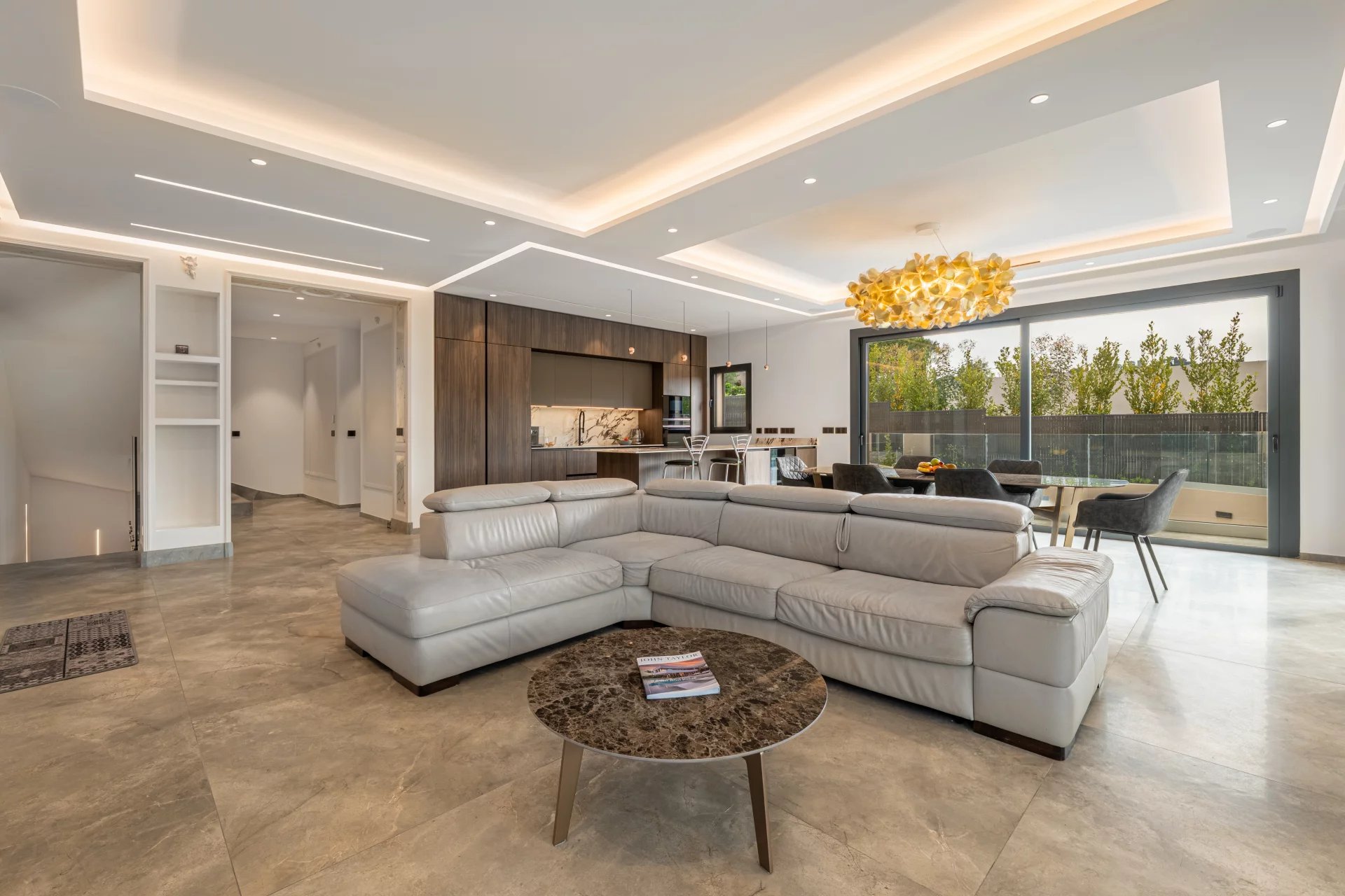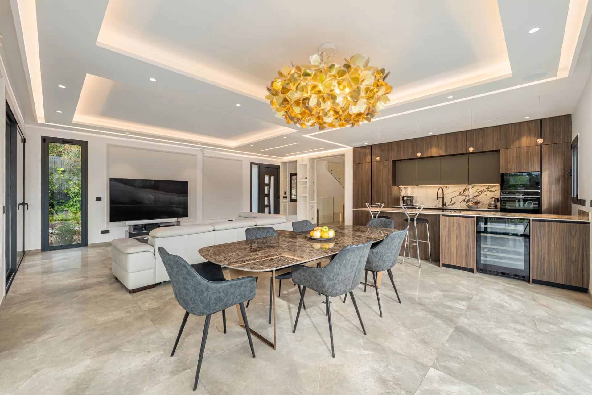 Dès l’entrée, vous serez séduit par un vaste espace de vie baigné de lumière, composé d’un salon / salle à manger, prolongé par une cuisine ouverte haut de gamme, aux finitions soignées.