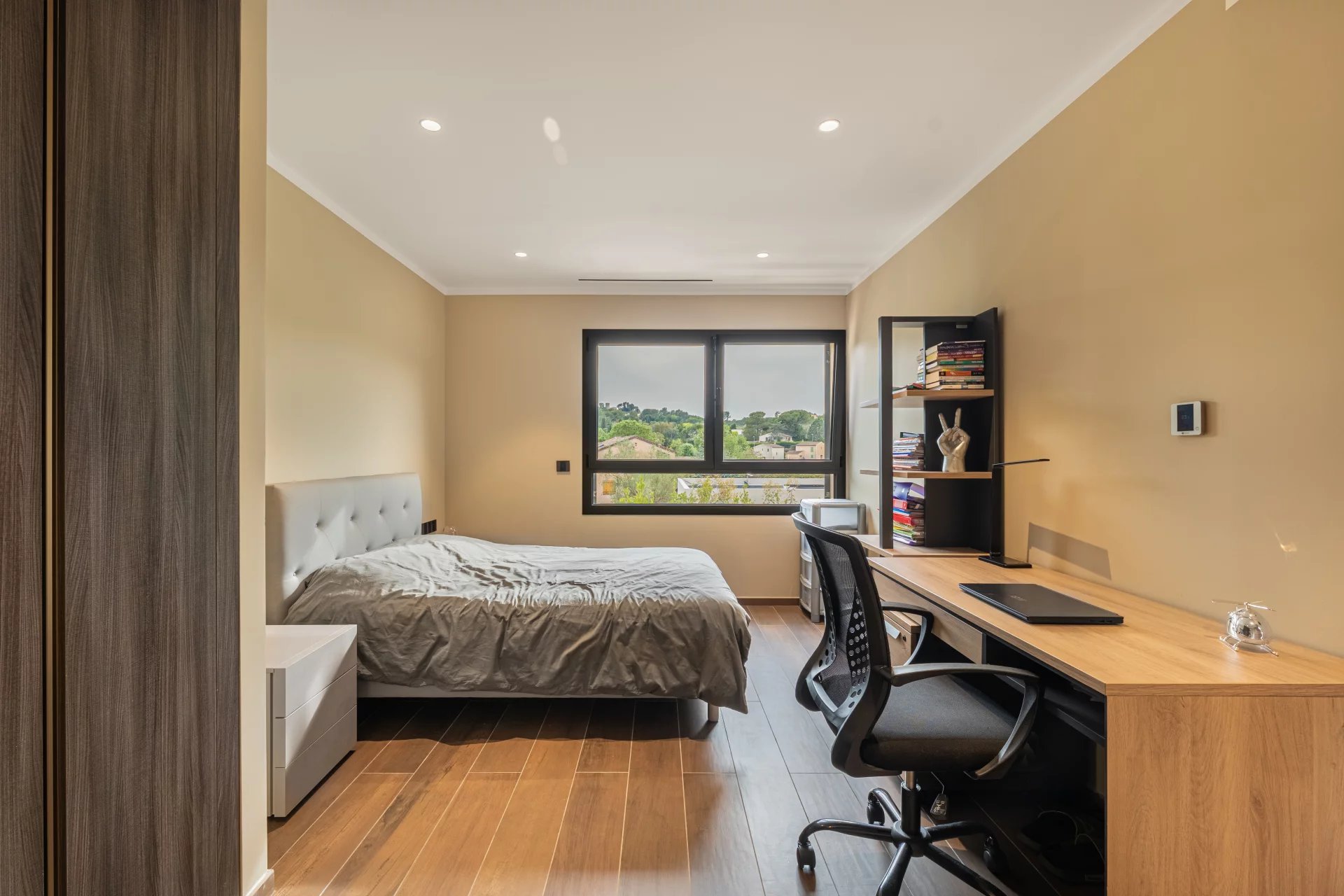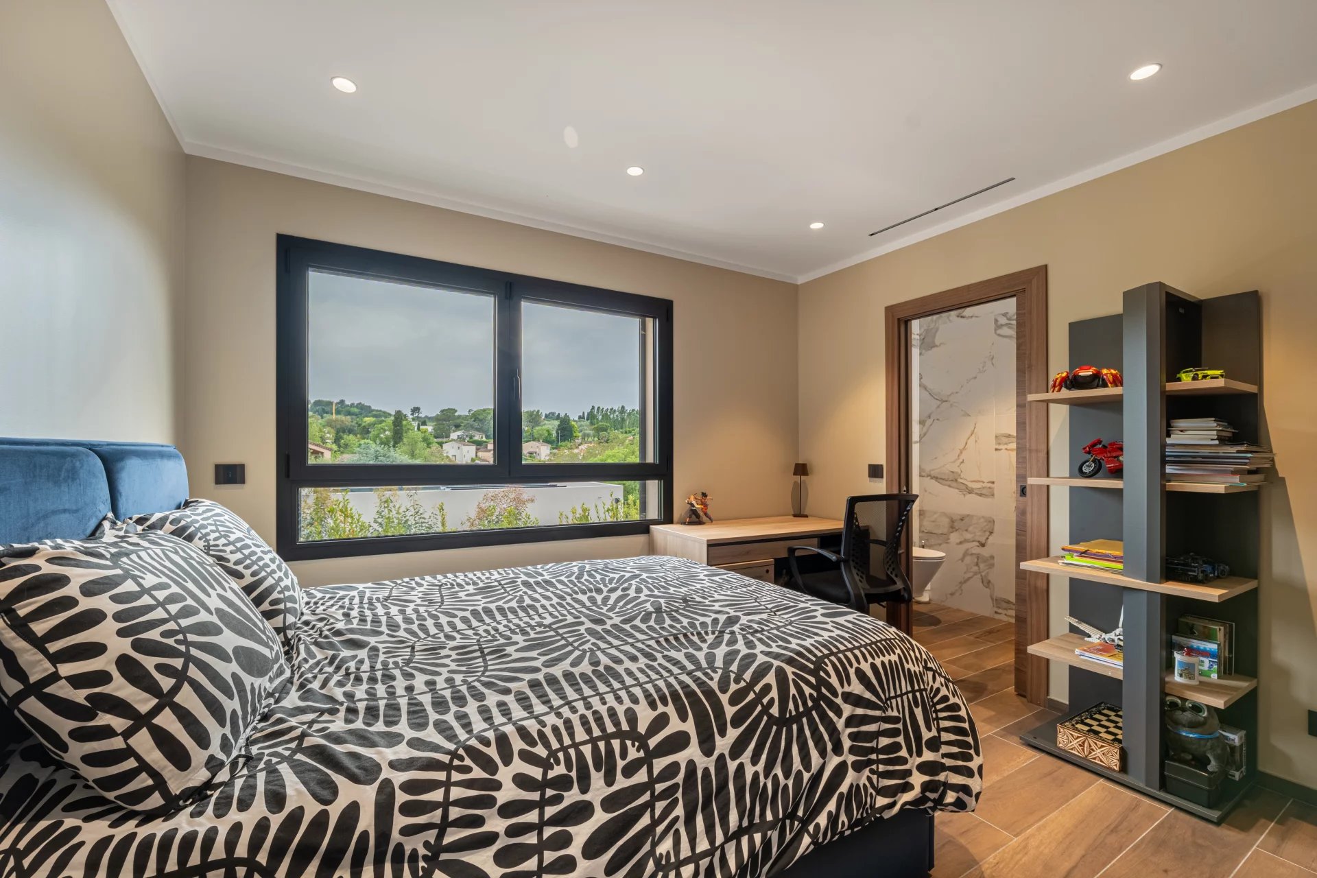 Ce niveau propose également une belle chambre avec salle de bain attenante ainsi qu’un WC invités, le tout sublimé par des volumes généreux et une grande luminosité.