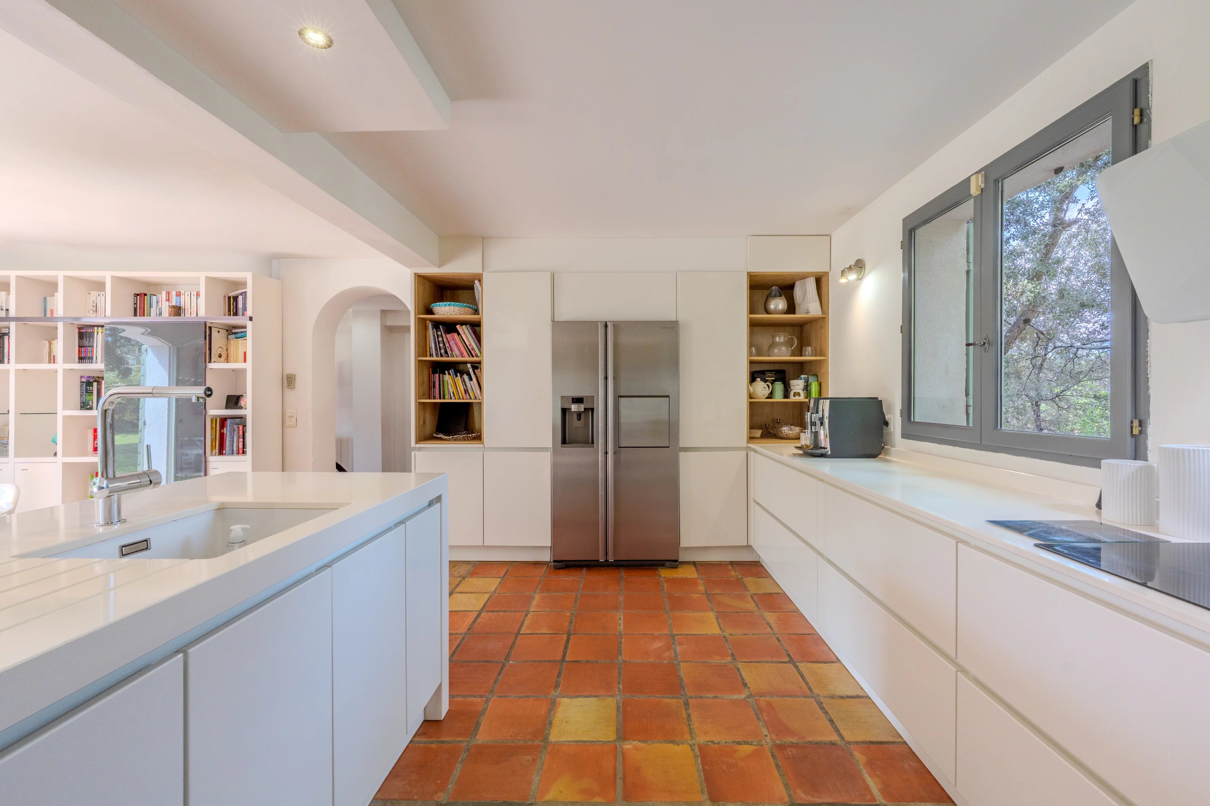 Pour les prestations, la villa bénéficie d’un chauffage au sol alimenté par une pompe à chaleur au rez-de-chaussée, ainsi que d’une climatisation réversible gainée pour un confort optimal en toute saison.