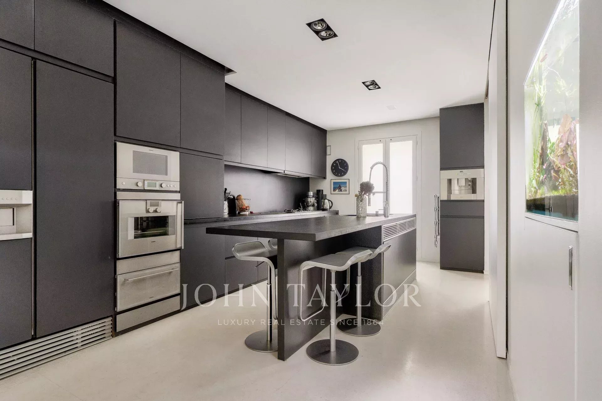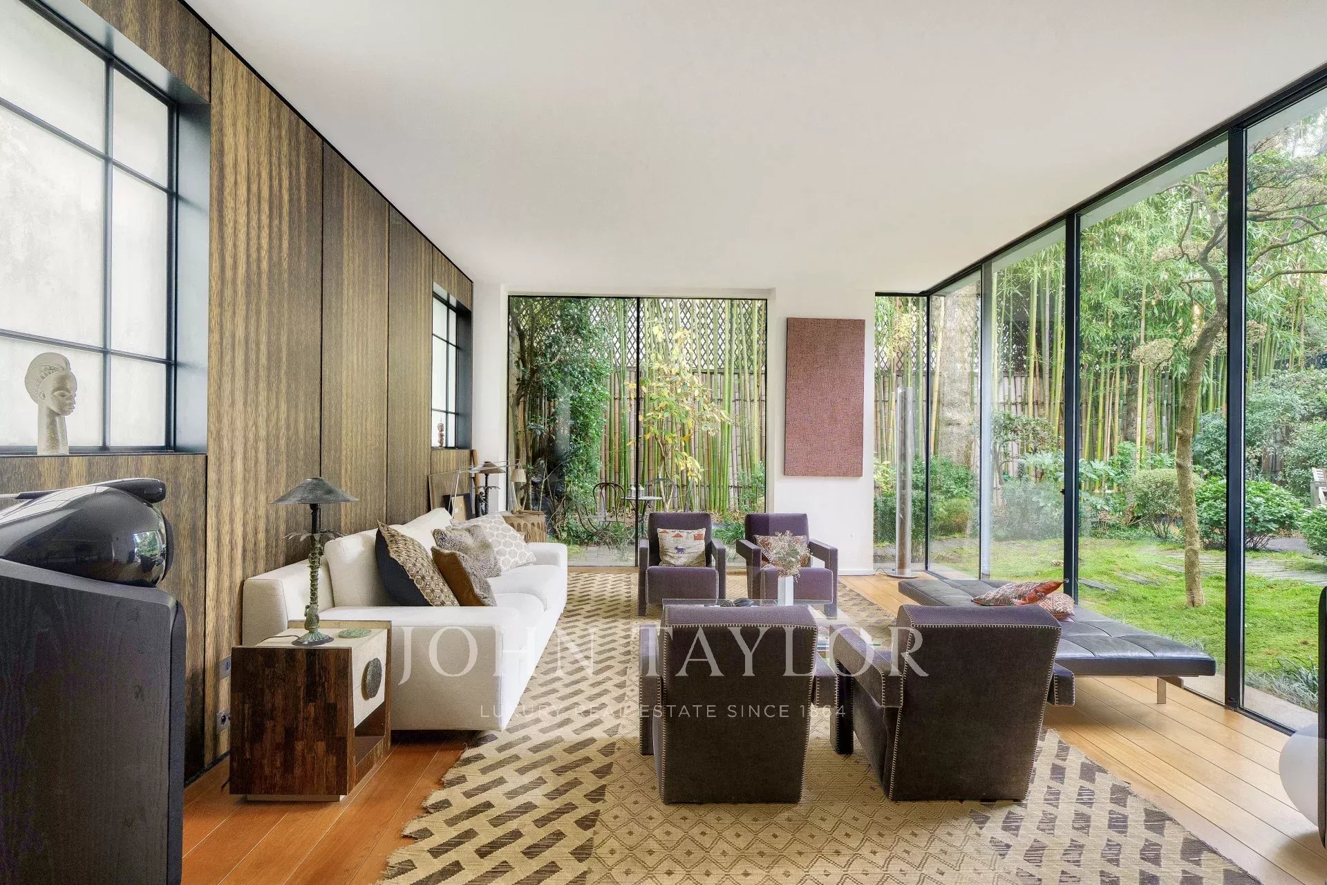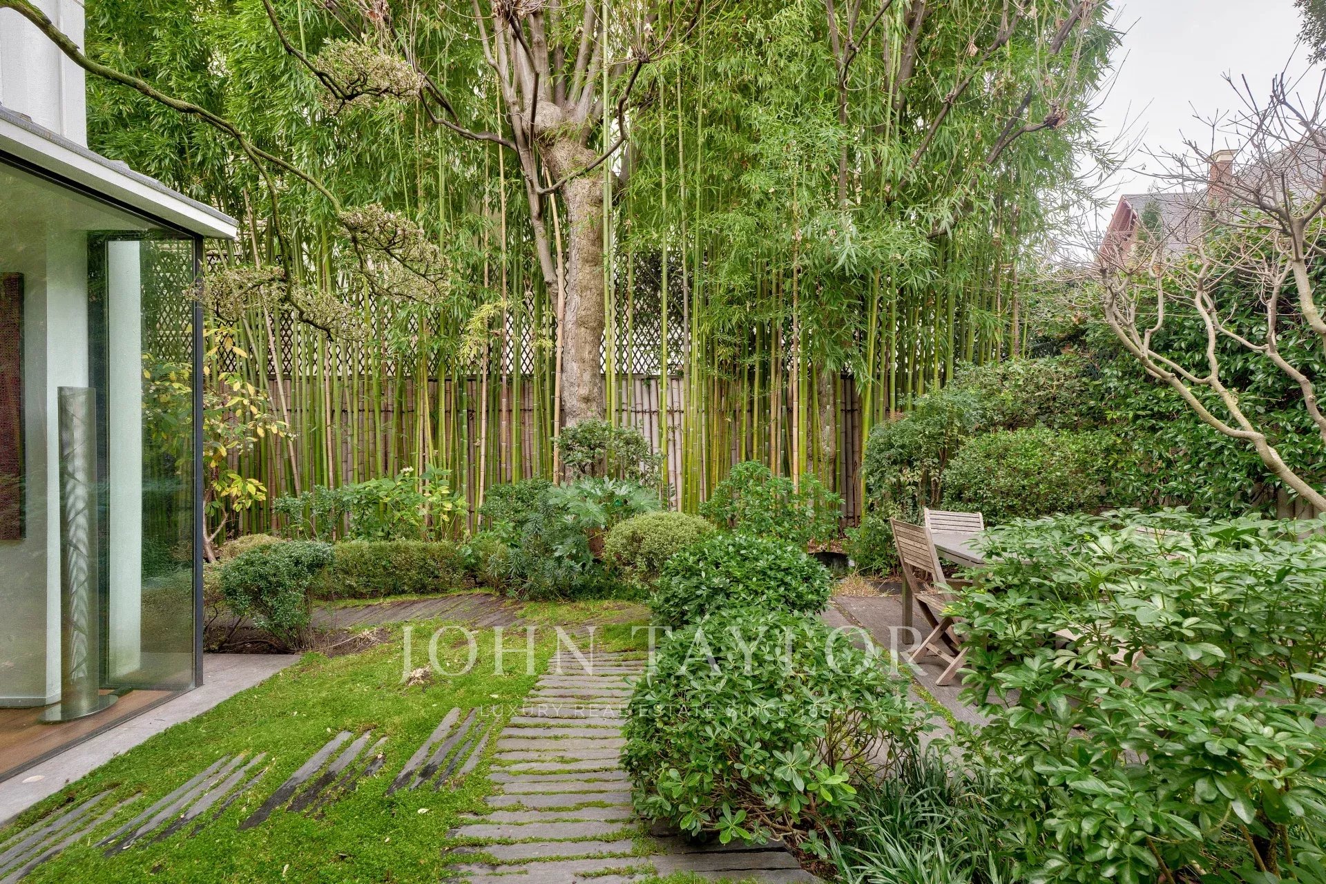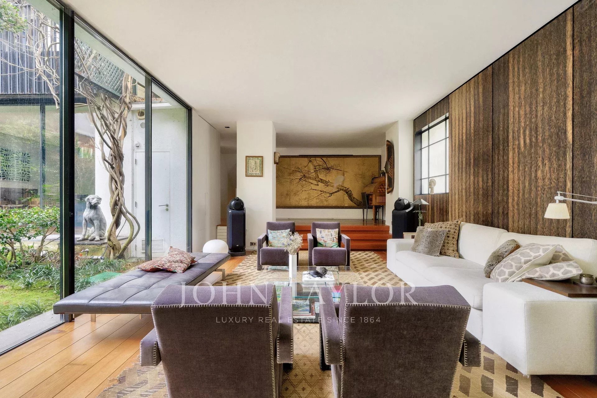 - Un vaste séjour / salle à manger ouvrant grâce à ses larges baies-vitrées sur un sublime écrin de verdure Japonisant : un travail d’'orfèvre, une oeuvre d’art enveloppant le lieu et lui donnant une intimité rare.