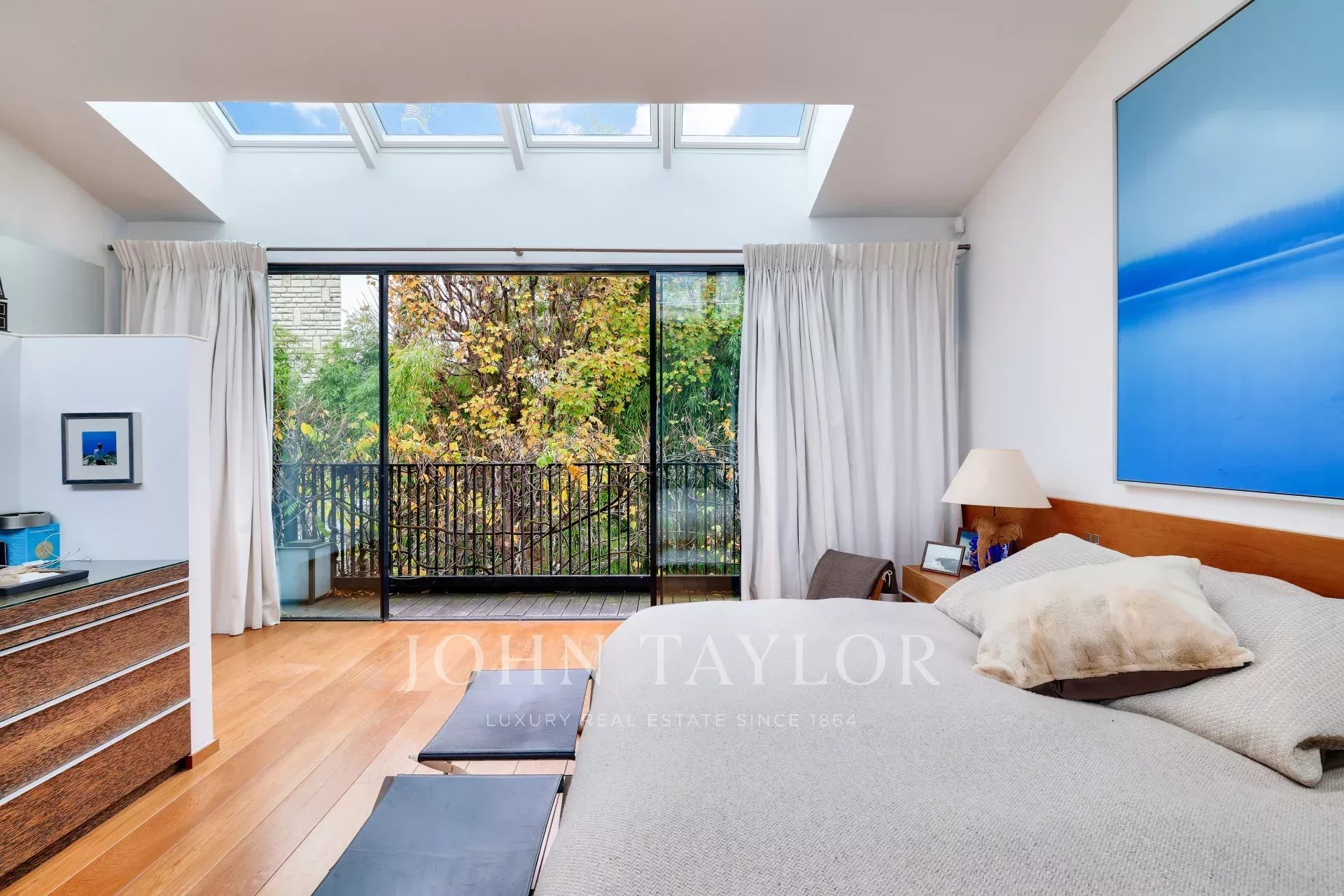 - Une impressionnante suite de Maître avec plus de 5m de hauteur sous plafond, balcon ouvrant sur le jardin