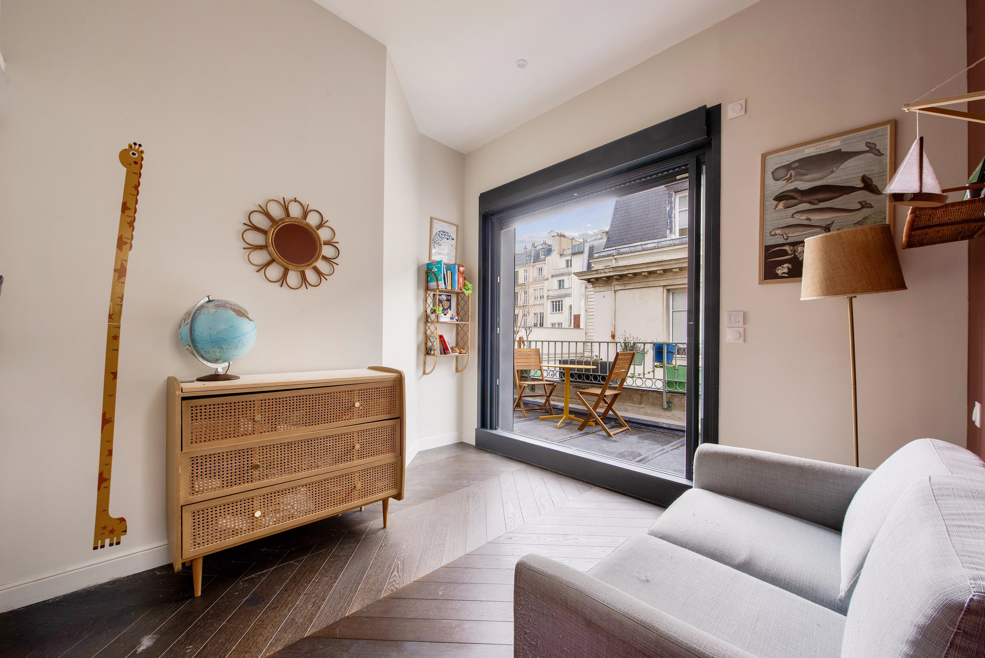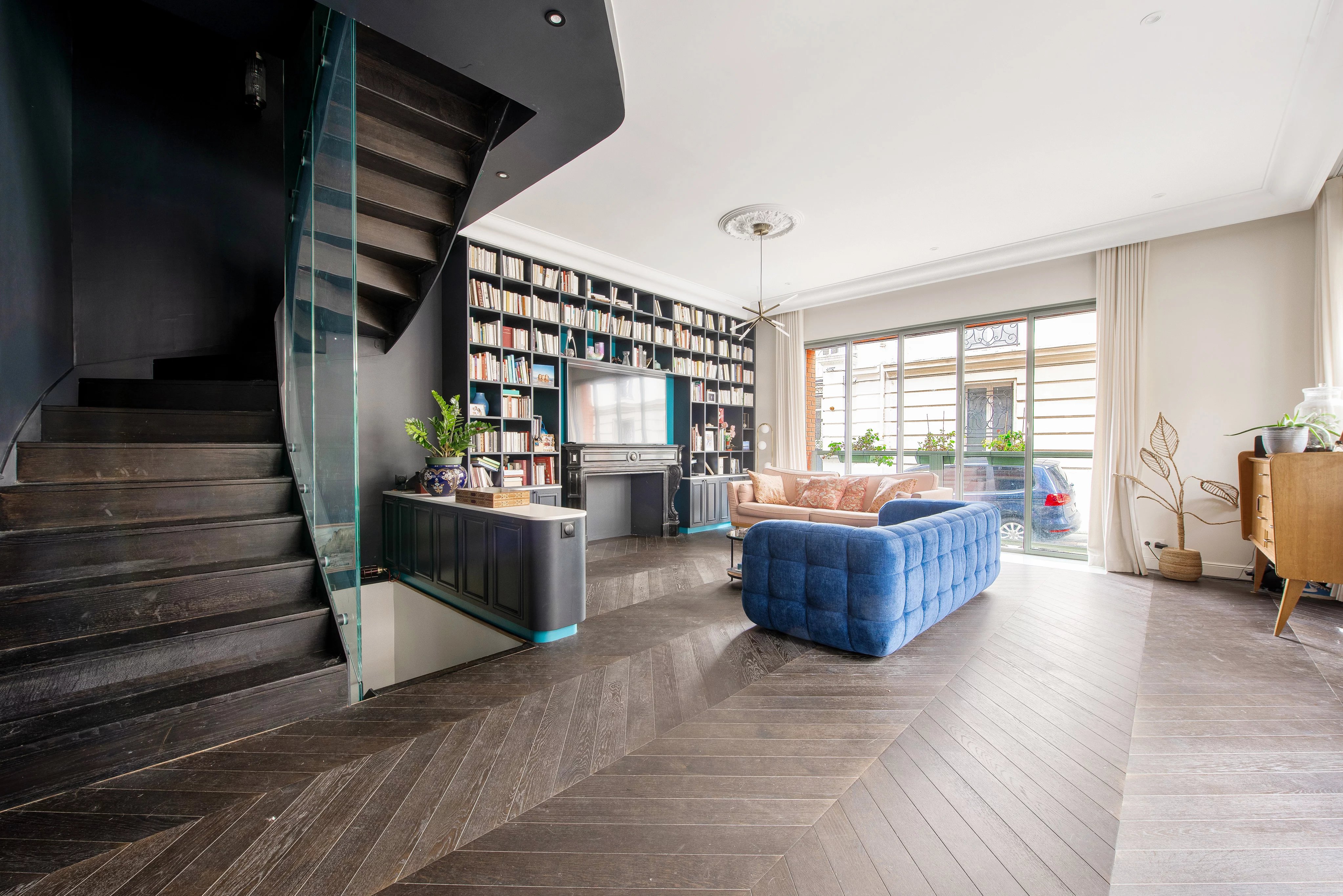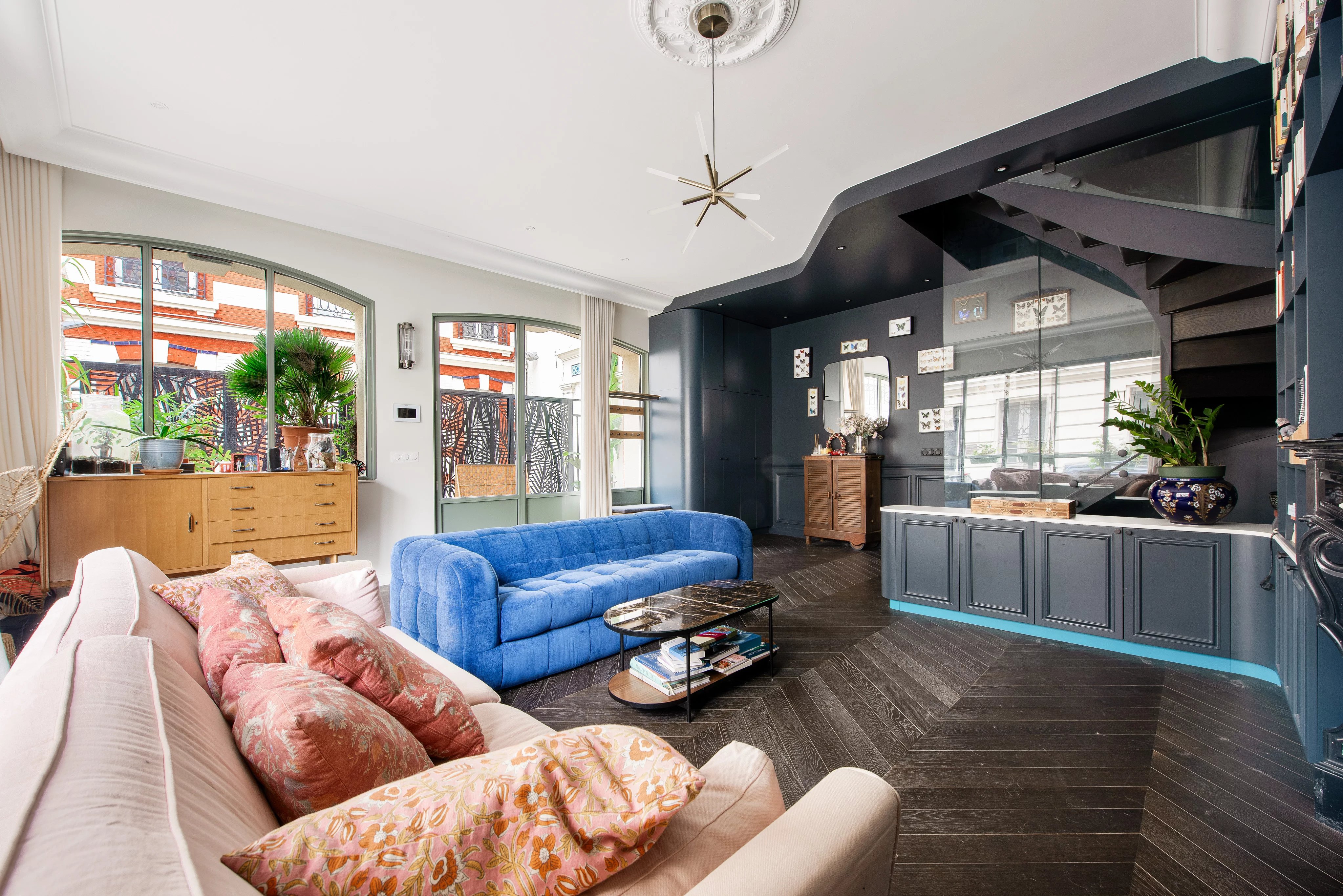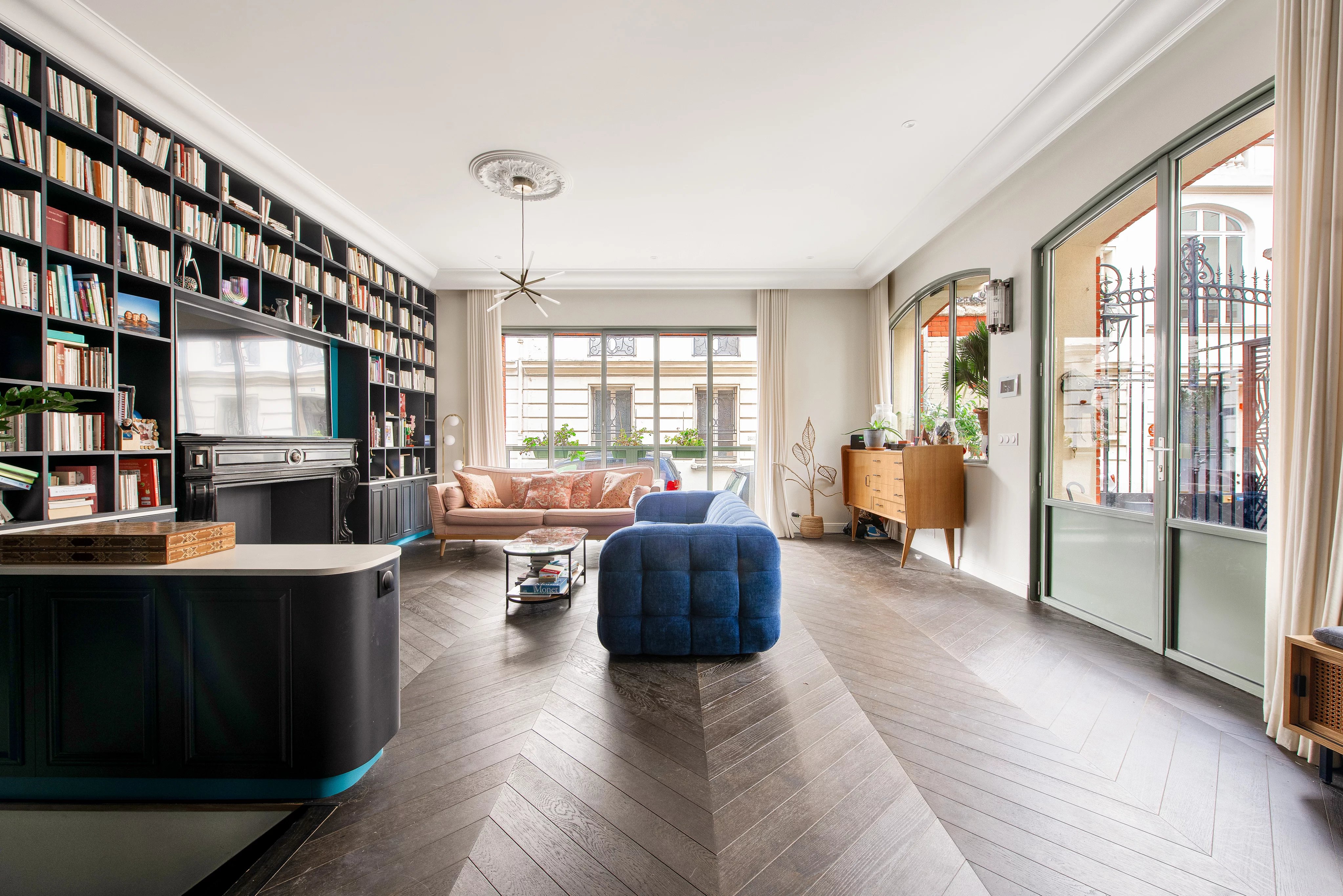 La propriété s’ouvre sur un bel espace de réception lumineux, prolongé par une cour privative de 30 m².