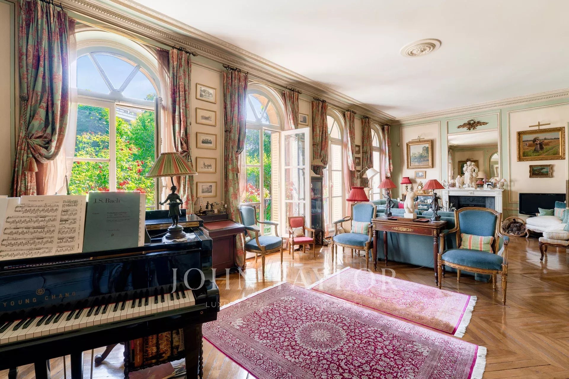 Nous vous proposons, un hôtel particulier traversant en pierre de taille de 1910, d'une surface d'environ 485m² répartis sur 4 niveaux. Représentant l'art de vivre à la française, vous profiterez de cette maison aussi bien lors de belles réceptions que pour une vie familiale. Ses volumes (3,30m hauteur sous plafond) et son agencement en font un bien rare sur le marché. Pour parfaire ce lieu préservé, un toit terrasse d'environ 124m², un jardin d'accès à la maison et une ravissante cour arborée dans le prolongement de la cuisine dinatoire.