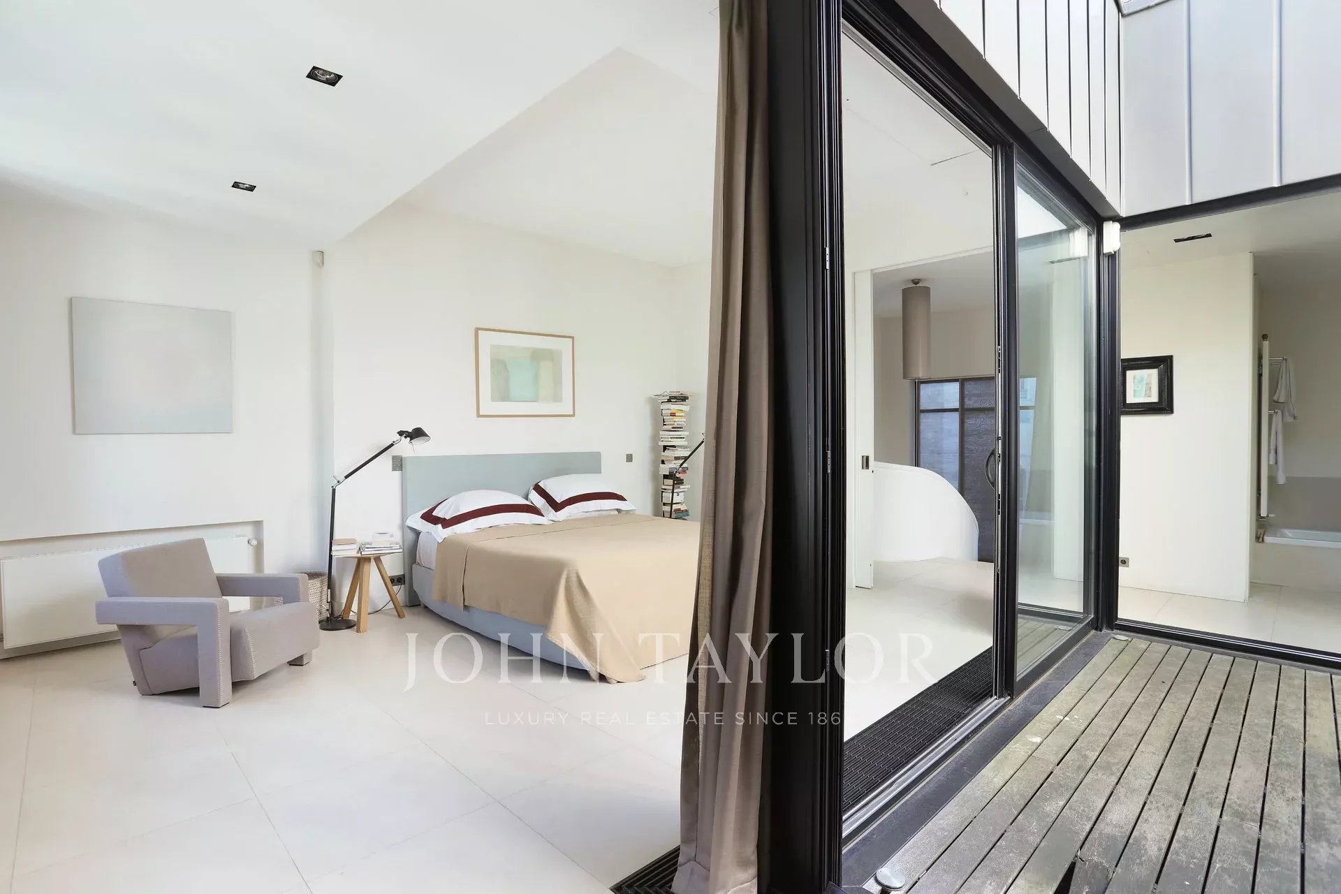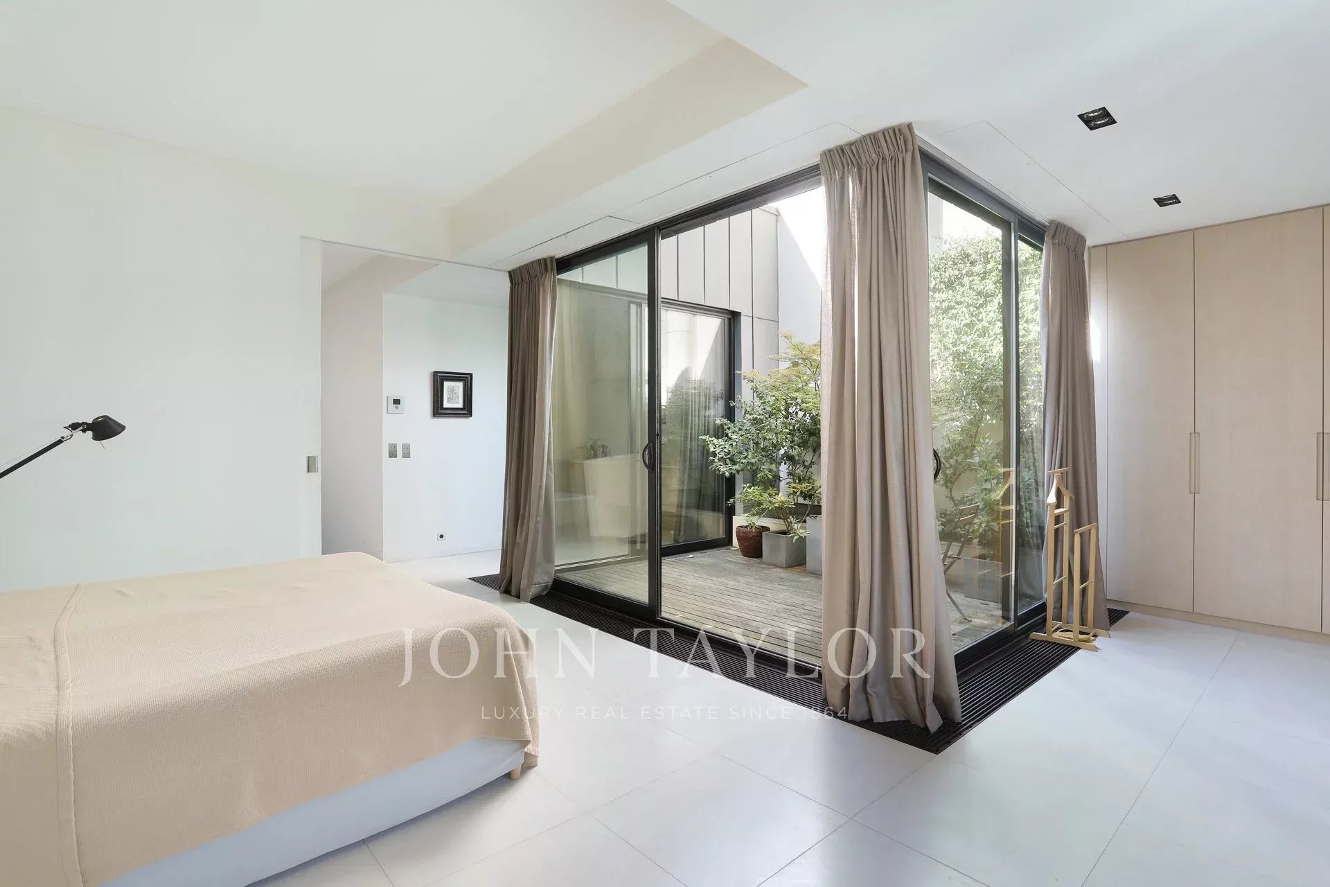 • Au dernier étage, la suite de maître offre un véritable écrin de sérénité, prolongé par un jardin d’hiver ouvrant sur une terrasse arborée, rare privilège au cœur de Paris.