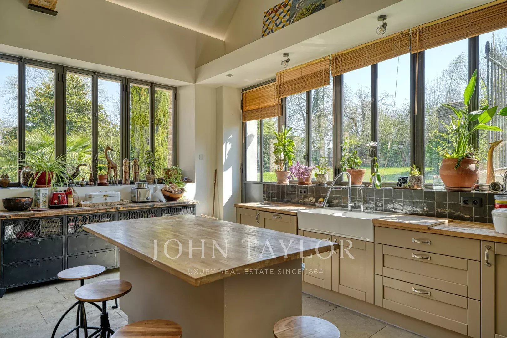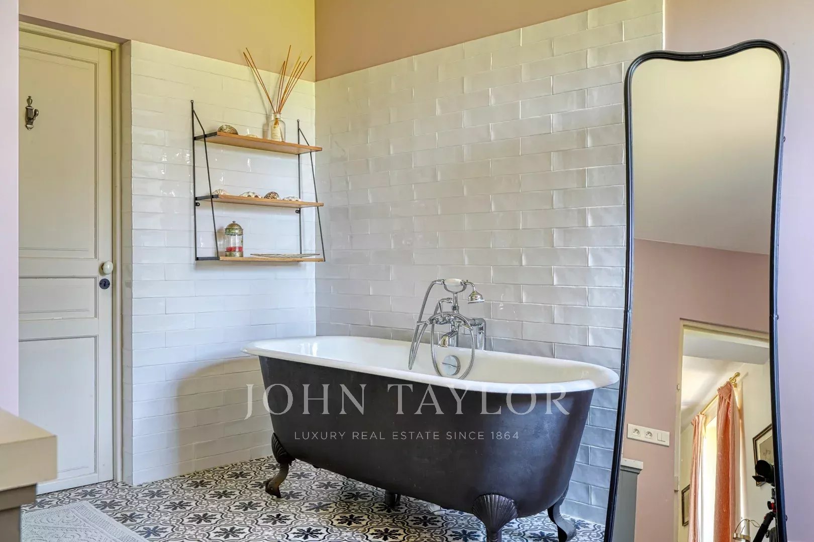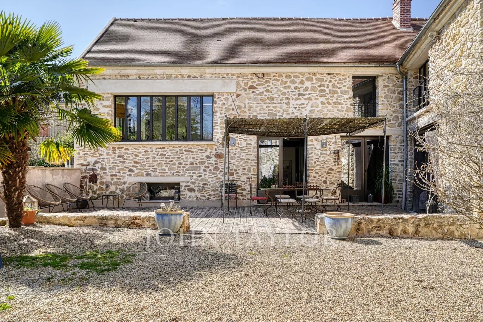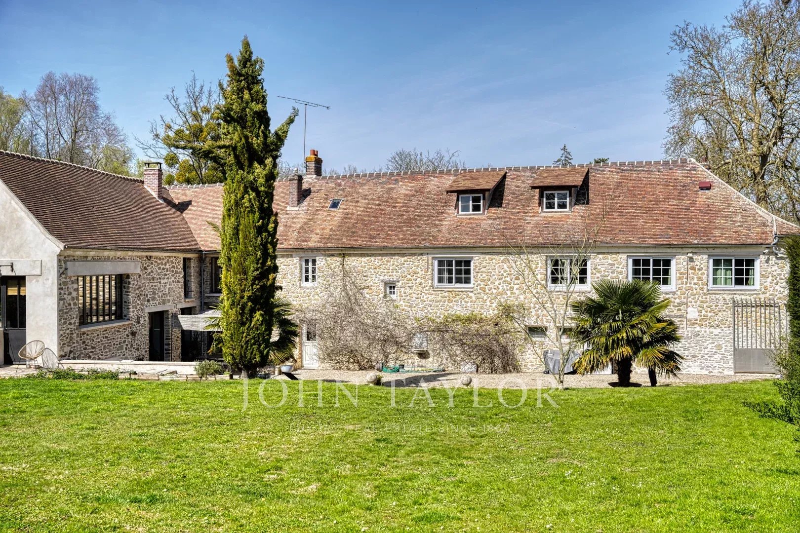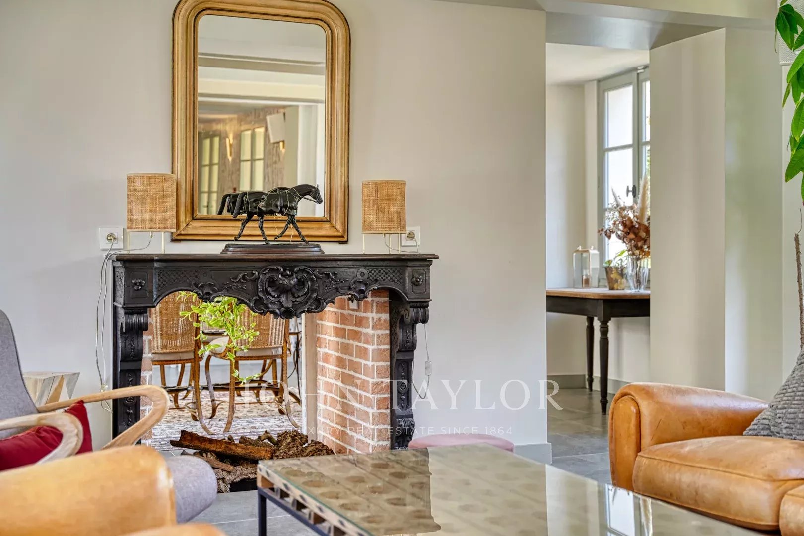 Au cœur de la demeure, une vaste salle de réception de 160 m² s’ouvre sur une terrasse de 300 m², orientée vers le parc doté d’une piscine chauffée et d’un terrain de tennis.