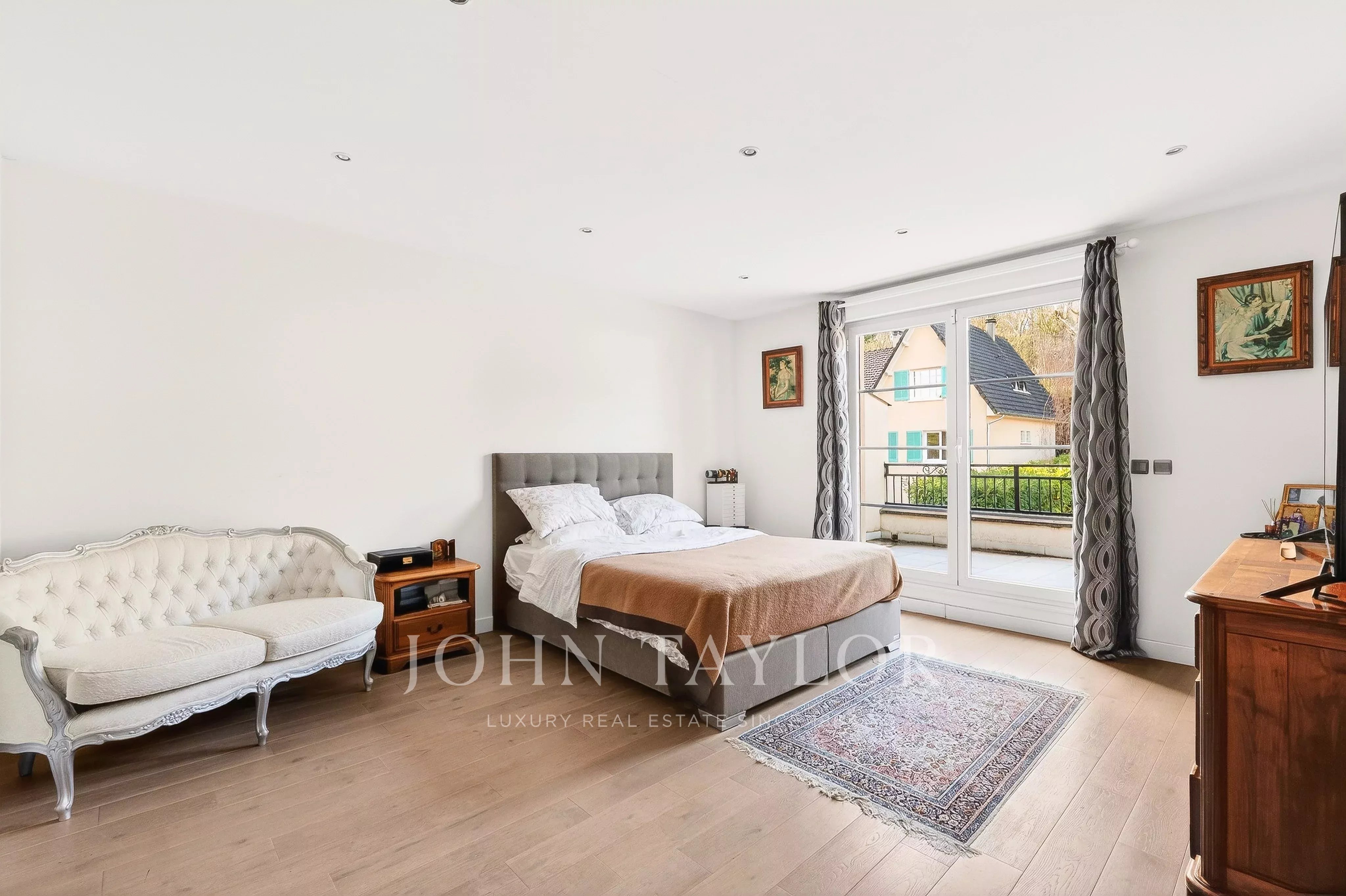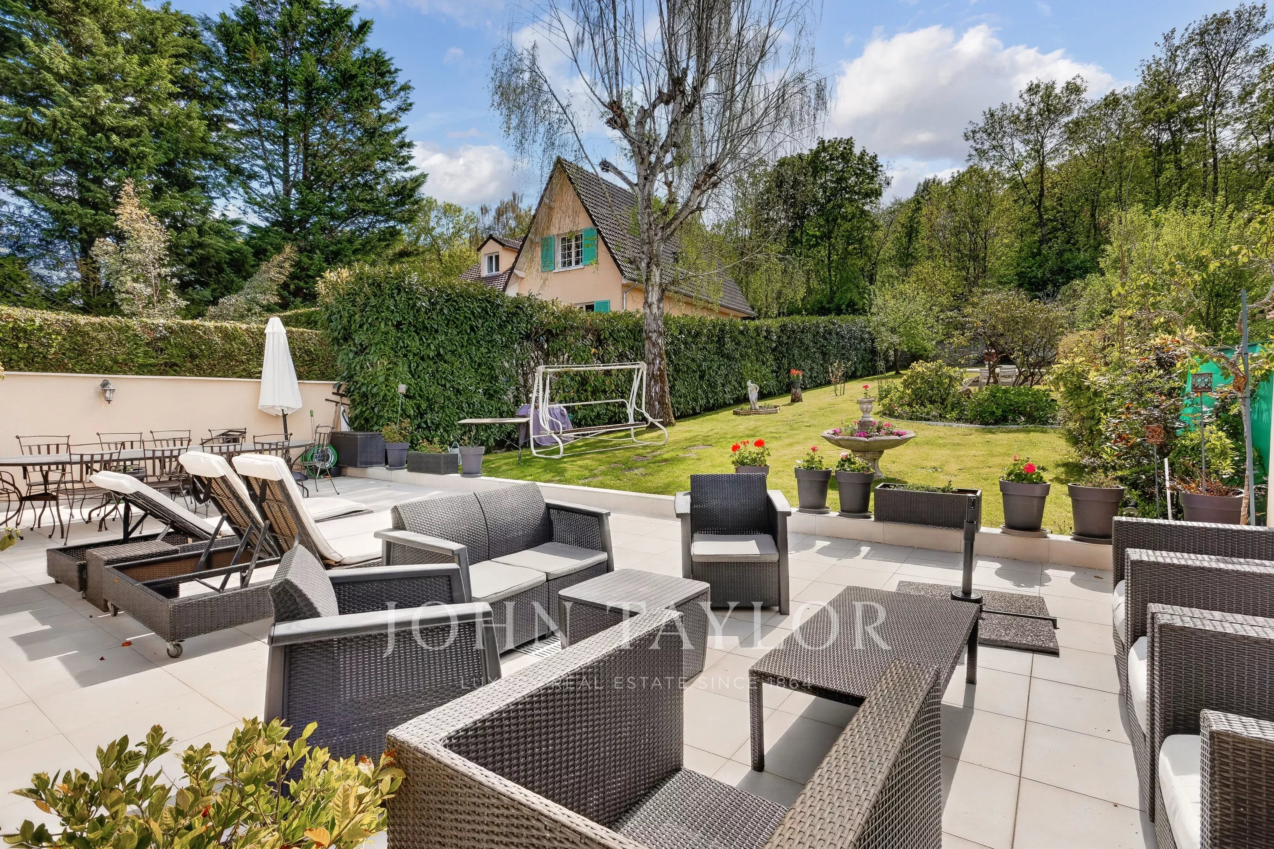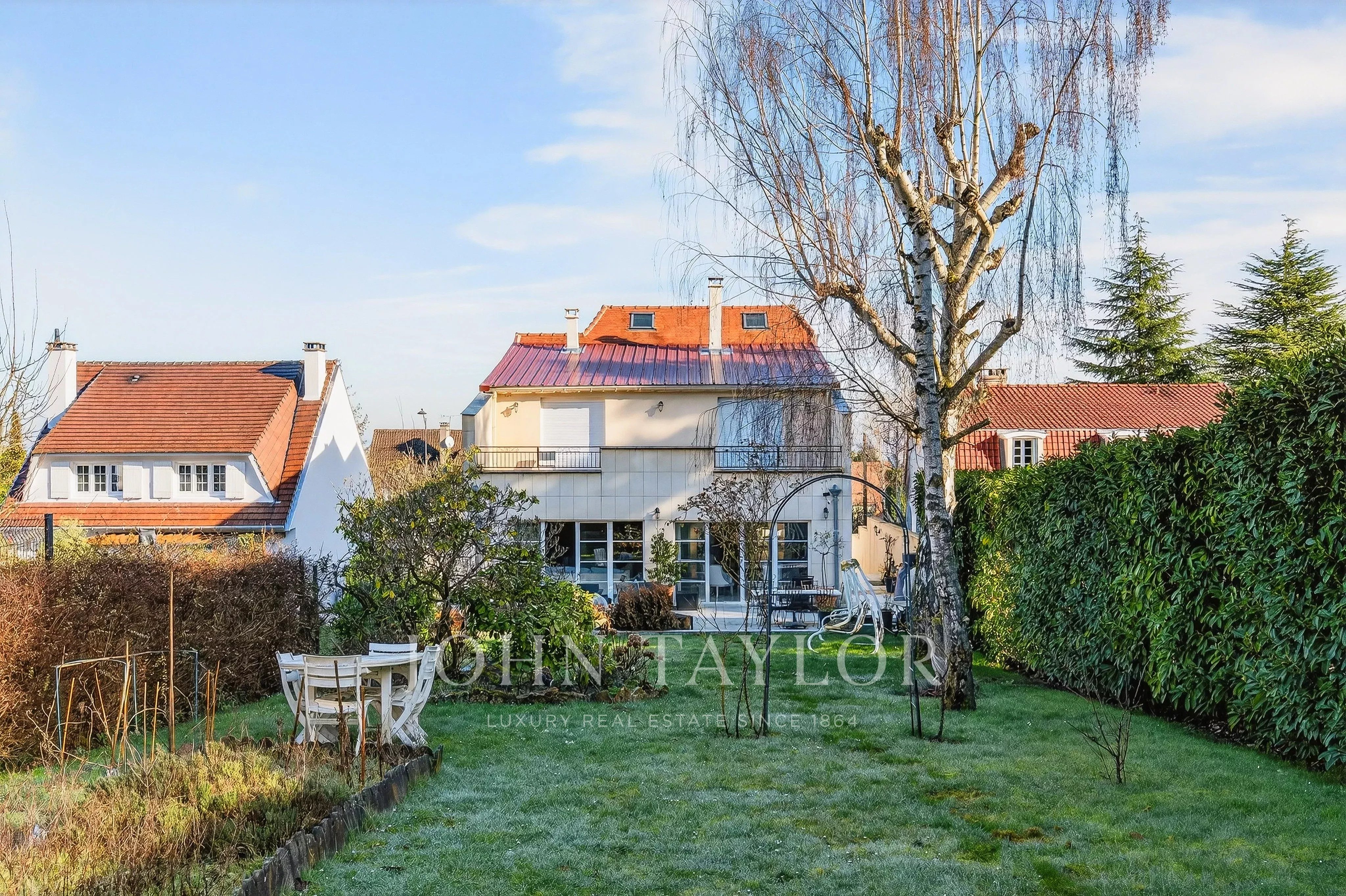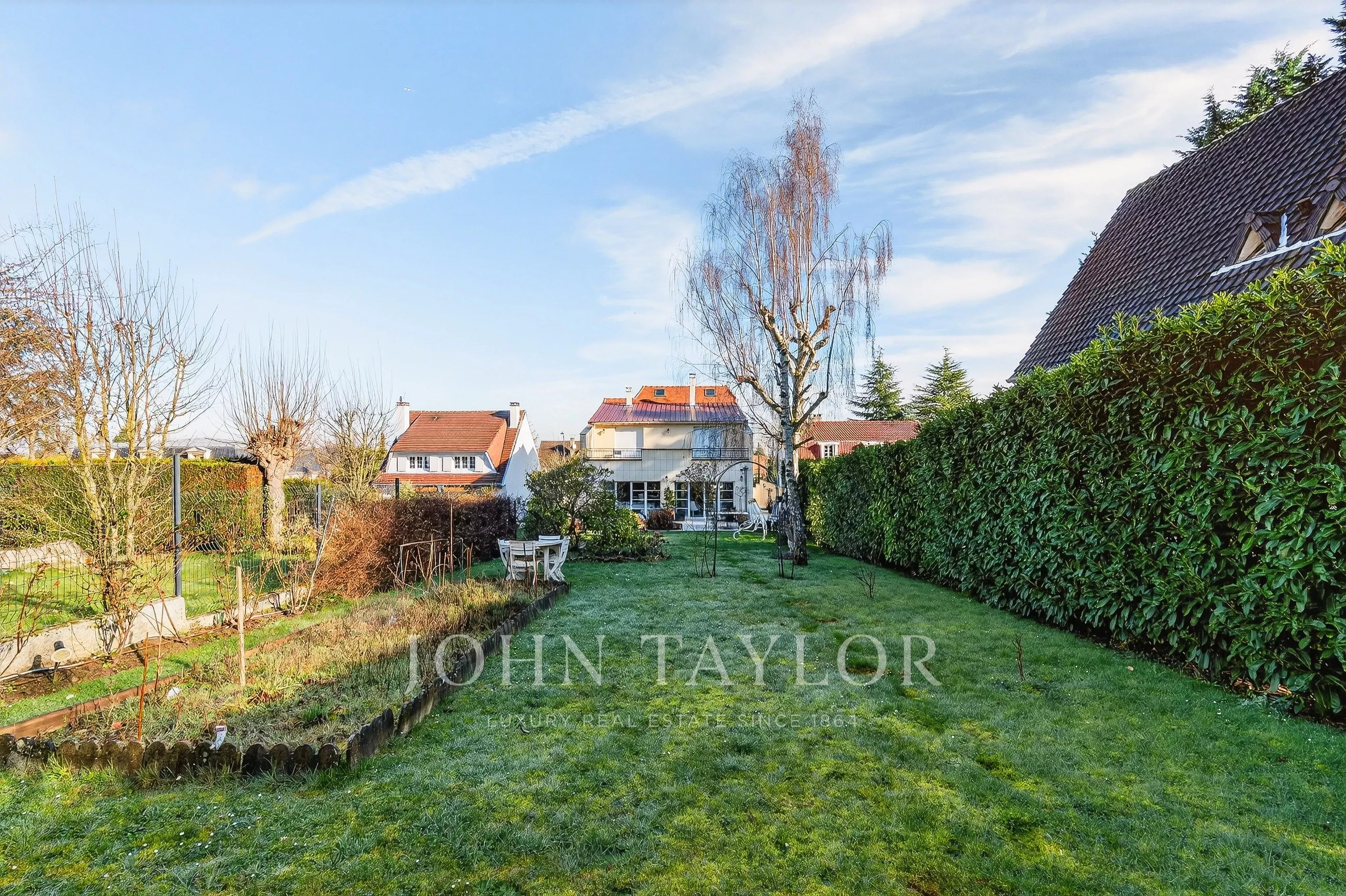 Sur les hauteurs de Rueil-Malmaison, en lisière immédiate de la forêt domaniale et à proximité des meilleurs établissements scolaires du secteur, cette élégante maison familiale développe environ 400 m² au cœur d’un terrain paysager de plus de 1 000 m².