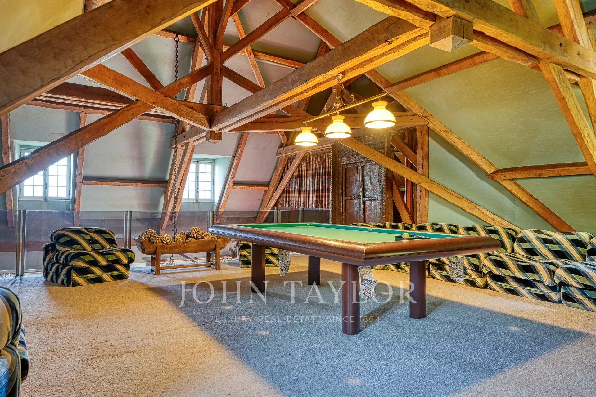 Avec ses volumes généreux et son ambiance chaleureuse, elle dispose de plusieurs salons et pièces de réception, dont un séjour cathédrale sublimé par une charpente réalisée par les Compagnons du Devoir. La maison offre également 6 chambres confortables, toutes avec leur propre salle de bain privative, dont une suite en rez-de-chaussée.