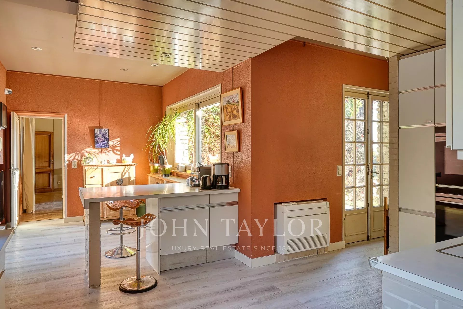 De grandes baies vitrées permettent de profiter pleinement de la beauté du parc. Le niveau inférieur, bien qu'aménagé comme un sous-sol, bénéficie en réalité d'un accès en rez-de-jardin, offrant ainsi de nombreuses possibilités d'aménagement (salle de sport, piscine intérieure, salle de cinéma...)