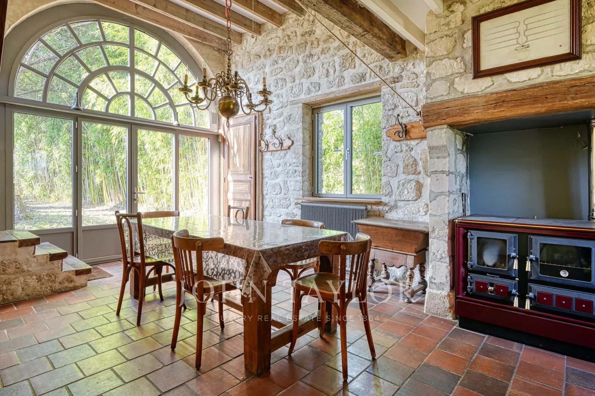 Une piscine vient compléter ce cadre exceptionnel au cœur d’un parc arboré.