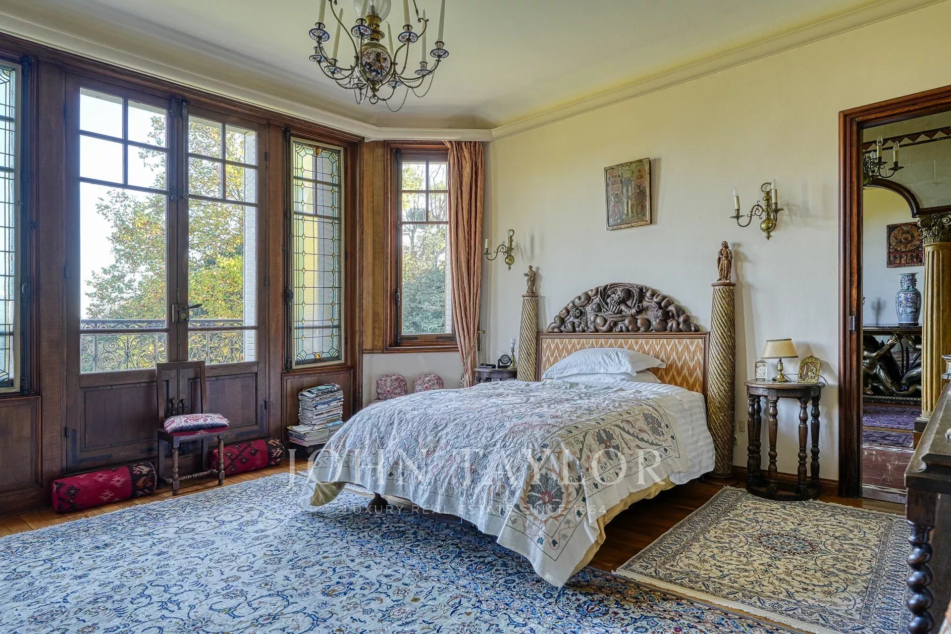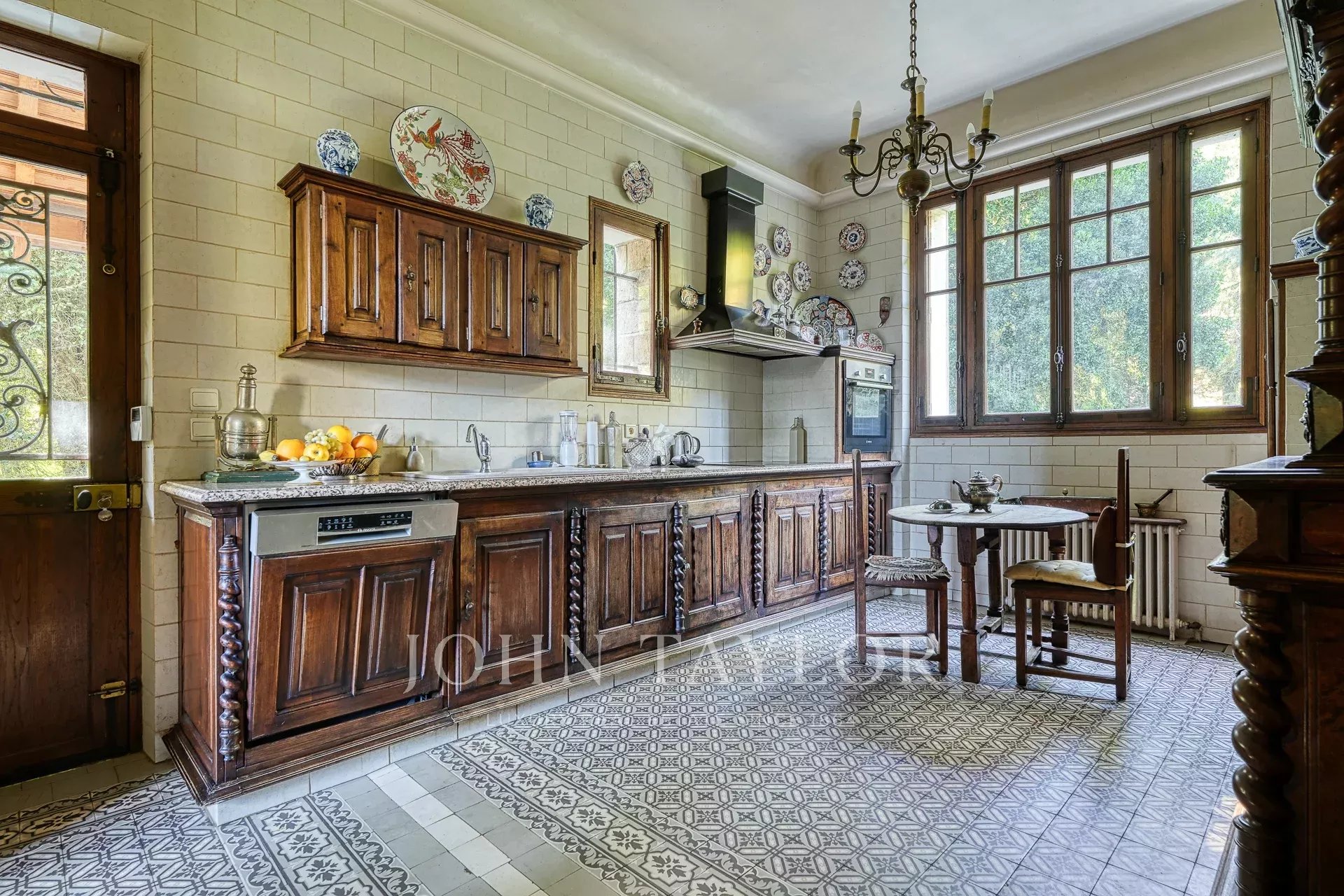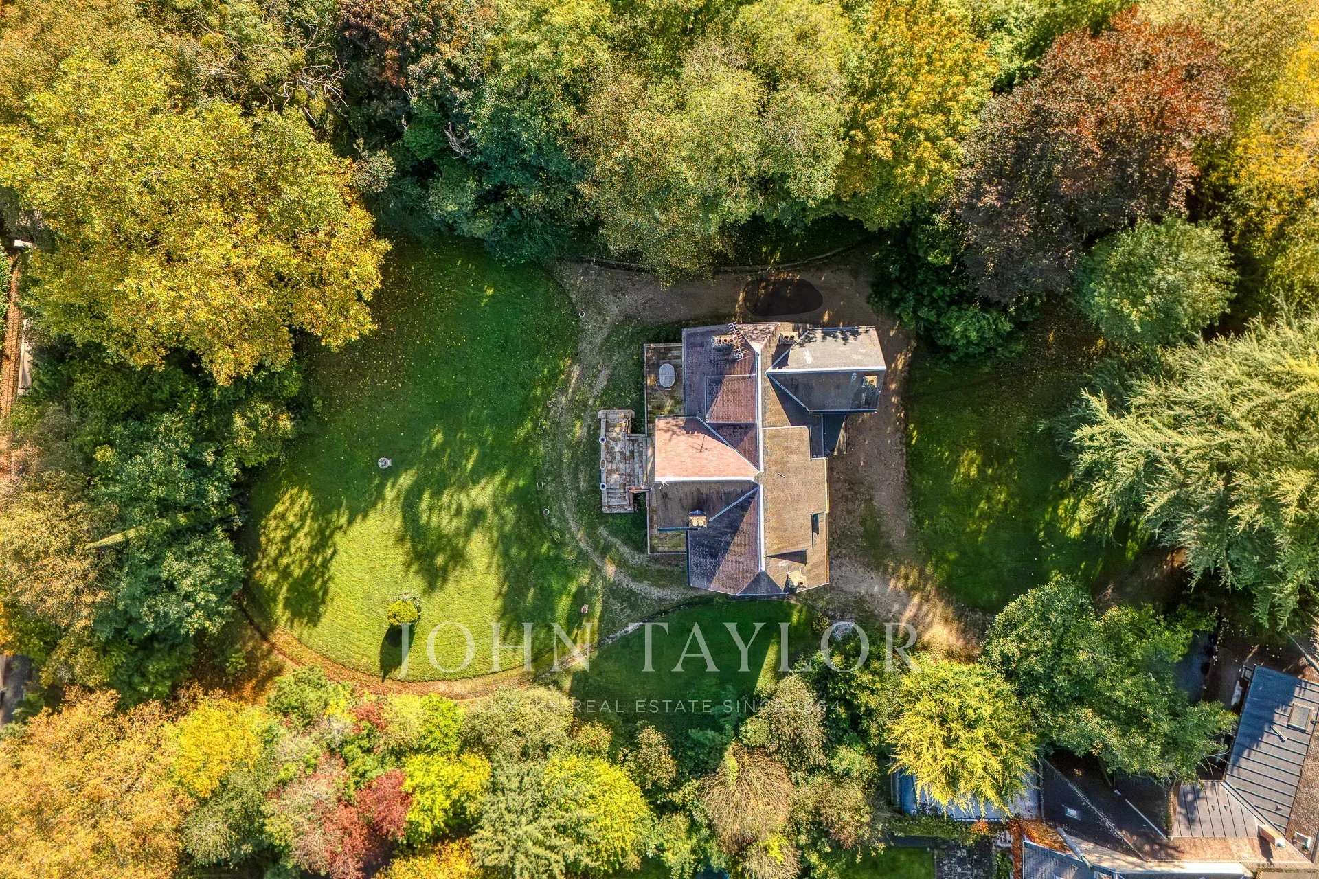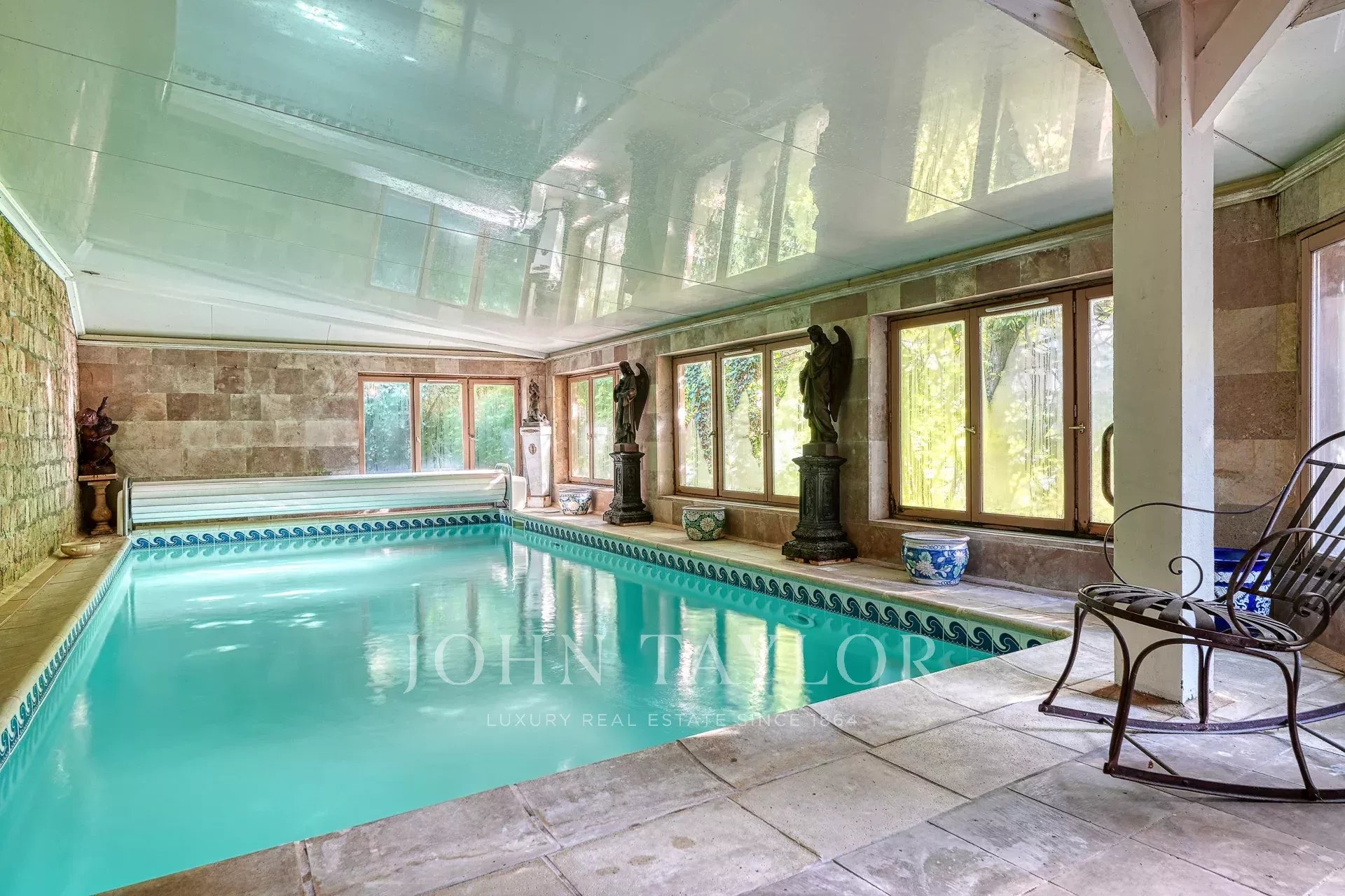 La propriété comprend également deux dépendances : une maison de gardien à l'entrée, et une grande annexe avec logement indépendant et piscine intérieure chauffée.