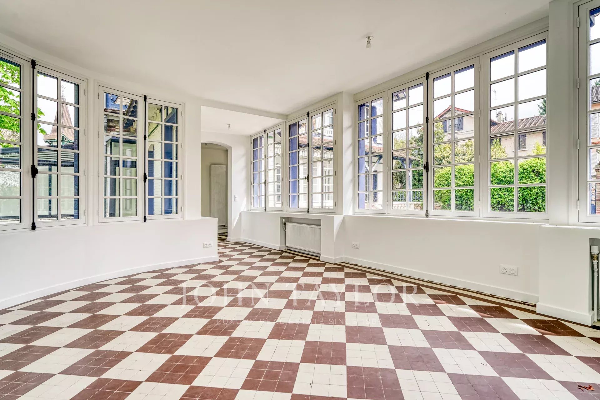 Située à Chennevières-sur-Marne, en bord direct de la Marne, cette propriété bénéficie d’un emplacement rare où l’eau et la végétation créent une atmosphère particulièrement paisible. À l’abri des regards et implantée au cœur d’un parc paysager d’environ 1 500 m², elle profite d’un environnement naturel ouvert sur la rivière.