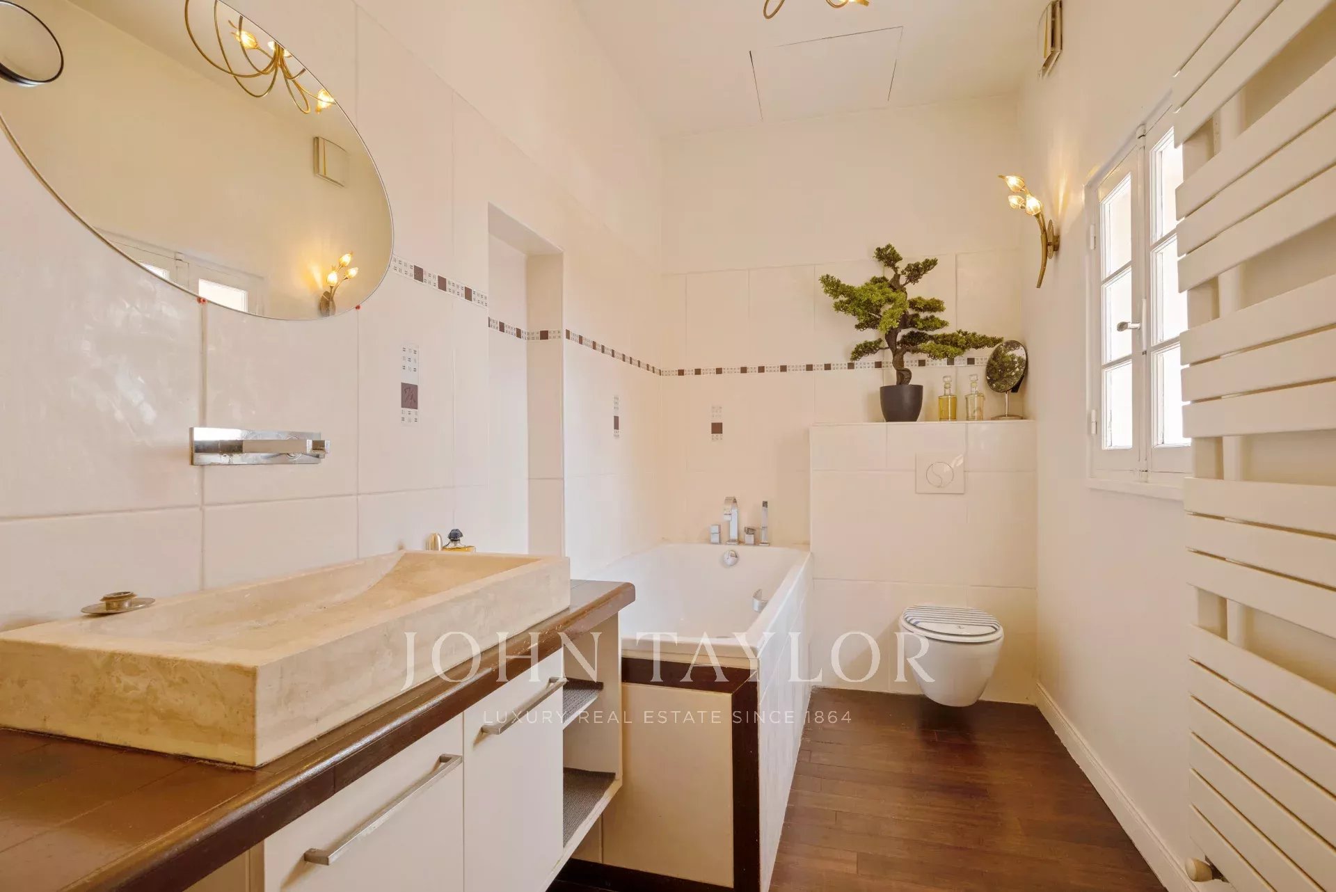 Au rez-de-chaussée, cette bastide se déploie sur un grand séjour lumineux avec cheminée et belle hauteur sous plafond (3,5m,) donnant sur une grande terrasse ensoleillée. Attenant au salon on y trouve une spacieuse salle à manger et une cuisine fraîchement rénovée.
