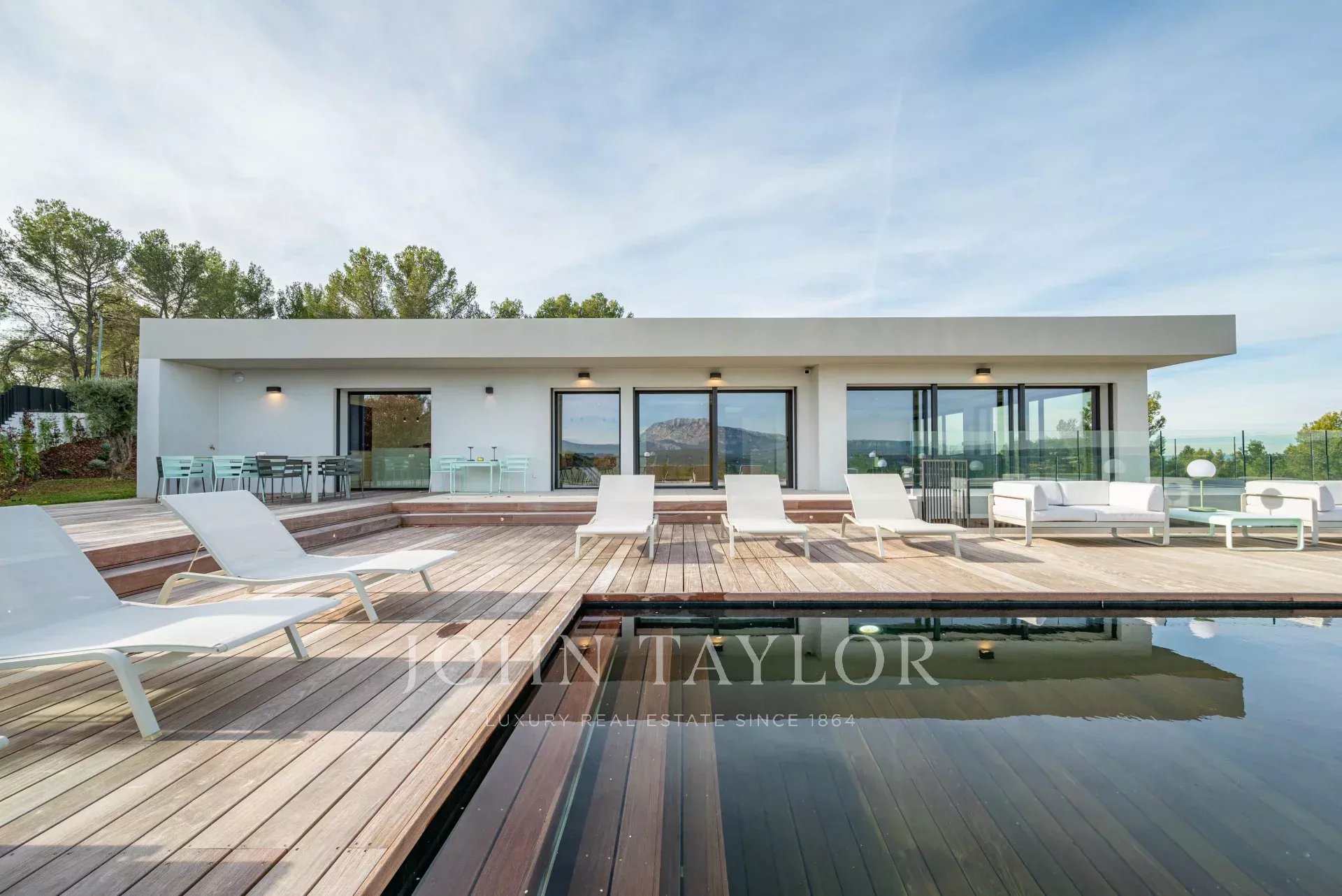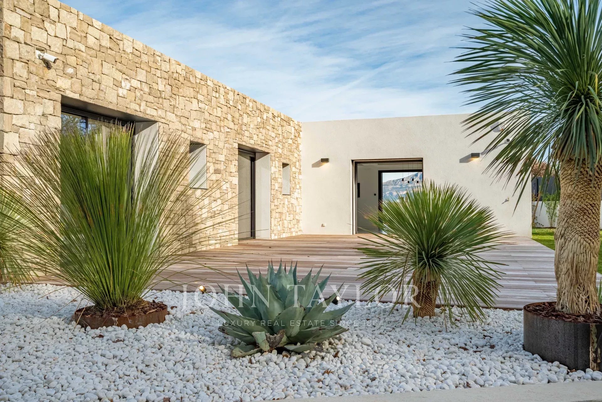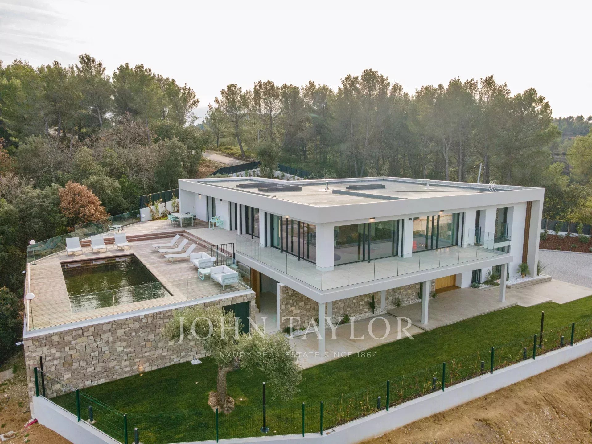 Votre agence immobilière de Prestige John Taylor a le plaisir de vous présenter à la vente une somptueuse propriété contemporaine neuve, située dans un écrin de verdure protégé à seulement 10 minutes du centre historique d’Aix-en-Provence.