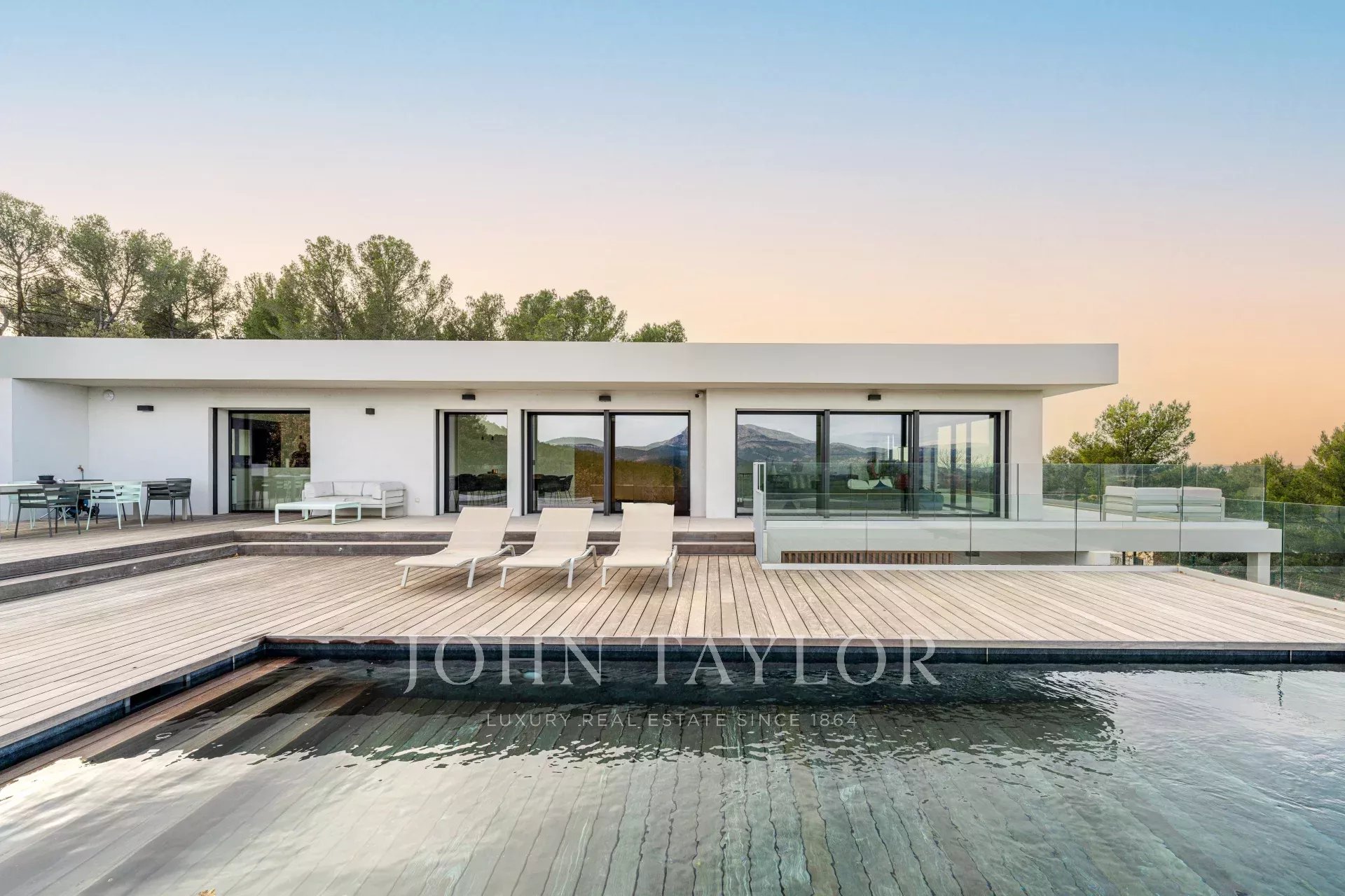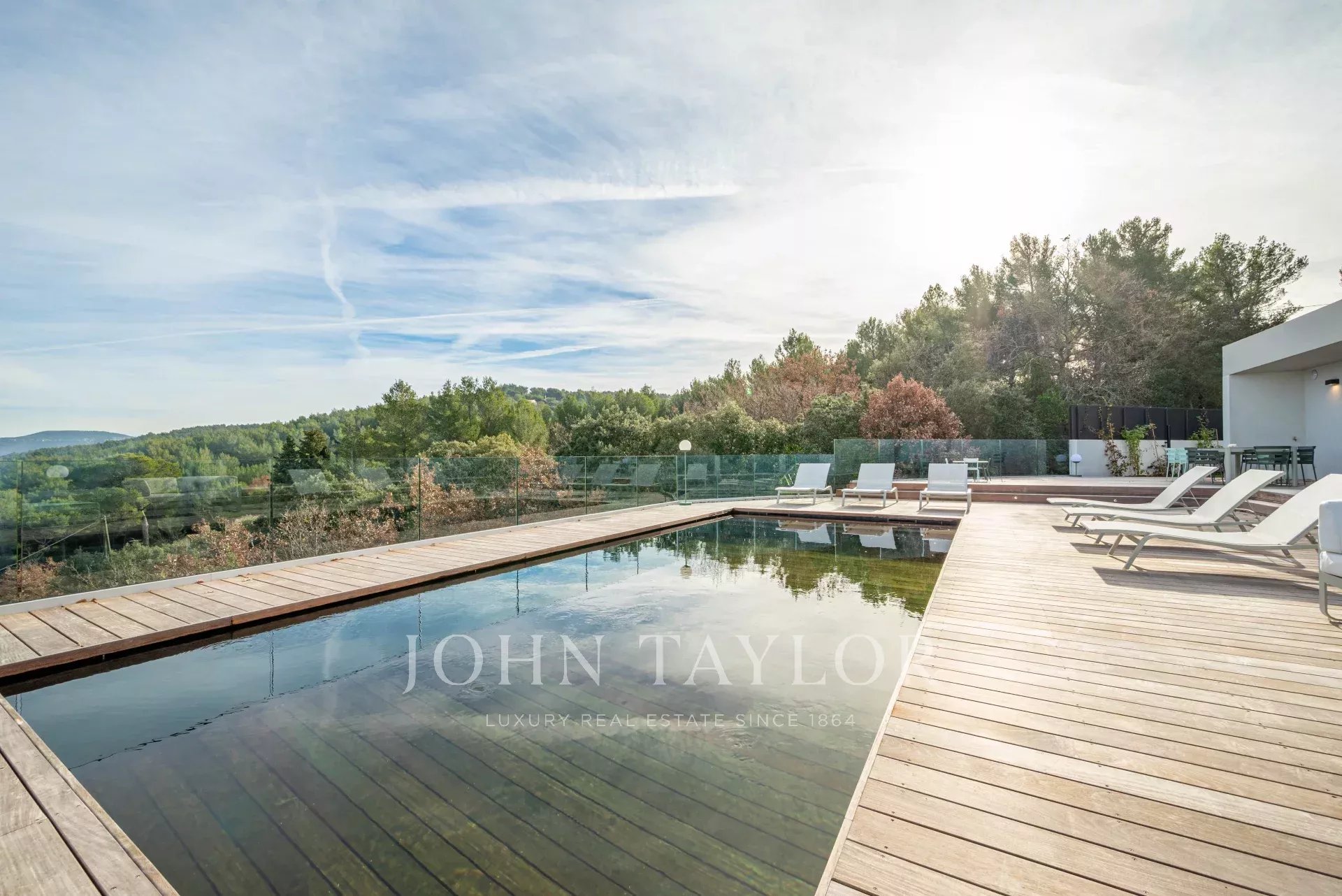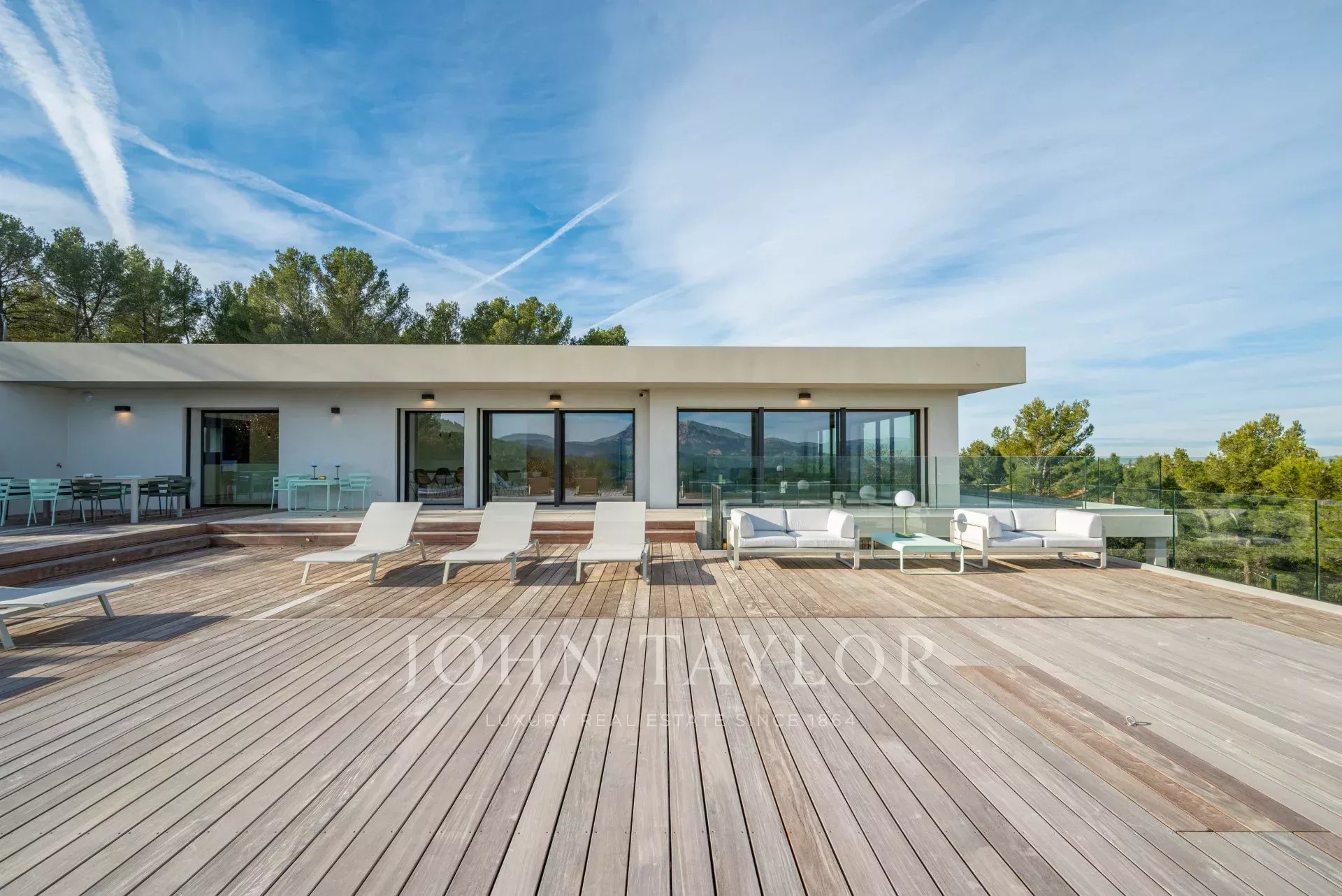 Votre agence immobilière de Prestige John Taylor a le plaisir de vous présenter à la vente une somptueuse propriété contemporaine neuve, située dans un écrin de verdure protégé à seulement 10 minutes du centre historique d’Aix-en-Provence.