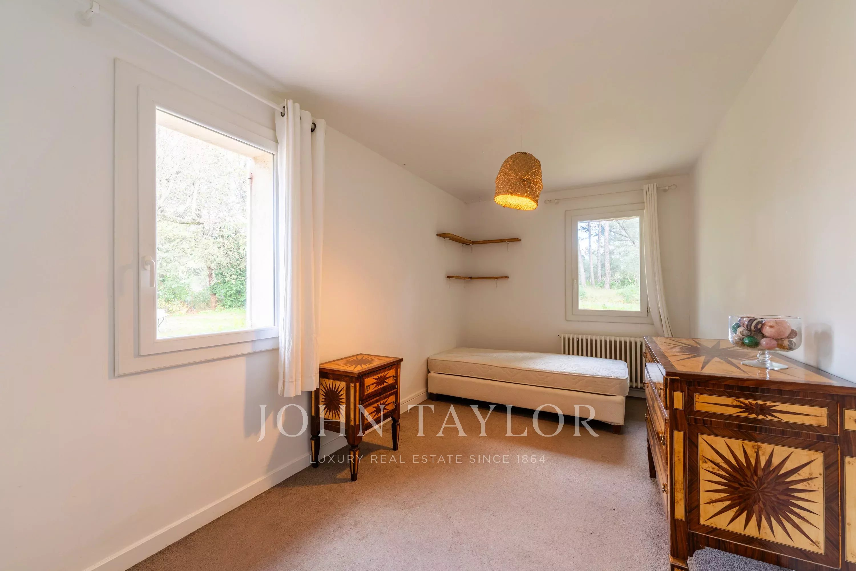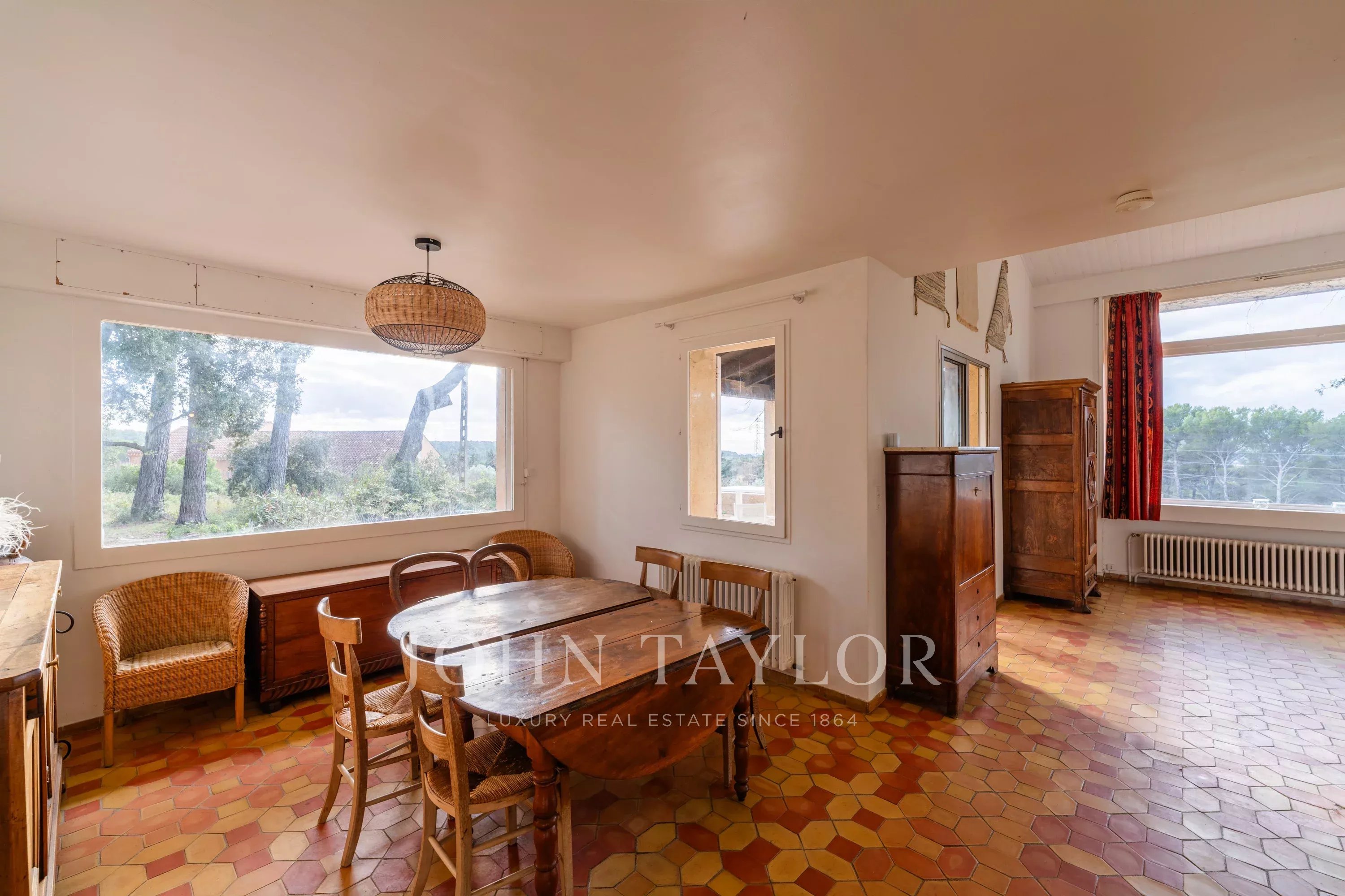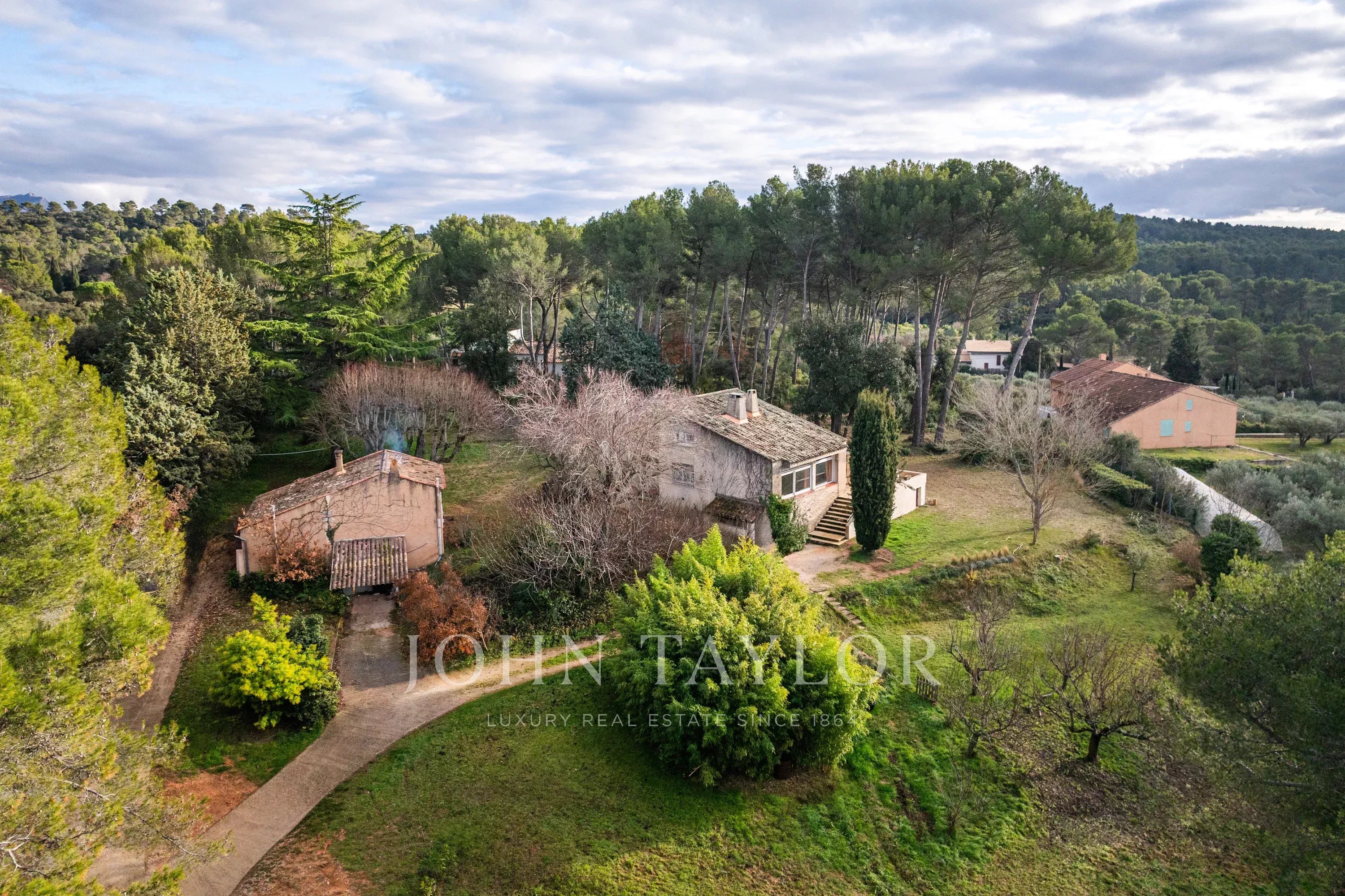 Votre agence immobilière de prestige John Taylor a le plaisir de vous présenter à la vente une propriété située dans le quartier très recherché des Pinchinats, dans un environnement naturel exceptionnel. Implantée sur un terrain clos et arboré de 6 400 m², agrémenté de pins et de chênes, elle offre calme absolu et qualité de vie, à seulement quelques minutes du centre historique d’Aix-en-Provence.