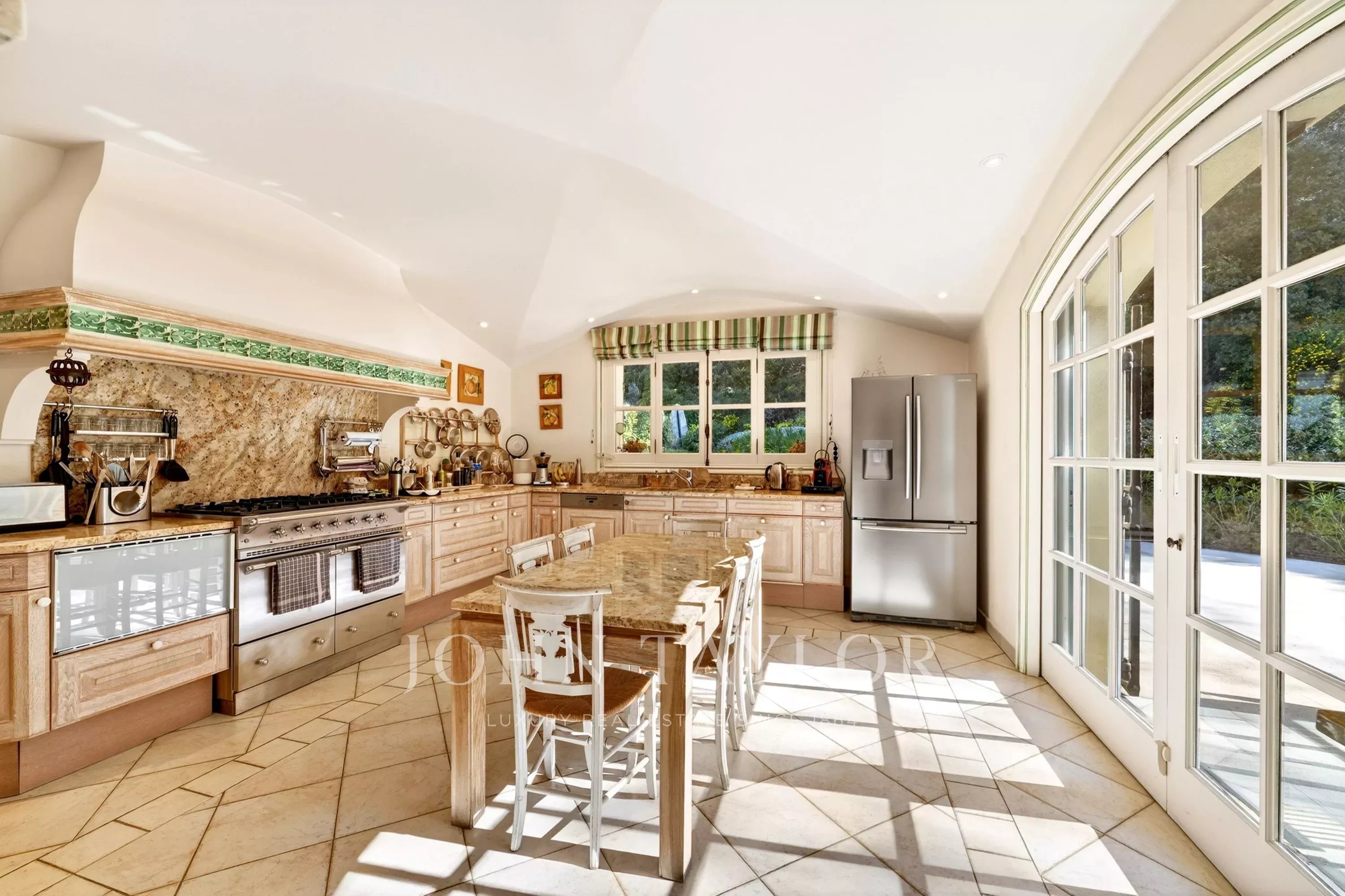 Les espaces de réception, raffinés et généreux, s’articulent autour d’une cuisine conviviale et de six chambres, dont une suite parentale d’exception à l’étage, pensée comme un véritable appartement privé.
