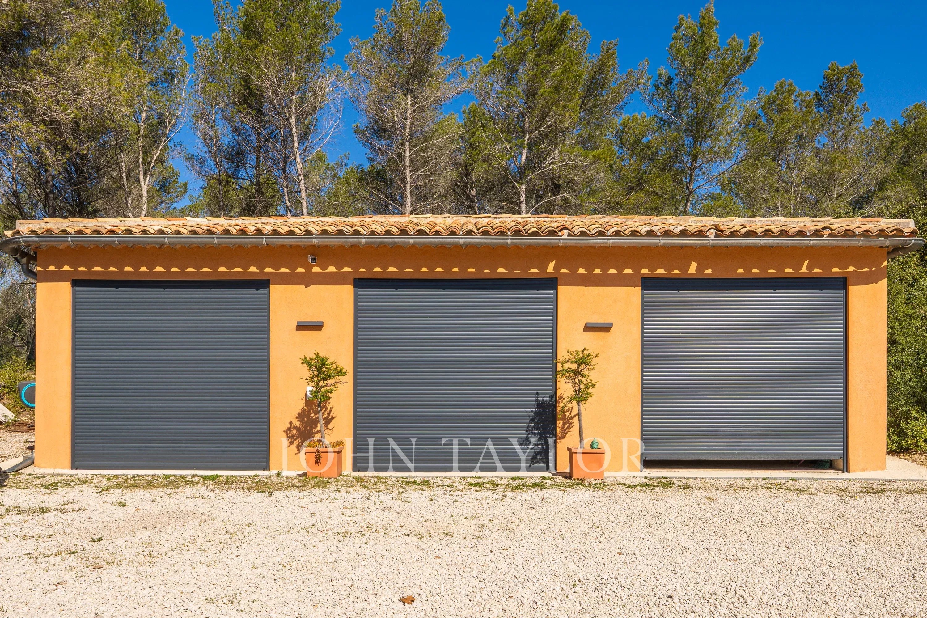 Un garage indépendant aménageable en salle de réception et un grand parking d'invités.