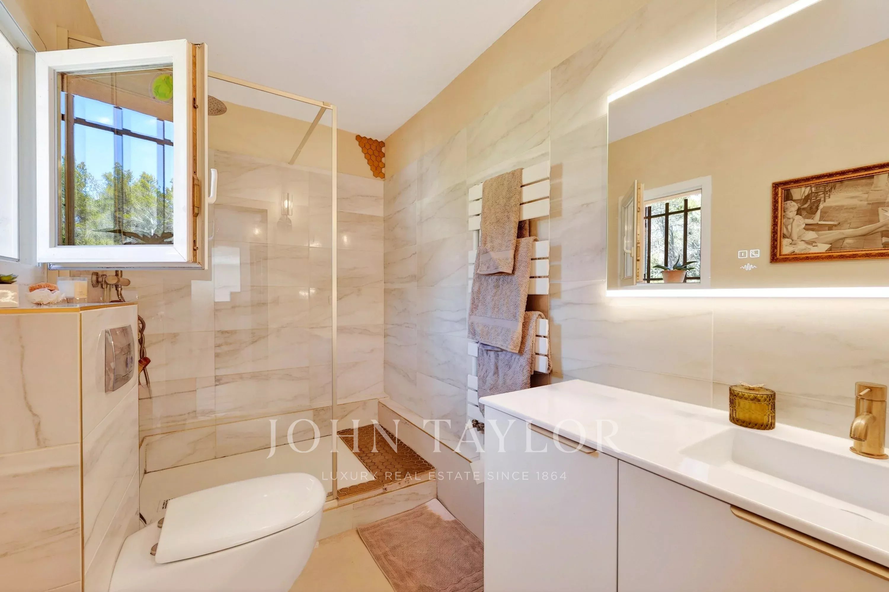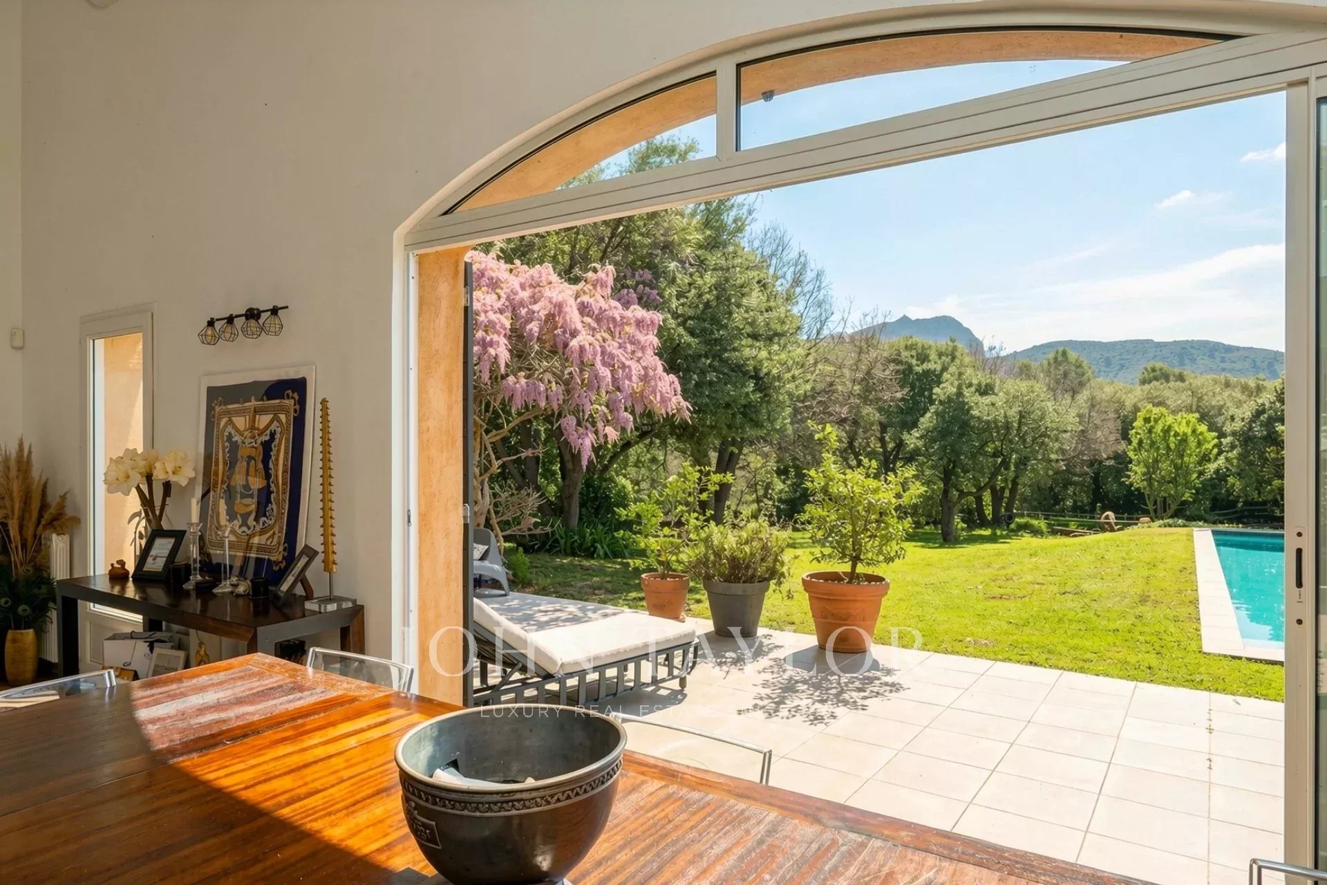 À quelques minutes du centre d’Aix-en-Provence, dans un environnement naturel privilégié avec une vue spectaculaire sur la Sainte Victoire, cette propriété de caractère d’environ 210 m² s’inscrit au cœur d’un parc clos de près de 7 500 m².