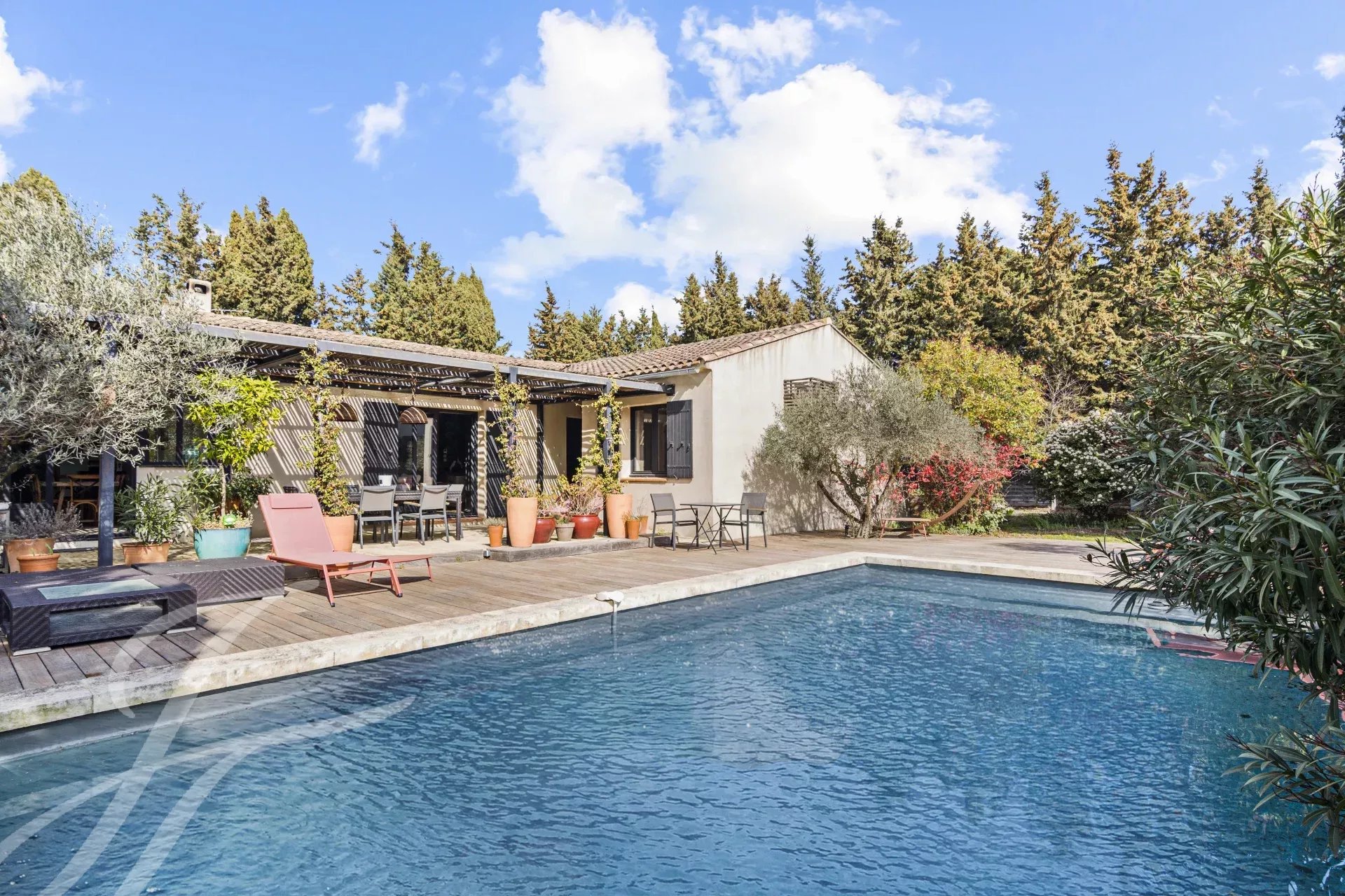 Proche de Saint Rémy de Provence, cette ravissante maison de plain pied de 160m2 habitables propose un bel espace à vivre chaleureux et convivial, cuisine équipée, salon avec cheminée, une chambre principale en suite et quatre chambres avec une salle de bain et une salle d'eau. Implantée sur un terrain arboré de 1900 m2, une jolie piscine et un jardin planté et fleuri créent une alchimie particulière autour de cette maison. Facile d'entretien et chaleureuse cette jolie maison peut convenir en résidence principale aussi bien qu'en maison secondaire. Garage et places de parking.