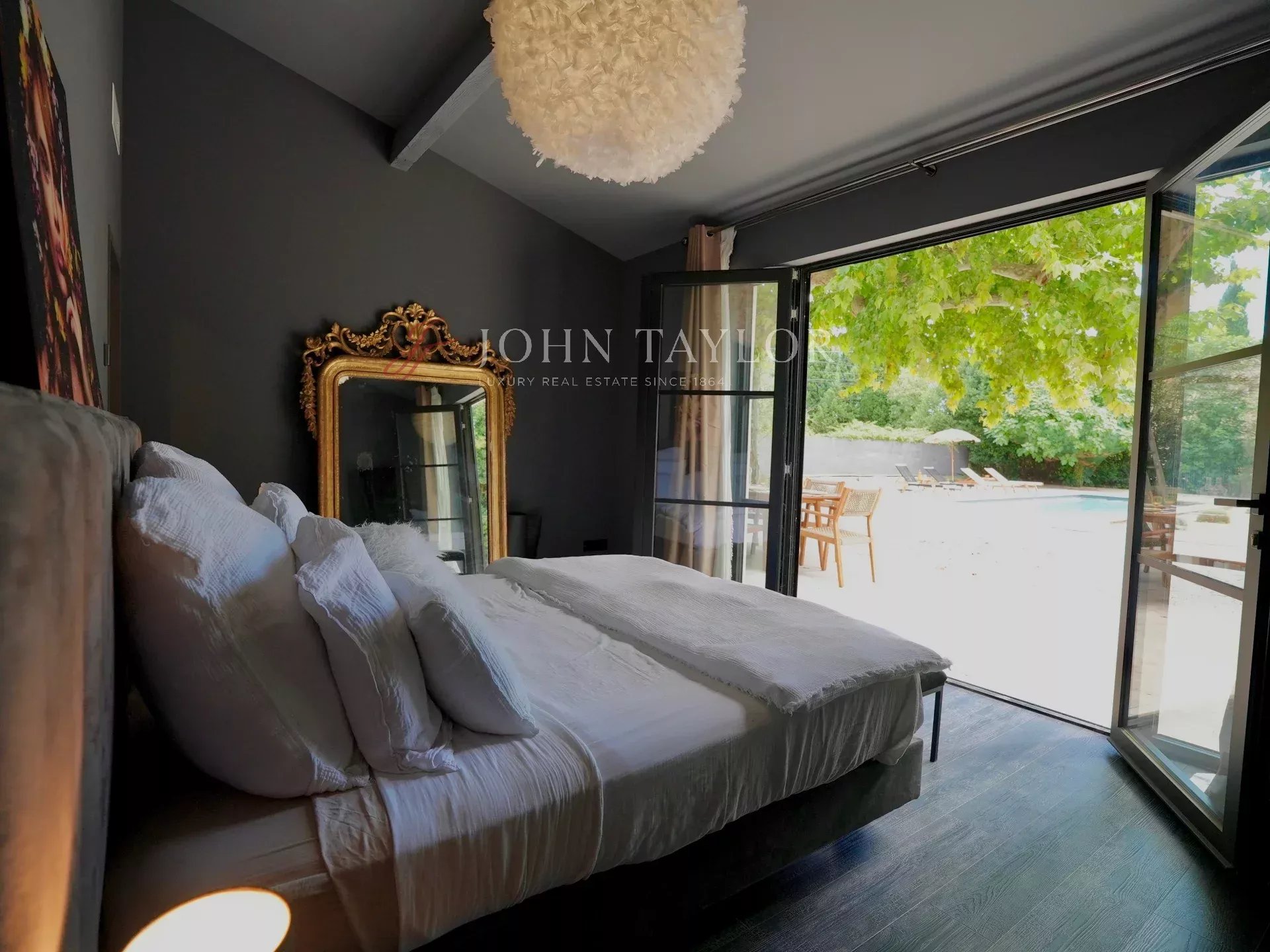 À l’extérieur, un jardin arboré et paysagé invite à la détente : installez-vous à l’ombre d’un grand platane majestueux, ou profitez du soleil au bord de la piscine (10x5) pour vos moments de farniente en Provence.